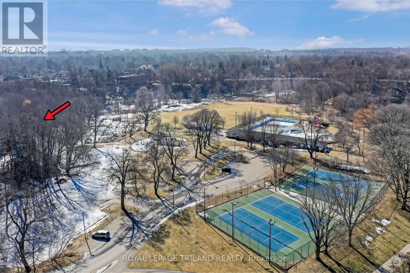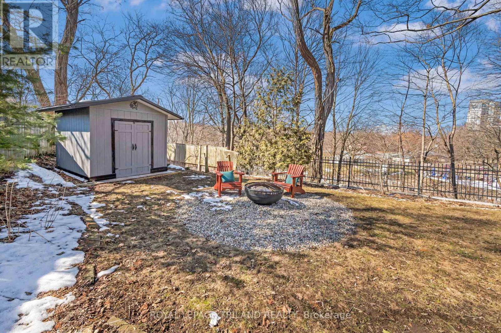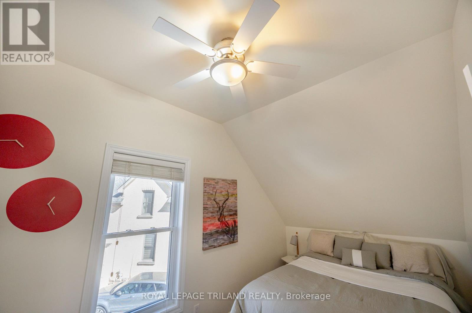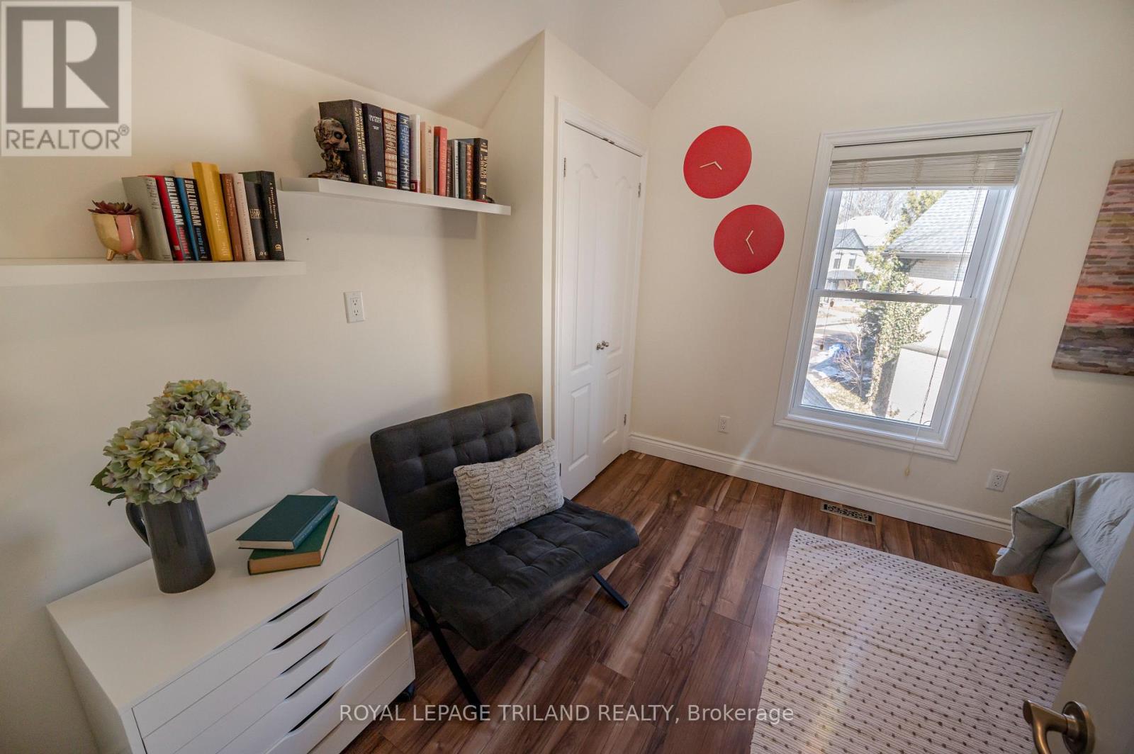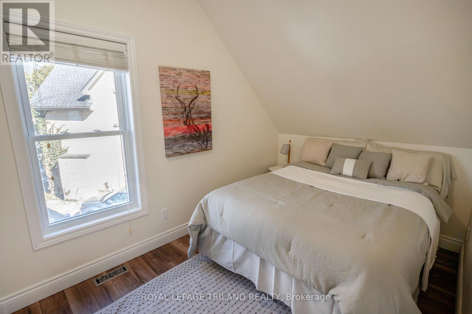A truly one-of-a-kind Wortley Village home on a large wooded lot that feels like you're in the country, but at the end of a dead end street right next to Thames Park, just a few blocks from the Wortley business district, all of the amenities of Downtown London and with a 1.5 car garage! When you step into this meticulously loved and move-in-ready house, you're welcomed with a bright, open-concept layout with a chef's kitchen, featuring sprawling granite countertops with breakfast bar seating, plenty of cabinets, and It's flooded with natural light by day and a ceiling full of pot lighting by night. Perfect for entertaining, the kitchen overlooks the front living area, and the flow continues into a stunning rear sunroom with high ceilings, beautiful exposed brick that adds a layer of historic character to the spacious and bright living space that leads to a beautifully updated bathroom. Upstairs, the primary bedroom that fits a king-size bed, has two large windows and a custom closet for two. The upper bathroom is exquisite, perfect for sipping wine in a tub, and the second bedroom is big enough to have a small workspace in it. There is no shortage of storage thanks to a spacious basement and a 1.5 car deep garage. A highlight "wow factor" for sure is the backyard that is thick with mature trees and perennial gardens that you'll feel like you're camping in a forest, despite being just minutes from the action. Whether you're hosting friends around the fire pit on a starry night, unwinding in the hot tub, or enjoying a morning coffee in the super-cute gazebo, this zen oasis provides unparalleled privacy. A very short walk to the Wortley business district, Canada Life Place, downtown festivals and Thames Park right next door with three lit tennis courts, a community garden, large playground, and soon to come pickleball courts, the lifestyle here is unmatched. This is a very rare opportunity to own a piece of the city that feels worlds away. (id:64974)