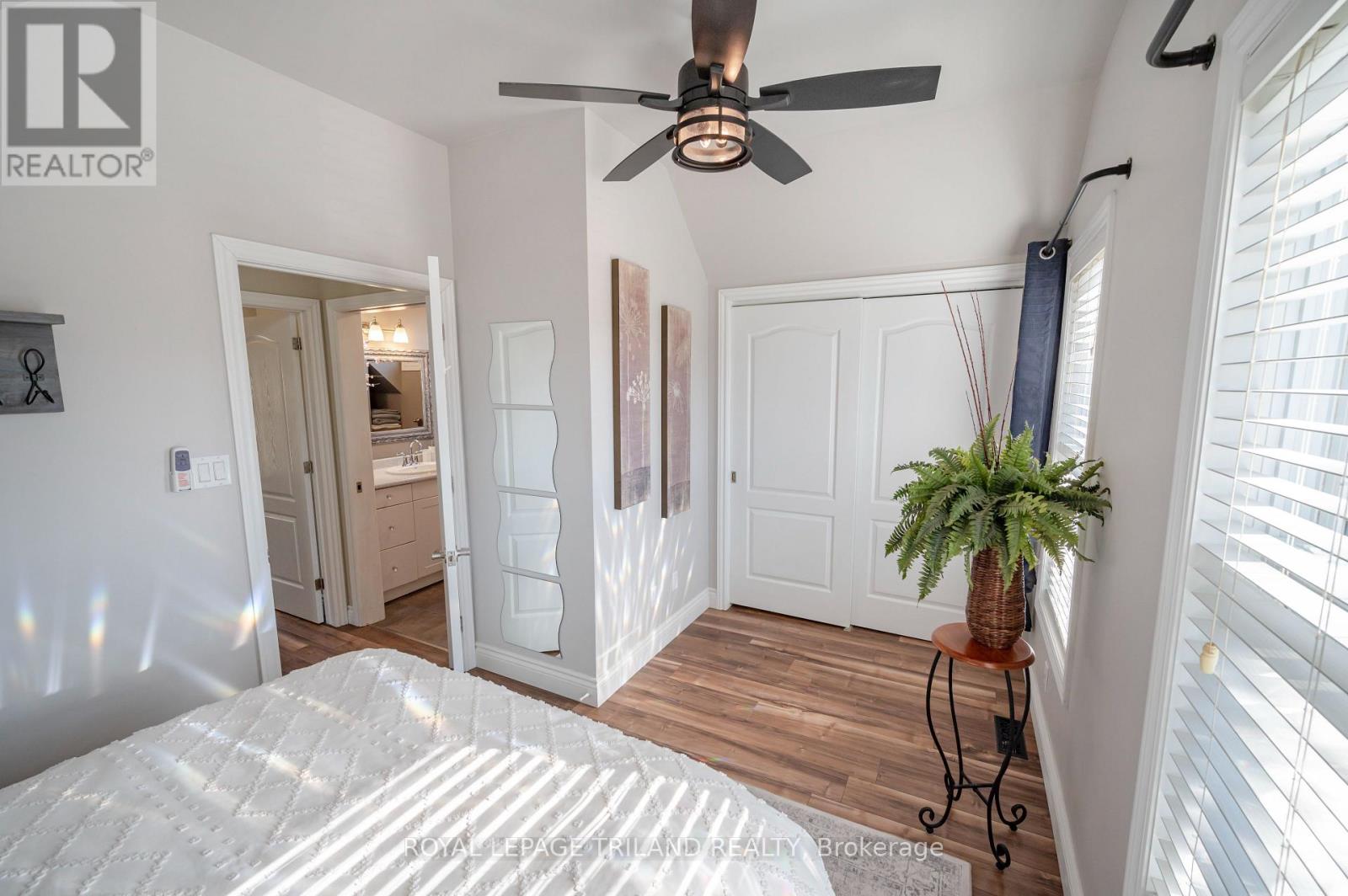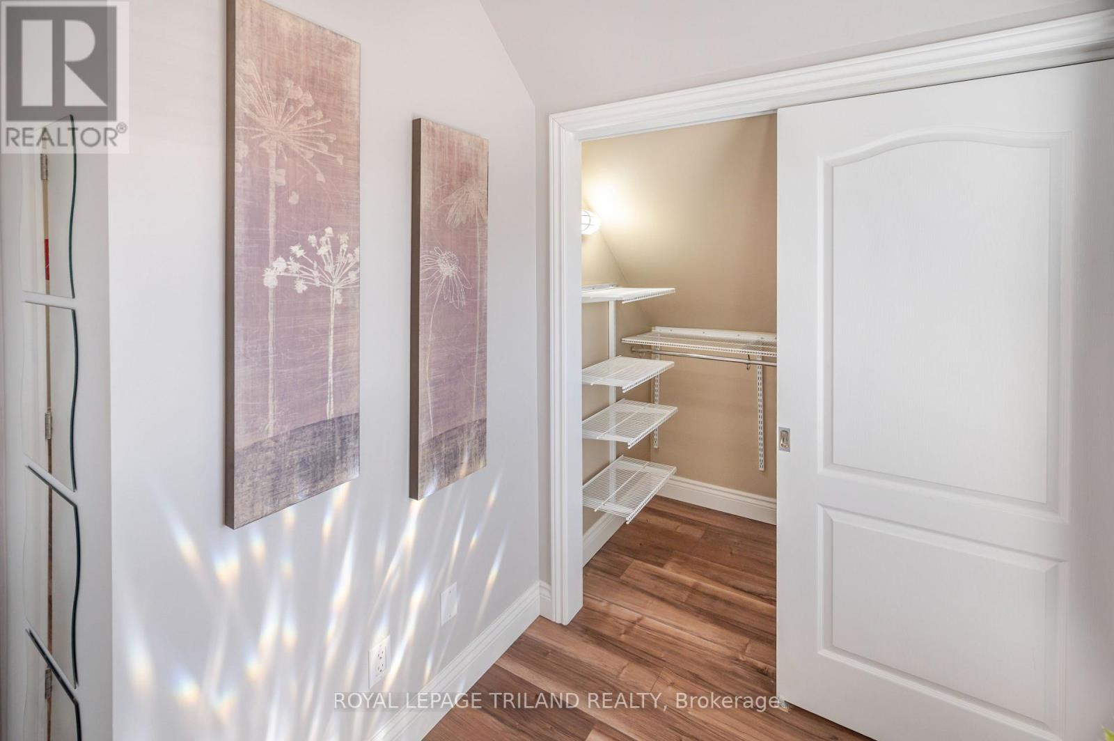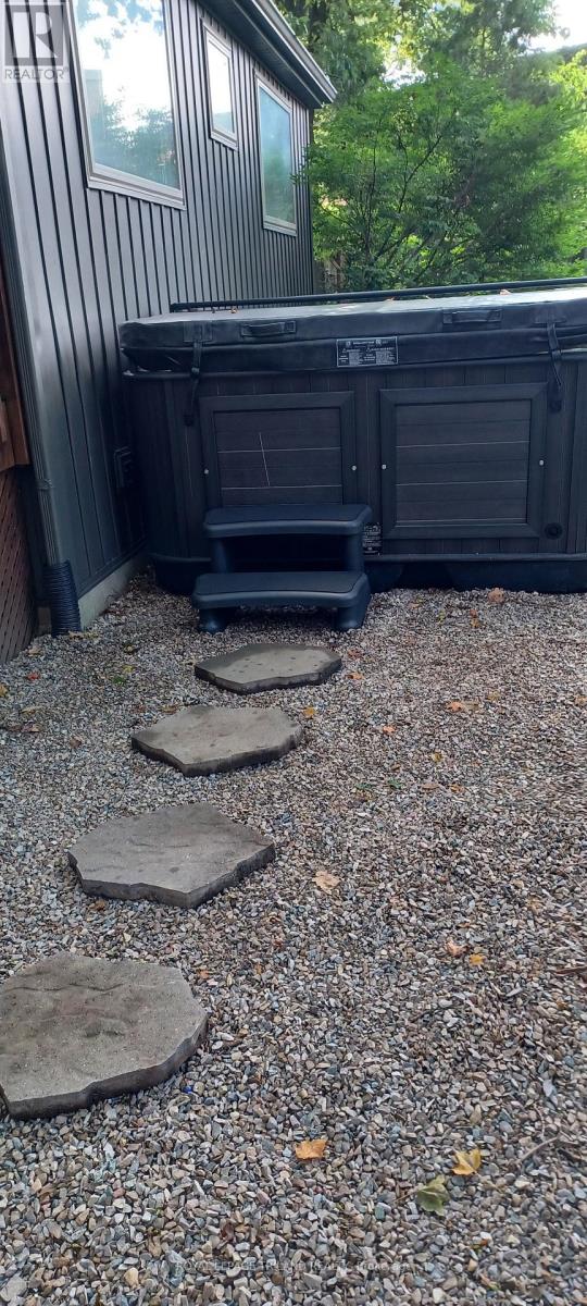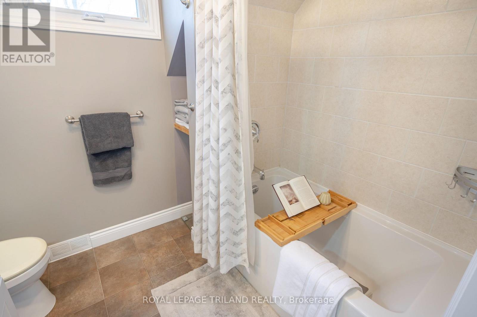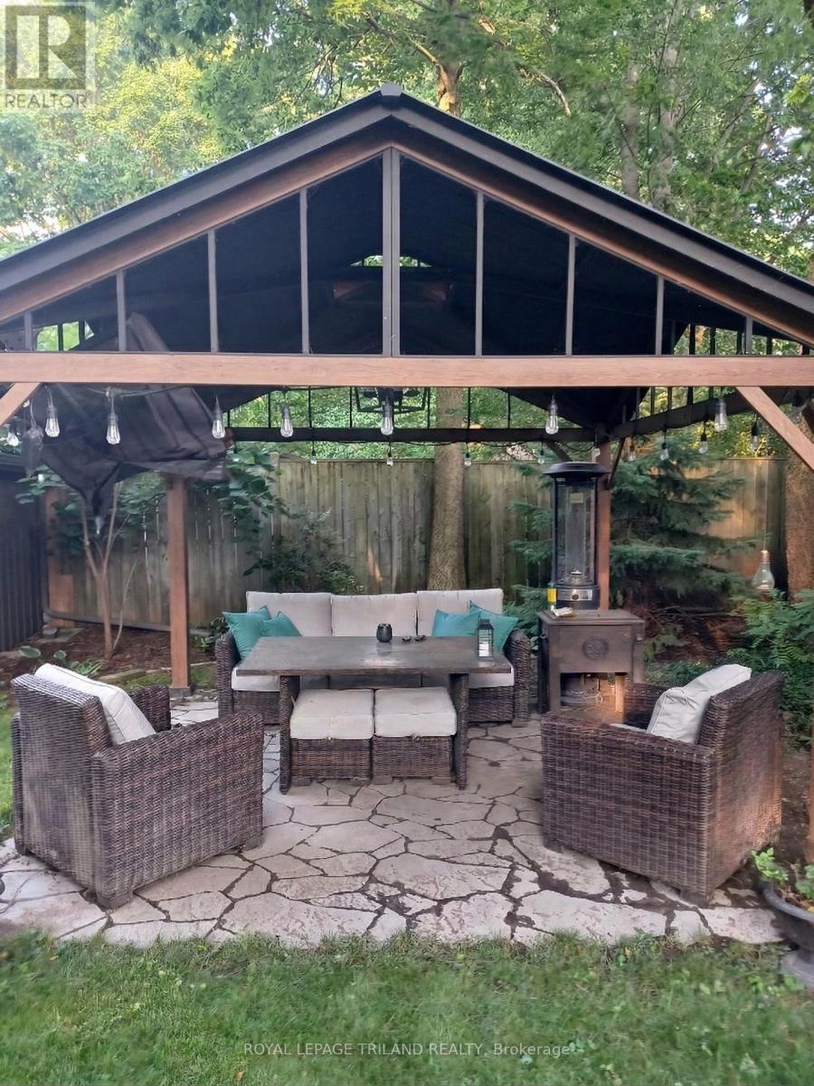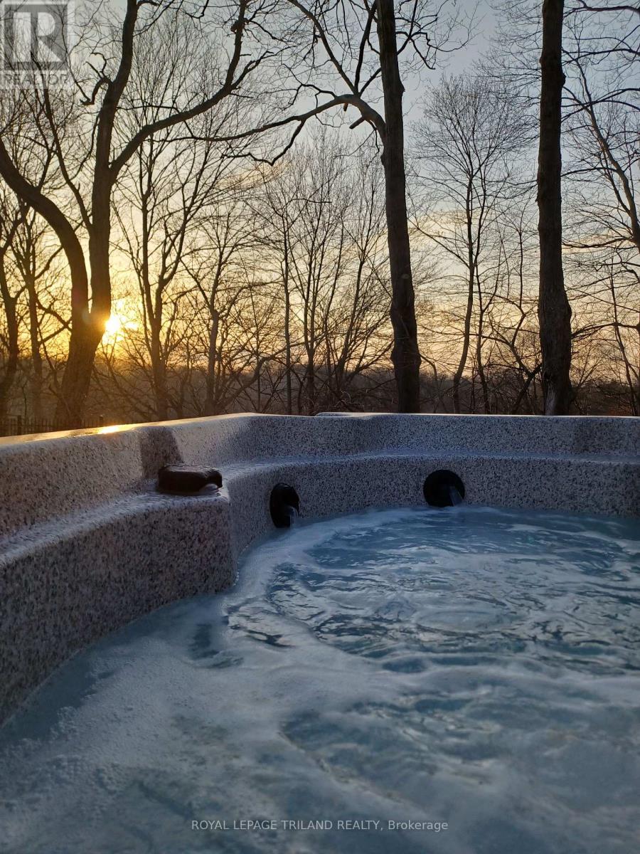 A truly one-of-a-kind Wortley Village home on a large wooded lot that feels like you're in the country, but at the end of a dead end street right next to Thames Park, just a few blocks from the Wortley business district, all of the amenities of Downtown London and with a 1.5 car garage! When you step into this meticulously loved and move-in-ready house, you're welcomed with a bright, open-concept layout with a chef's kitchen, featuring sprawling granite countertops with breakfast bar seating, plenty of cabinets, and It's flooded with natural light by day and a ceiling full of pot lighting by night. Perfect for entertaining, the kitchen overlooks the front living area, and the flow continues into a stunning rear sunroom with high ceilings, beautiful exposed brick that adds a layer of historic character to the spacious and bright living space that leads to a beautifully updated bathroom. Upstairs, the primary bedroom that fits a king-size bed, has two large windows and a custom closet for two. The upper bathroom is exquisite, perfect for sipping wine in a tub, and the second bedroom is big enough to have a small workspace in it. There is no shortage of storage thanks to a spacious basement and a 1.5 car deep garage. A highlight "wow factor" for sure is the backyard that is thick with mature trees and perennial gardens that you'll feel like you're camping in a forest, despite being just minutes from the action. Whether you're hosting friends around the fire pit on a starry night, unwinding in the hot tub, or enjoying a morning coffee in the super-cute gazebo, this zen oasis provides unparalleled privacy. A very short walk to the Wortley business district, Canada Life Place, downtown festivals and Thames Park right next door with three lit tennis courts, a community garden, large playground, and soon to come pickleball courts, the lifestyle here is unmatched. This is a very rare opportunity to own a piece of the city that feels worlds away. (id:64974)