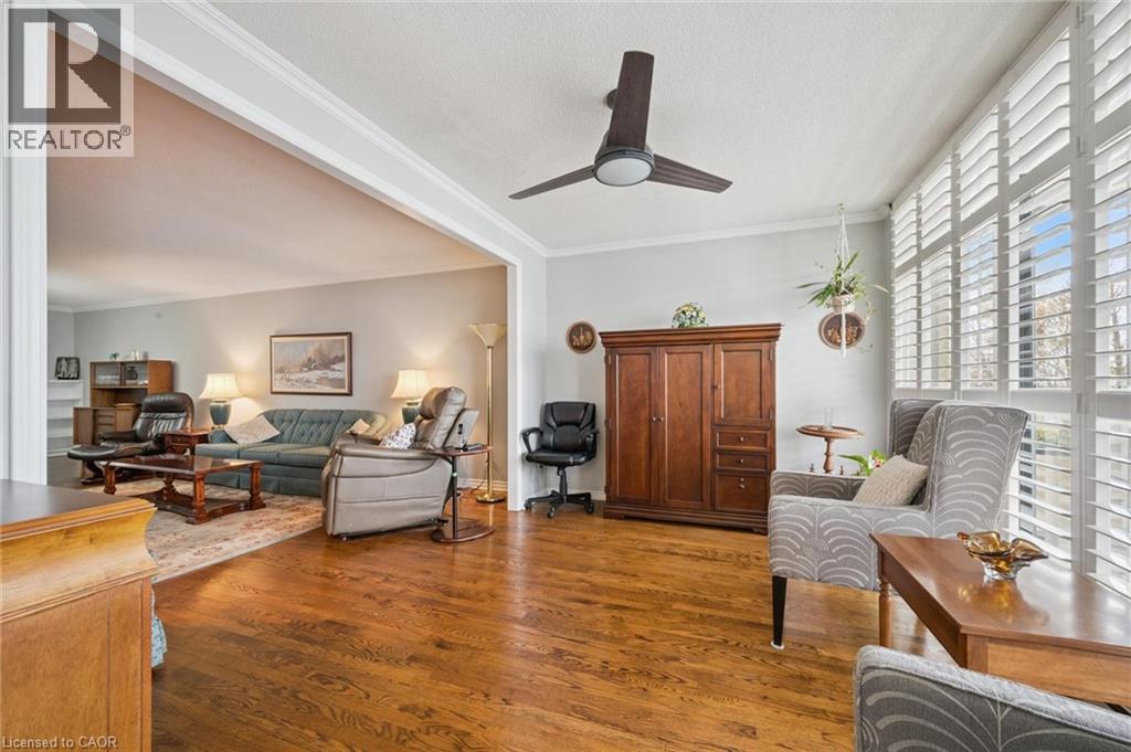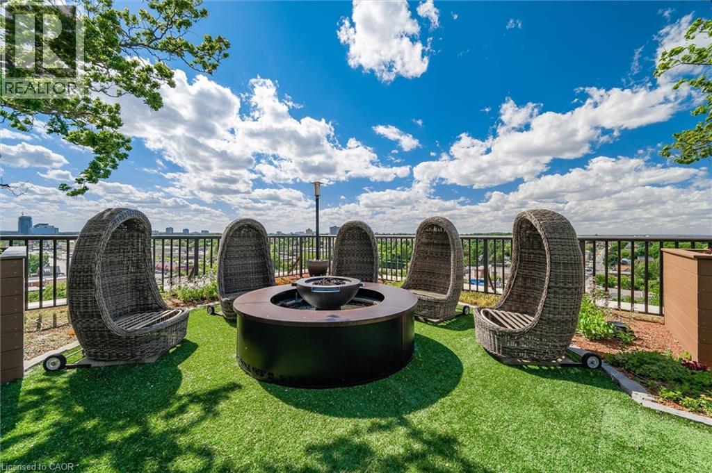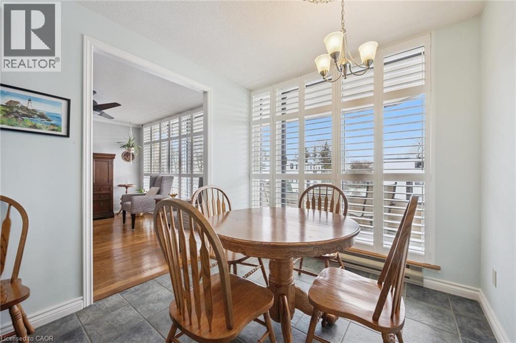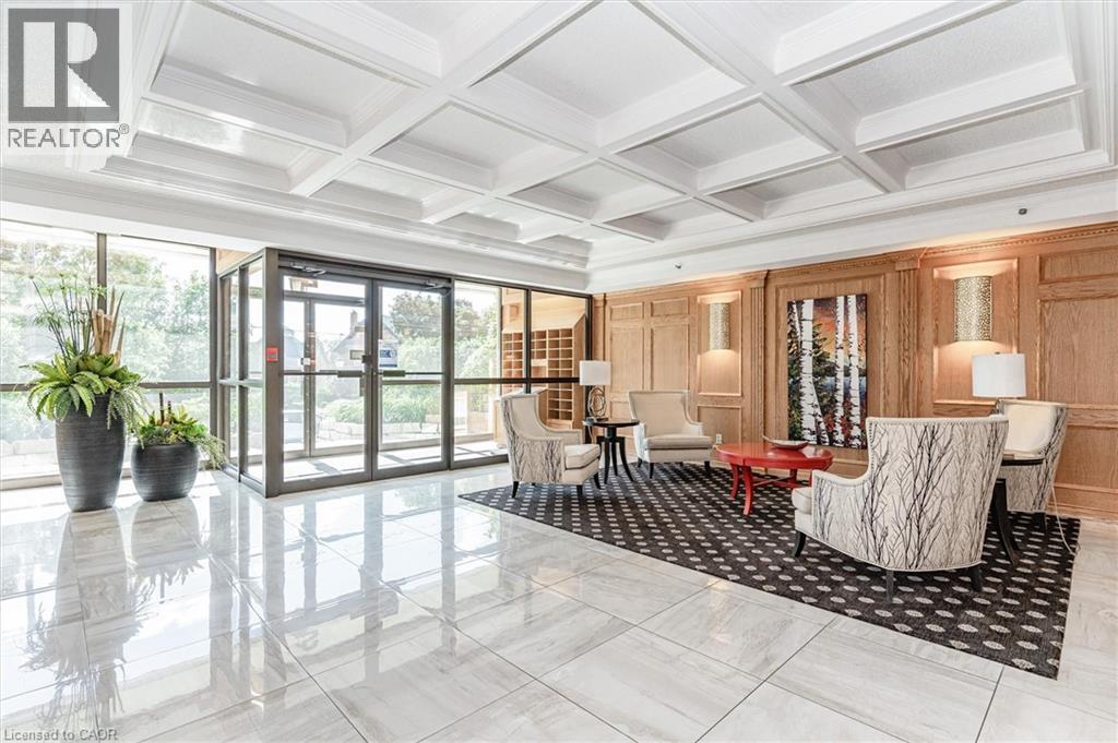 Welcome to Queens Heights one of the areas most desirable bespoke buildings. Carefree condo living at its finest. Large 1722 square ft 2 bedroom, 2 bathroom unit plus a den. A spacious entry foyer with plenty of closet space. Double French doors lead to the formal dining room, oak flooring, plenty of space for your table and hutch plus a wall to wall custom built-in. 0versized living room, good sized kitchen, handsome dark cabinetry, loads of counter and cupboard space, 2 pantries, storage galore. Bright breakfast room, great spot for your morning coffee, next to the main level den, sliding glass doors with California shutters lead to the balcony area. Two bedroom including a luxury sized primary , can easily accommodate a king sized bed, 4 piece ensuite. Second large bedroom, walk in closet, and an additional updated main level bath with walk in shower. In suite laundry room with additional storage space. Appliances included. Fantastic amenities, controlled entry, large lobby, guest suites, party room, billiards, library. fitness area, Fantastic rooftop terrace, BBQ area, underground parking with its very own carwash, Designated parking spot. Exceptionally maintained building, oak paneled hallways, immaculate, award winning summer gardens. Walk to shopping ,dining, Centre in the Square, library, downtown, farmers market, easy highway access. If you are looking for the ease of condo living in a friendly environment without sacrificing the space of a home then this meets all of the requirements. Begin your next chapter here. (id:64974)