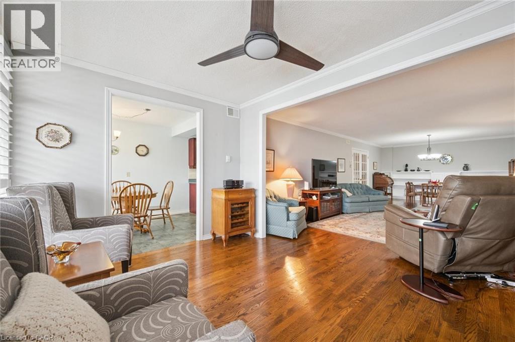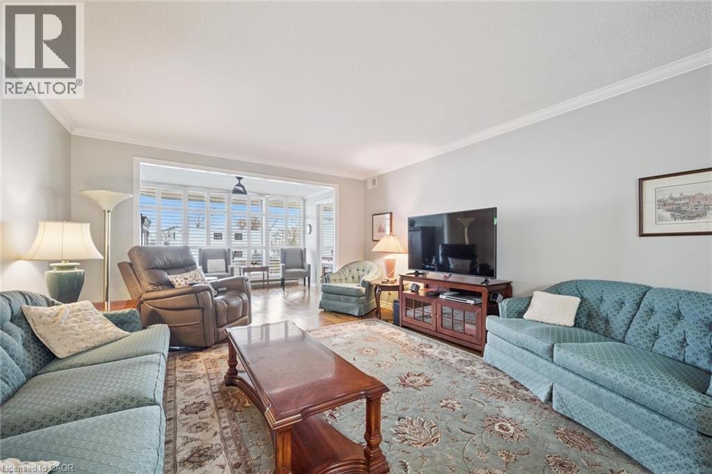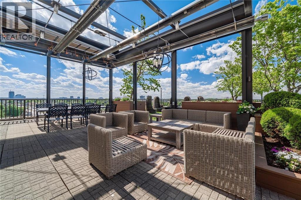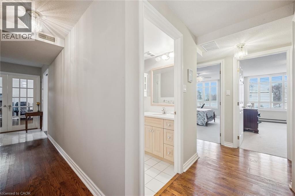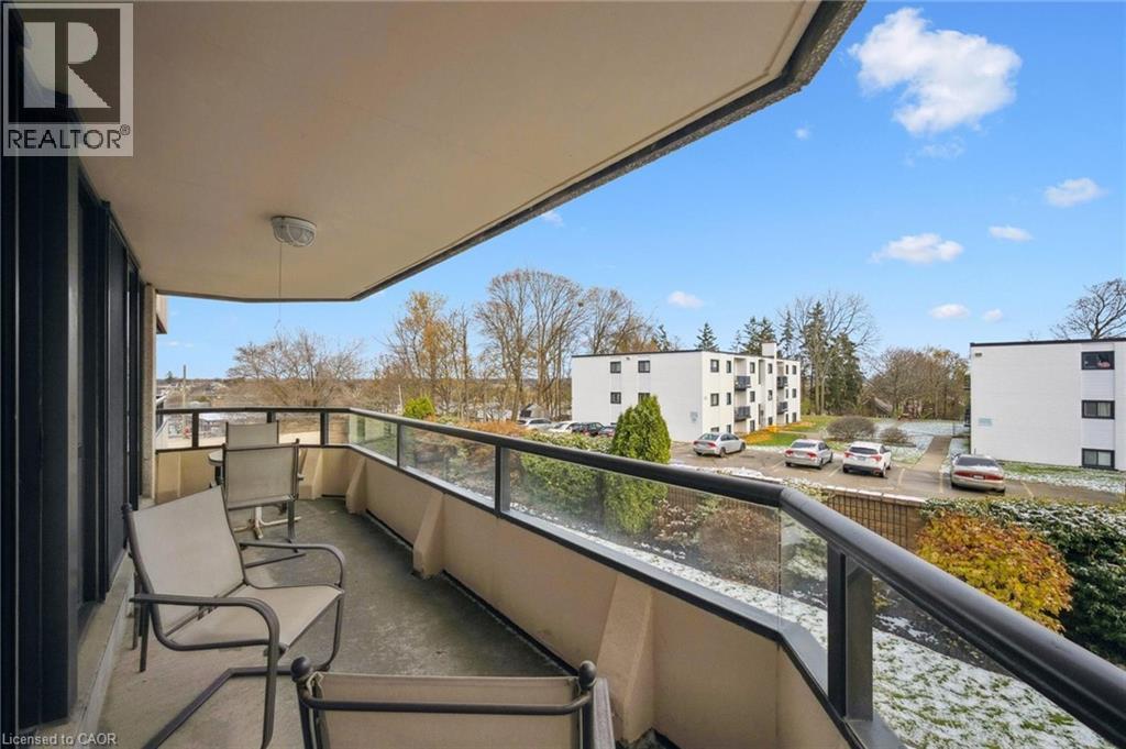 Welcome to Queens Heights one of the areas most desirable bespoke buildings. Carefree condo living at its finest. Large 1722 square ft 2 bedroom, 2 bathroom unit plus a den. A spacious entry foyer with plenty of closet space. Double French doors lead to the formal dining room, oak flooring, plenty of space for your table and hutch plus a wall to wall custom built-in. 0versized living room, good sized kitchen, handsome dark cabinetry, loads of counter and cupboard space, 2 pantries, storage galore. Bright breakfast room, great spot for your morning coffee, next to the main level den, sliding glass doors with California shutters lead to the balcony area. Two bedroom including a luxury sized primary , can easily accommodate a king sized bed, 4 piece ensuite. Second large bedroom, walk in closet, and an additional updated main level bath with walk in shower. In suite laundry room with additional storage space. Appliances included. Fantastic amenities, controlled entry, large lobby, guest suites, party room, billiards, library. fitness area, Fantastic rooftop terrace, BBQ area, underground parking with its very own carwash, Designated parking spot. Exceptionally maintained building, oak paneled hallways, immaculate, award winning summer gardens. Walk to shopping ,dining, Centre in the Square, library, downtown, farmers market, easy highway access. If you are looking for the ease of condo living in a friendly environment without sacrificing the space of a home then this meets all of the requirements. Begin your next chapter here. (id:64974)