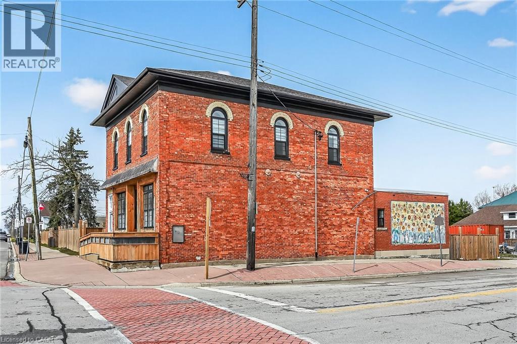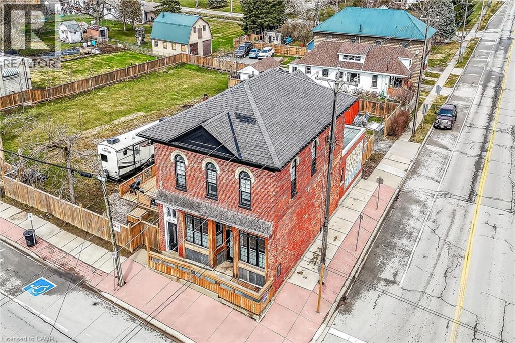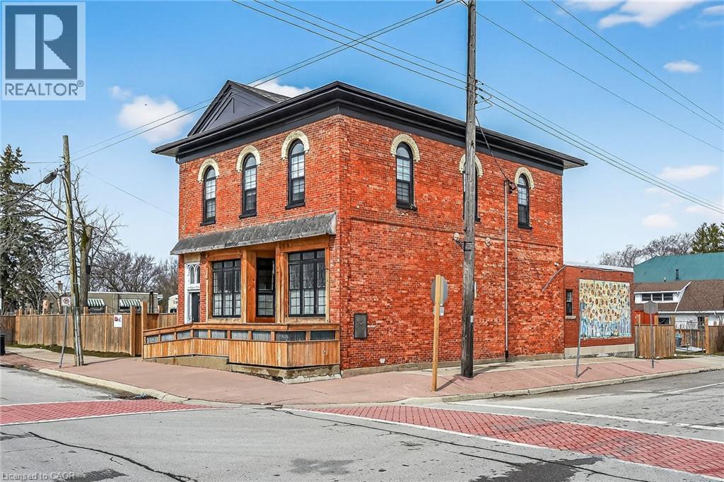Exceptional & Turnkey Commercial / Residential Selkirk Opportunity! Ideally located in cottage country south in the picturesque Lakeside town of Selkirk. This exquisitely updated property features an oversized corner lot with stately curb appeal with brick exterior & fenced yard in a high visibility location offering commercial use main floor & upper level 2 bedroom residential apartment. The perfect set up for work & live in building or Ideal investment opportunity for solid cash flow with ample parking & huge upside. This extensively updated 1870 built building (no heritage restrictions) features a main floor currently set for restaurant, café, brewery, or business with original character from the former “Bank of Hamilton” use including your own personal walk in vault. The upper level is highlighted by a stunning 2 bedroom apartment with custom kitchen cabinetry, granite countertops, & S/S appliances, dining area, large living room, primary bedroom with ensuite privilege access to spa like bathroom, additional bedroom, laundry, separate entrance, & sunroom. Updates include roof, septic system, exterior, flooring, mechanicals, & more! Conveniently located 40 mins south of Hamilton, minutes to Port Dover, & along multiple bike routes. Ideal for the entrepreneur, investor, restaurant, or business owner. An incredible deal for you to position yourself in a loyal, growing, & vibrant community! Take a chance on you and Invest in yourself – you won’t be disappointed! (id:64974)