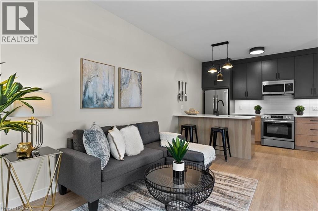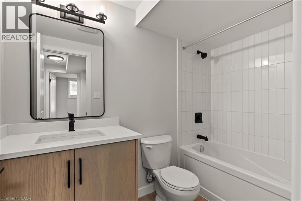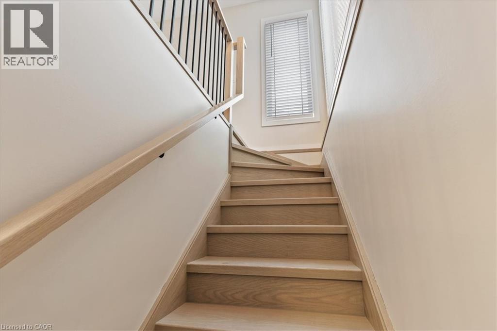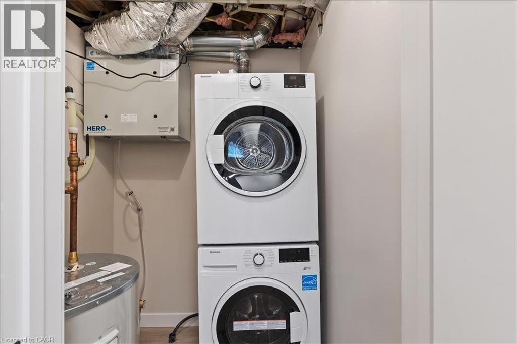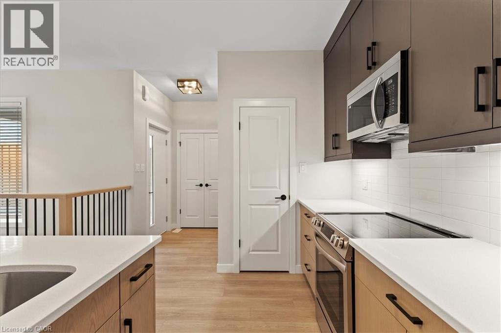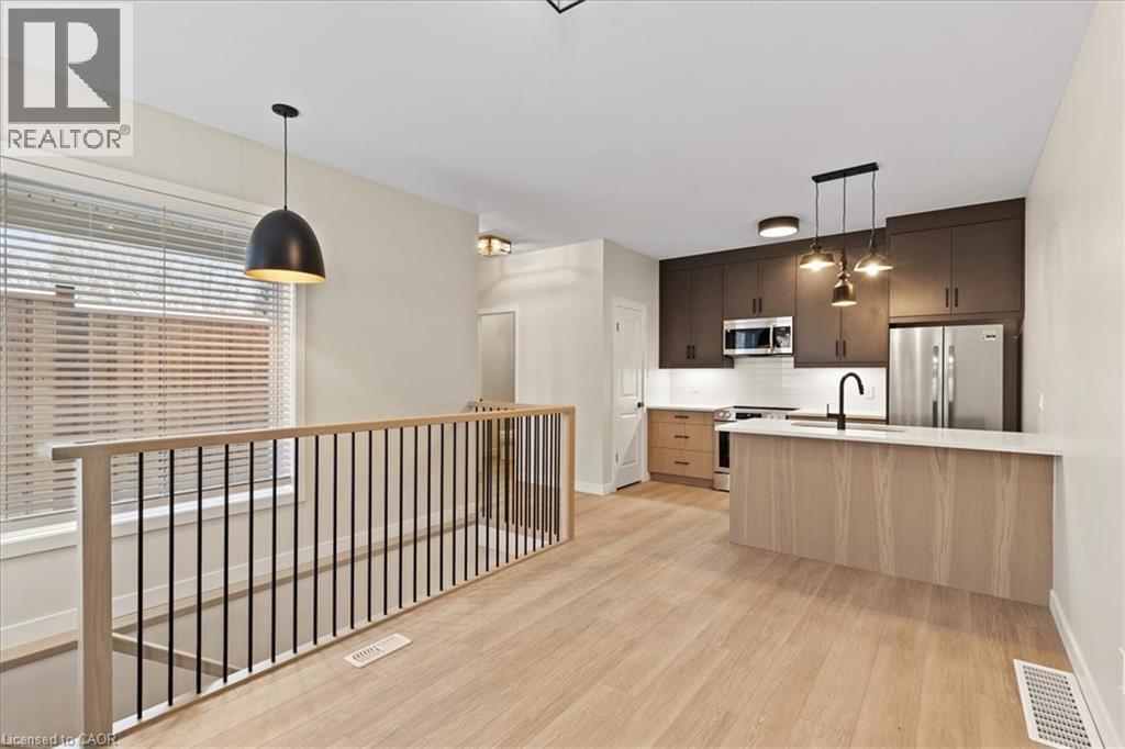 FIRST MONTH FREE RENT INCENTIVE! Beautiful rental! This energy efficient and modern compact unit offers luxury finishes comparable to a custom home. At 860 square feet and offering 2 bedrooms, 1.5 bathrooms, this unit comes with large main floor windows, 9' ceilings and a wide open layout making for a bright space. The living room, kitchen, and powder room all occupy the main floor. The two-tone kitchen is a combination of a white oak finish with satin grey floor to ceiling cabinets and soft close mechanisms along with quartz countertops throughout the kitchen and bathrooms. Brand new stainless steel kitchen appliances and stackable laundry washer and dryer. The black hardware contrasts the white trim and matches the black plumbing fixtures throughout. LVP flooring in the entire unit matches the oak staircase and iron spindles leading to the basement. Two bedrooms; one with built in drawers, a laundry, and a four-piece bathroom make up the lower level. Conveniently Country Hill location! Short-term rental and fully furnished options available contact list agent for more details. (id:64974)