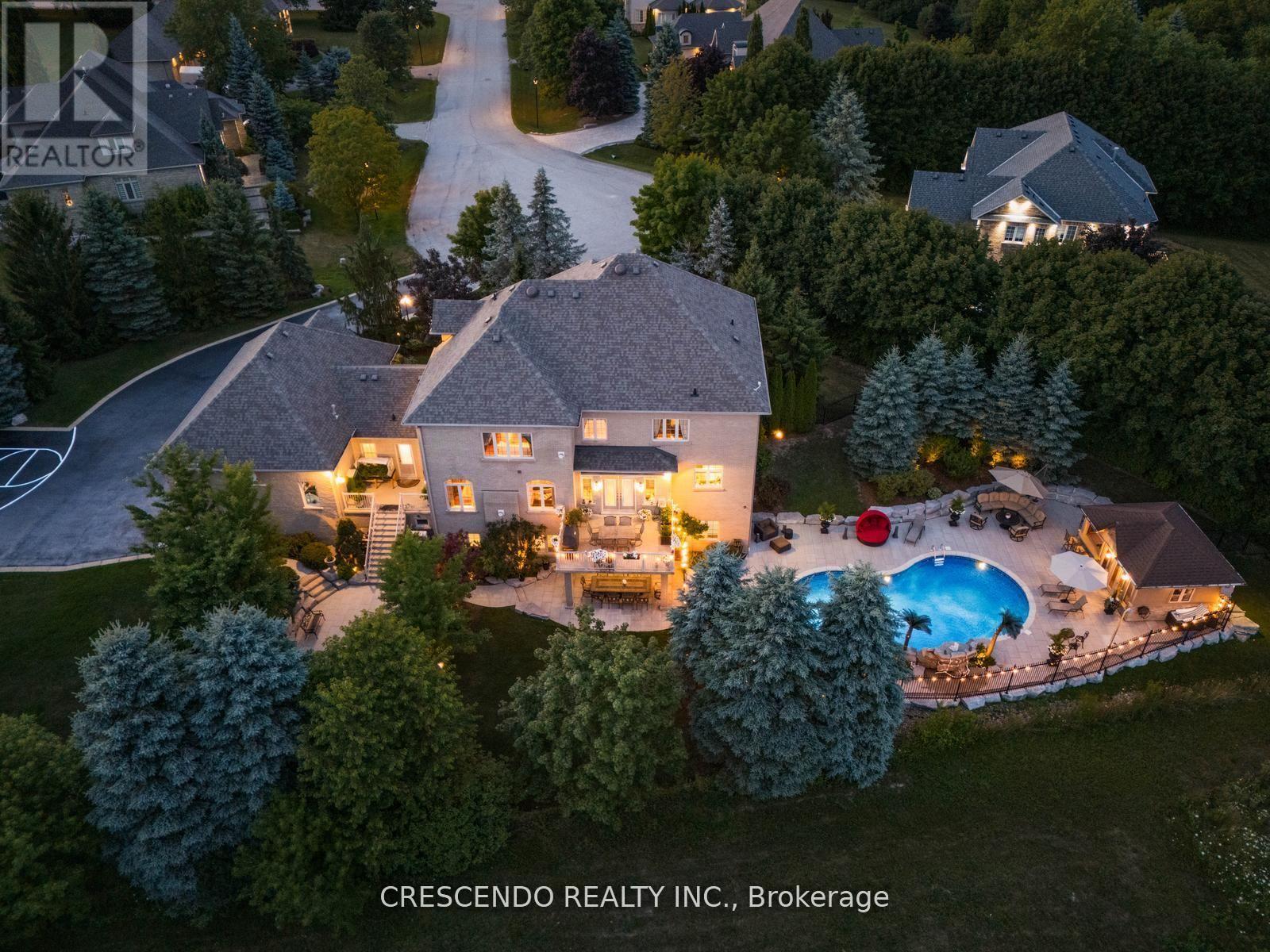 Welcome To This Exquisite Estate In The Prestigious Laskay Community Of King City, Situated On A Stunning One-Acre Premium Lot End Of A Private Cul-De-Sac. This Custom-Built Home Offers 4 Bedrooms, 5 Bathrooms, Over 7,000 Sq. Ft. Of Beautifully Finished Living Space Across Main And Lower Levels. Designed For Elegance, Comfort, And Privacy, Featuring A Resort-Style Backyard Surrounded By Mature Trees And Lush Landscaping, Creating A Tranquil Retreat Perfect For Relaxing Or Entertaining Under The Stars. A Grand Entrance Welcomes You With A Prominent Water Fountain & 100+ Ft Driveway. Customizable Gemstone Lighting Enhances The Exterior After Dusk. Inside, A Soaring 24-Ft Foyer And Modern Circular Staircase Impress. The Main Level Showcases A Spacious Layout W/ Stone & Hardwood Floors, Large Windows For Natural Light. The Chefs Kitchen Includes Granite Counters, Custom Cabinetry, And Premium Appliances Combined With A Walkout Balcony With Gas BBQ Overlooking The Private Backyard. Open To Kitchen Is A Cozy Family Room With Gas Fireplace. The Hall Connects A Large Laundry Room And A 3-Car Garage With 12-Ft Ceilings Including Car Lift. The Lower Level Is An Entertainers Dream With An Open Layout, Full Kitchen W/ Island, Spacious Living Area, Private Salon, And Home Theatre Featuring 12 Recliners And 7-Speaker Surround Sound. Walkout Access Leads To The Backyard Retreat With Multiple Seating Areas, A 20 X 40 Saltwater Pool, Remote-Controlled Waterfall & Lighting, Pool Cabana With Bar, Shutters, & Outdoor Shower. Upstairs, The Grand Landing Opens To A Luxurious Primary Suite With Fireplace, Dual Walk-In Closets W/ Custom Built-Ins, Spa-Inspired Ensuite With Jacuzzi, Oversized Shower, And Vaulted Ceiling. Prime Location Minutes From Highway 400, Plenty Of Space On Property To Add More Garages Or Increase Home's Square Footage If Desired. (id:64974)