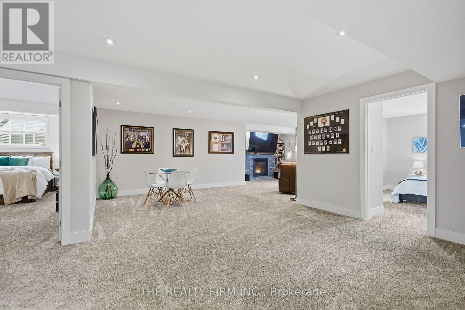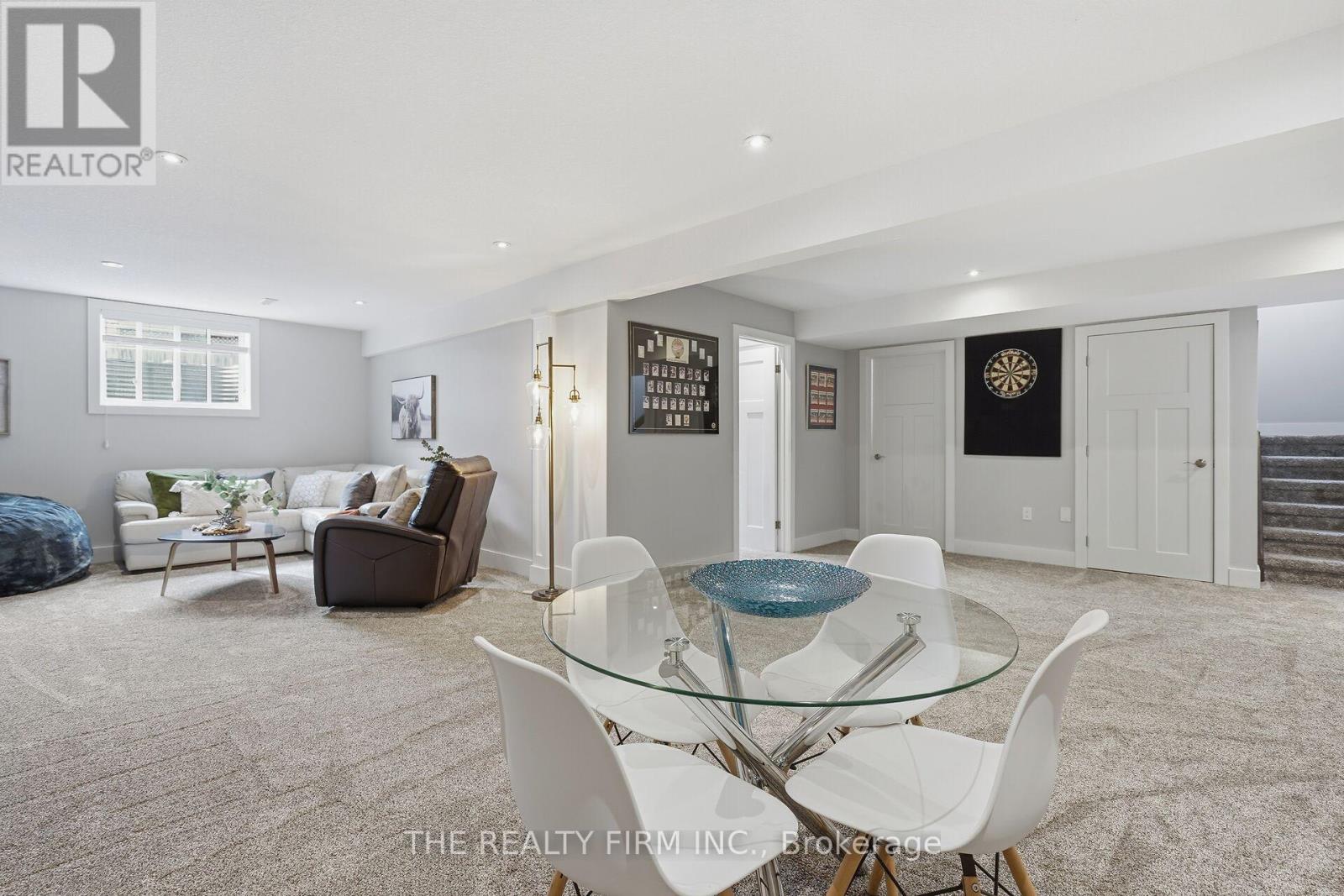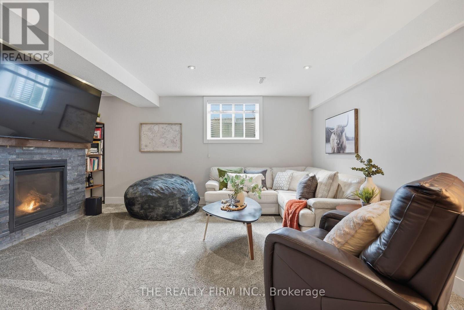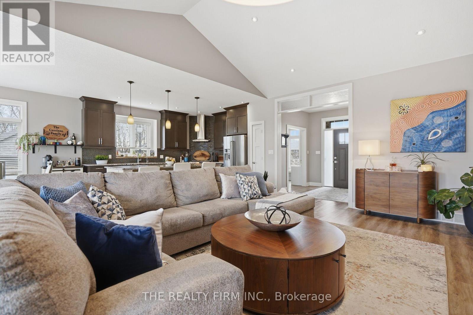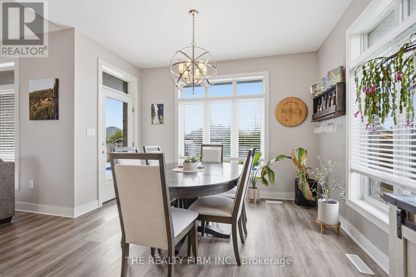 Welcome to this beautifully maintained ranch-style home offering the perfect balance of comfort, space and functionality. This home features a double car garage, impressive curb appeal with striking stone masonry, and a layout that flows effortlessly. Large windows and lower level egress windows, allow for natural light on every level. Main floor transom windows above interior doorways, enhance brightness while adding architectural character. Just off the entrance is a dedicated main floor office. Layout opens into a spacious great room where the kitchen, dining and living areas flow seamlessly together. The kitchen offers ample workspace and storage while remaining connected to the main living area, 4-piece bathroom and practical mudroom, complete with hookups for main floor laundry. Primary features a walk-in closet, a private 4-piece ensuite, while a second generously sized bedroom completes the main level. Fully finished lower level extends the living space with a cozy family room with fireplace, recreation area, two additional spacious bedrooms. A 3-piece bathroom, laundry room, and ample storage add to the home's functionality. The backyard is a true standout feature, private outdoor retreat designed for relaxation and entertaining. The heated saltwater pool, surrounded by a large concrete patio and a newly built covered seating area for dining and lounging in the shade. Designed for low maintenance, the yard includes stone garden beds and raised vegetable planters, offering beauty and practicality. With ample space to entertain, or simply enjoy quiet evenings at home, this setting delivers the ultimate staycation lifestyle. Situated on a desirable corner lot, the property offers privacy and excellent outdoor space in a sought-after, family-friendly neighbourhood. Walking distance to a local school and just a short drive to London, this home offers an ideal blend of lifestyle, location and quality craftsmanship. (id:64974)