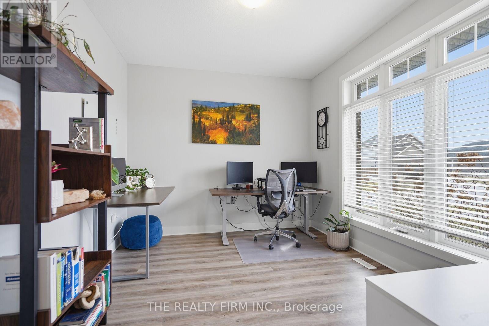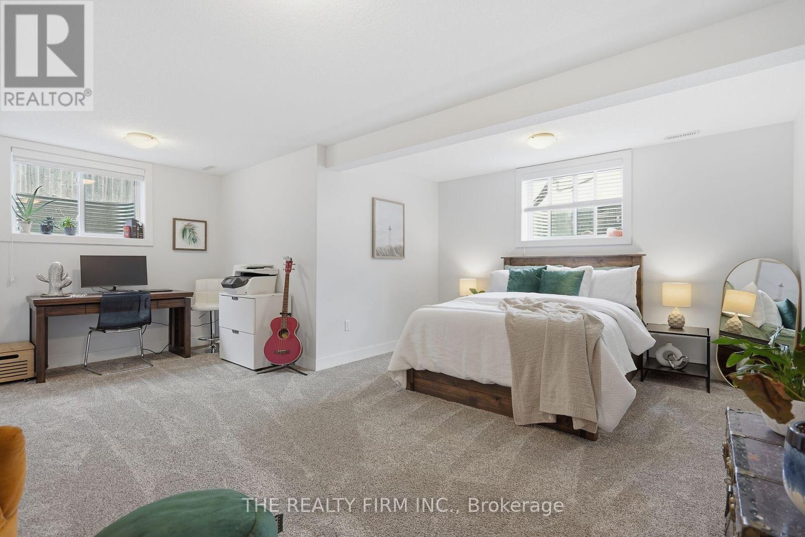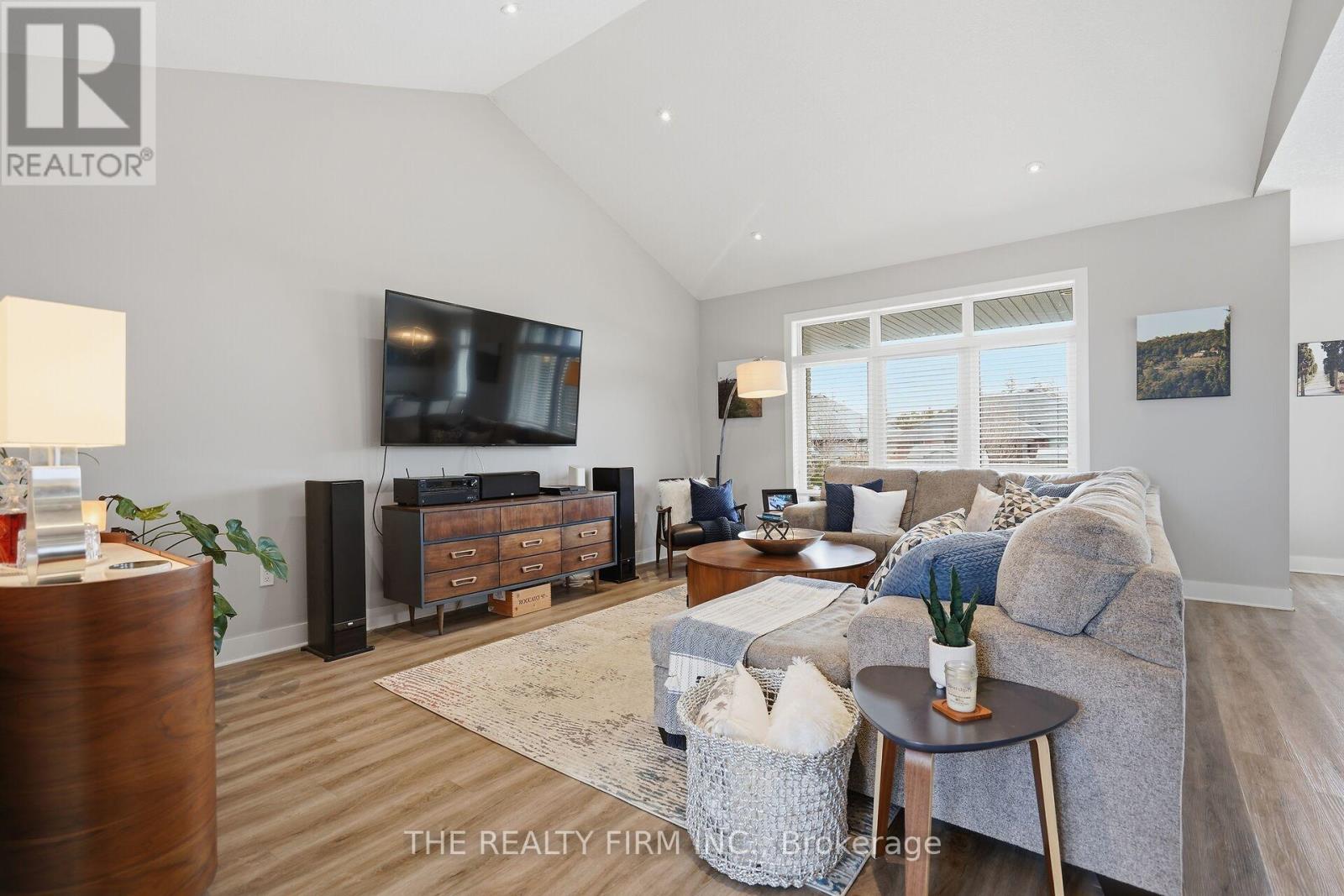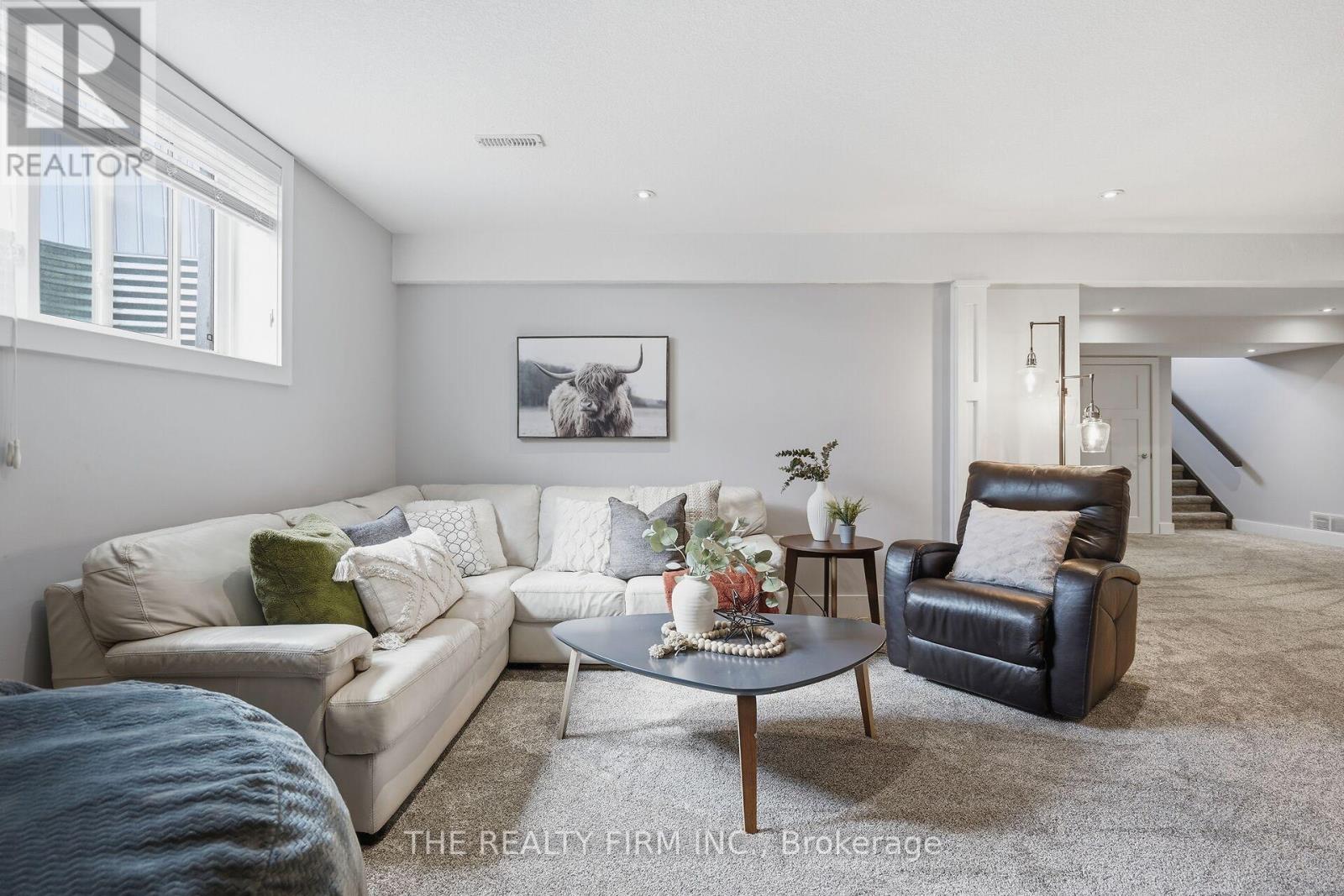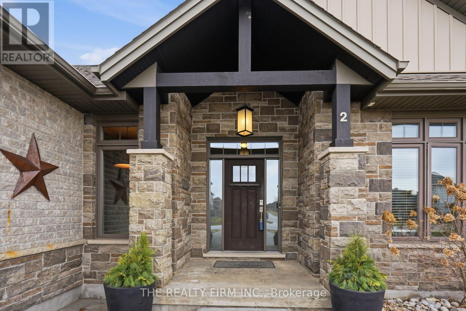 Welcome to this beautifully maintained ranch-style home offering the perfect balance of comfort, space and functionality. This home features a double car garage, impressive curb appeal with striking stone masonry, and a layout that flows effortlessly. Large windows and lower level egress windows, allow for natural light on every level. Main floor transom windows above interior doorways, enhance brightness while adding architectural character. Just off the entrance is a dedicated main floor office. Layout opens into a spacious great room where the kitchen, dining and living areas flow seamlessly together. The kitchen offers ample workspace and storage while remaining connected to the main living area, 4-piece bathroom and practical mudroom, complete with hookups for main floor laundry. Primary features a walk-in closet, a private 4-piece ensuite, while a second generously sized bedroom completes the main level. Fully finished lower level extends the living space with a cozy family room with fireplace, recreation area, two additional spacious bedrooms. A 3-piece bathroom, laundry room, and ample storage add to the home's functionality. The backyard is a true standout feature, private outdoor retreat designed for relaxation and entertaining. The heated saltwater pool, surrounded by a large concrete patio and a newly built covered seating area for dining and lounging in the shade. Designed for low maintenance, the yard includes stone garden beds and raised vegetable planters, offering beauty and practicality. With ample space to entertain, or simply enjoy quiet evenings at home, this setting delivers the ultimate staycation lifestyle. Situated on a desirable corner lot, the property offers privacy and excellent outdoor space in a sought-after, family-friendly neighbourhood. Walking distance to a local school and just a short drive to London, this home offers an ideal blend of lifestyle, location and quality craftsmanship. (id:64974)