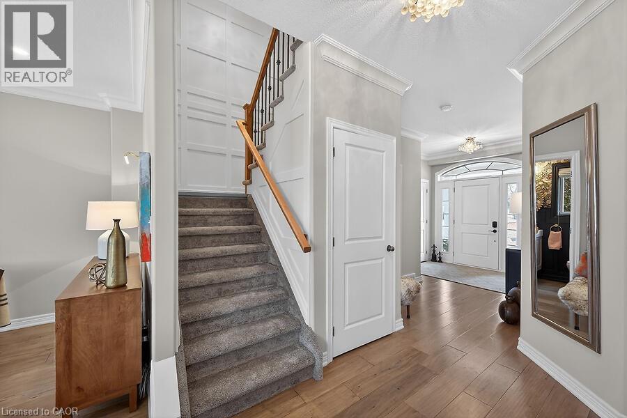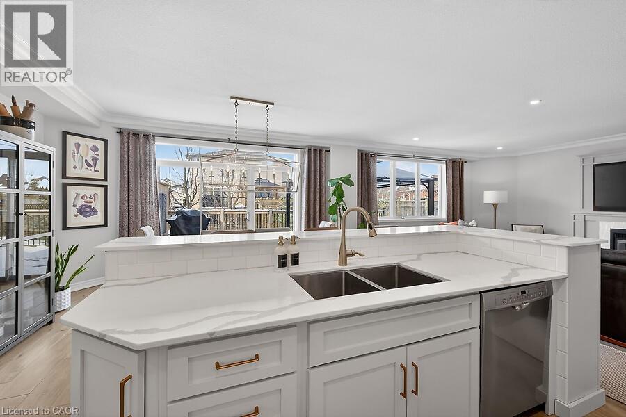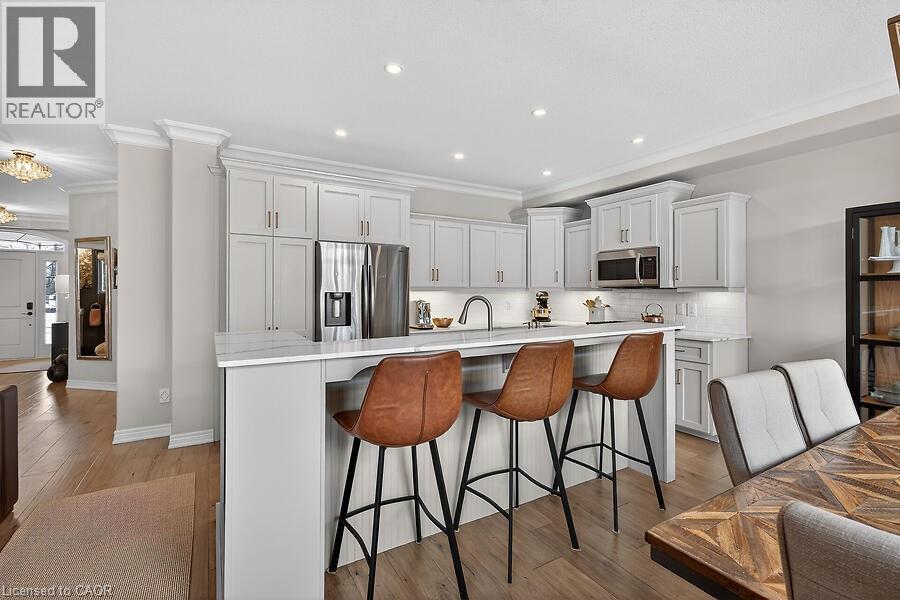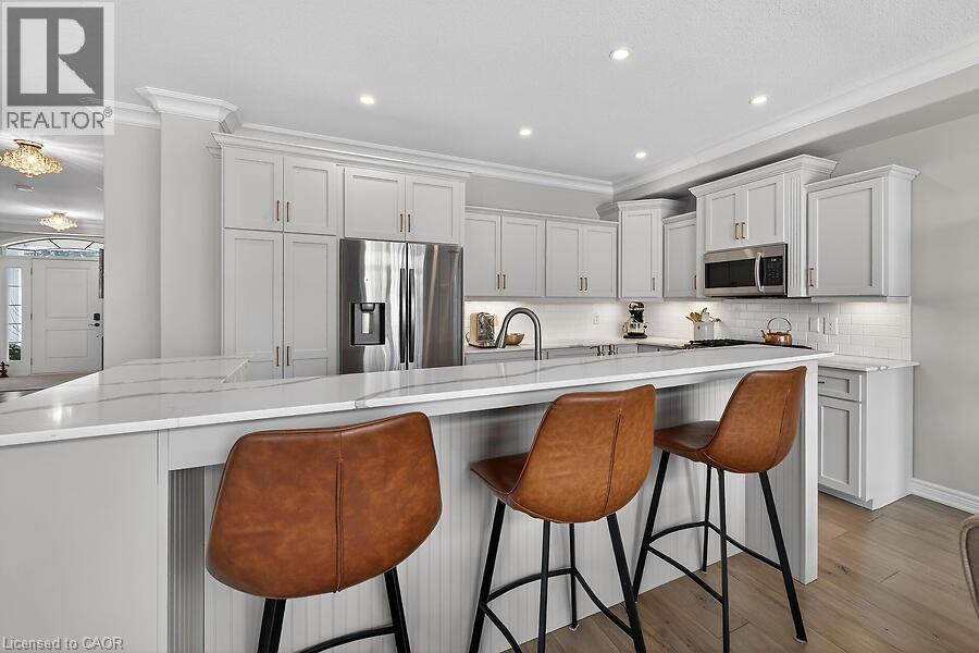 Welcome to 2 Southwood Crescent, nestled in one of Caledonia’s most sought-after neighbourhoods. This stunning 4-bedroom, 3-bathroom home is loaded with upgrades and beautiful finishes throughout. Offering exceptional curb appeal, the professionally landscaped exterior features a full sprinkler system and a welcoming presence. Inside, you’re greeted by a spacious foyer and engineered hardwood flooring that flows through most of the main level. The bright living room showcases a cozy fireplace with custom surround, while 9’ ceilings enhance the open feel. The dining area overlooks the backyard through oversized garden doors with a transom window above. The newly updated kitchen blends style and function with quartz countertops, a large eat-at island, stainless steel appliances (2021) including a gas range, and a modern backsplash. The generous main-floor laundry room offers solid surface counters, upper and lower cabinetry, two large closets, a sink, backsplash, and convenient access to the double garage. An updated 2-piece powder room completes the main level. Upstairs, the stairwell and hallway feature striking floor-to-ceiling custom wall panelling. The spacious primary retreat includes a sitting area, walk-in closet, and a beautifully updated 5-piece ensuite with soaking tub, double quartz vanity, walk-in shower, water closet, and ample storage with two towers. Three additional well-sized bedrooms and a 4-piece bath complete the upper level. New neutral broadloom (2026) adds warmth and comfort. The unfinished basement offers an oversized egress window, bathroom rough-in and awaits your personal touch. Step outside to enjoy the large deck with gazebo overlooking a private, resort-like backyard complete with a wood-burning stove and hot tub. Located within walking distance to the Grand River, trails, schools, parks, and shopping — this exceptional home truly has it all. (id:64974)