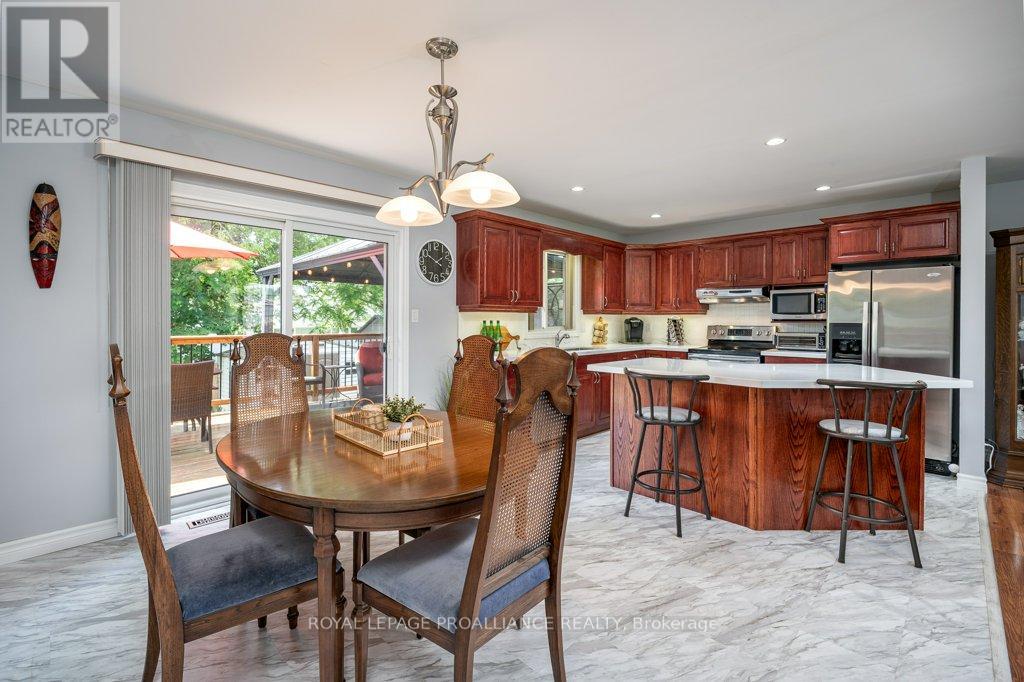 Welcome to this beautifully upgraded (Almost $39,000 in recent upgrades!!) 3-bedroom, 3 full bathroom home that feels like new, offering comfort, style and space throughout. Located in an established subdivision just a short walk to a 1.5 acre park with a play structure, this home features an open-concept kitchen with new quartz countertops, ample cabinetry, while tile backsplash, under-cabinet lighting, stainless steel appliances, and a large functional island flowing into the dining area with new flooring. The main level includes two spacious bedrooms with updated vinyl plank flooring, main floor laundry, and a primary suite with a walk-in closet and a bright 4-piece ensuite. The lower level offers a large rec room with a natural gas fireplace, a third bathroom, a full bathroom, and a versatile den/flex room perfect for a home office, gym, or hobby space. Fresh paint throughout enhances the clean, modern feel. Step outside to enjoy a multi-tiered deck with a gazebo, string lights, and a fully fenced backyard with a wide gate for boat or trailer access, Added highlights include a fully insulated double car garage 20' X 23' bright vaulted-ceiling foyer with new flooring, attractive newer fencing, newer natural gas furnace - central air unit and hot water tank, updated R-60 attic insulation, and a large shed. This (no pets, no smoking) home is close to all amenities, walking distance to the Trent River trail, splashpad, parks, and downtown, and under 10 minutes to Hwy 401 and only 15 minutes to CFB Trenton and Belleville's Quinte Mall. Situated in a sought-after community of families, professionals, and retirees, this turn-key home offers the best of modern living in a prime location. (id:64974)
