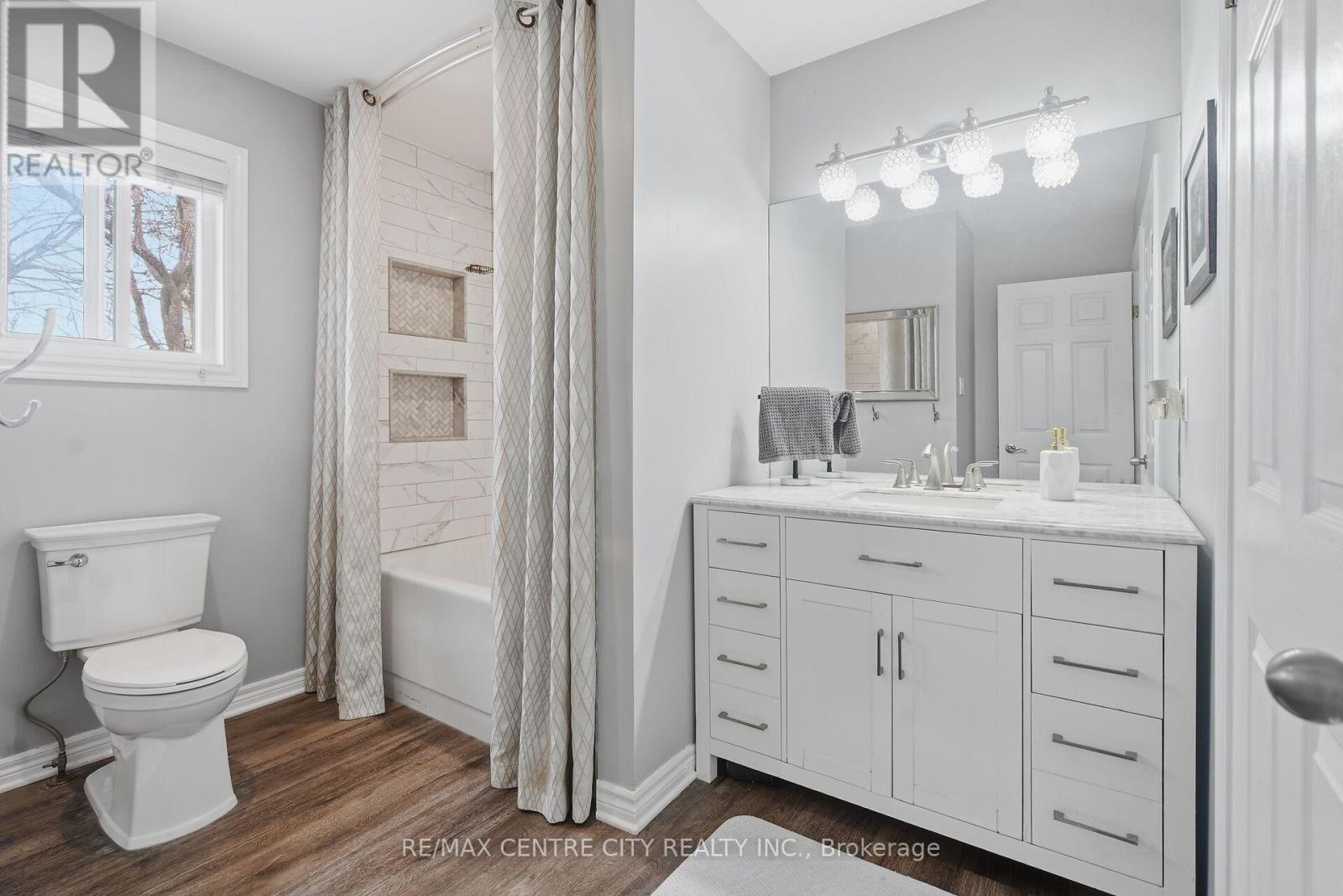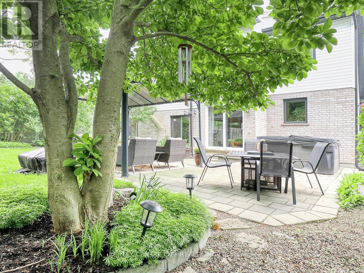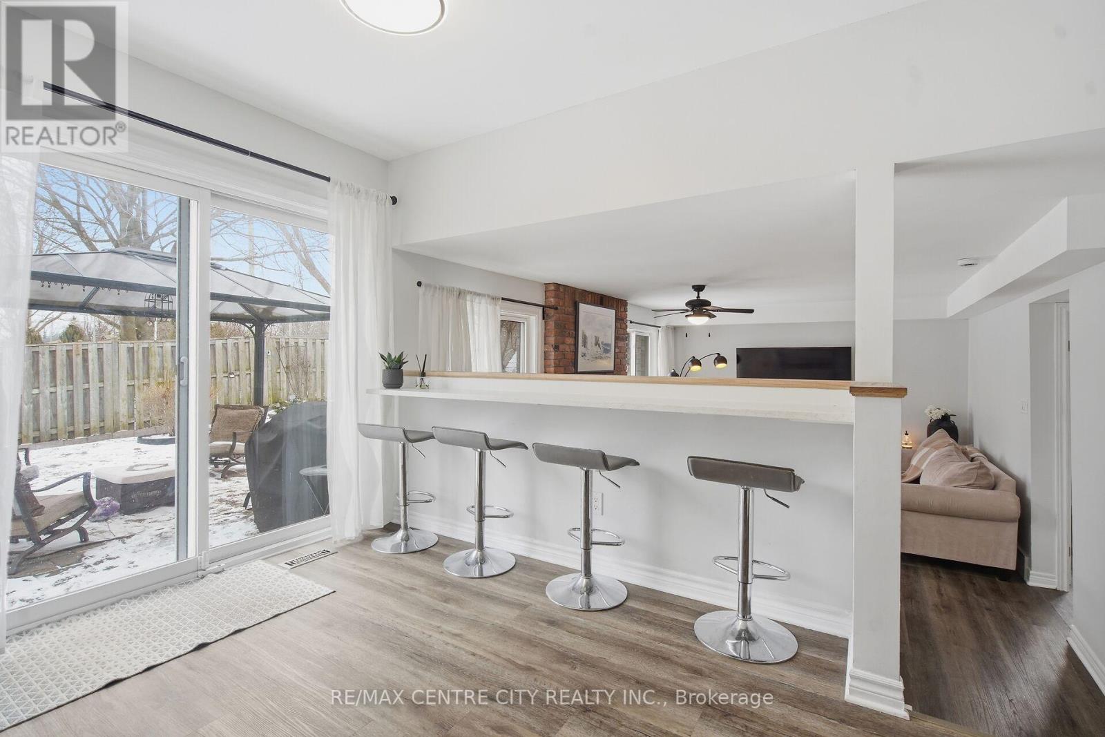 Move-in ready North London home in one of the city's most desirable school districts - welcome to 2 Stoneycreek Crescent. This distinctive two-storey residence features expansive vaulted ceilings, a fully updated kitchen (2019), and a cozy sunken living room within a thoughtful, unique layout. Other interior highlights include a large renovated double-car garage, a main-floor powder room with space to add a shower, and a convenient home office. Upstairs offers three generous bedrooms and a beautifully updated four-piece bathroom with a custom niche and striking tile-work. Outside, a private, tree-lined backyard provides a peaceful retreat with a pergola, storage shed, Hot Tub, and attractive stone-style retaining wall - perfect for relaxing or entertaining. The property enjoys lots of mature trees and beautiful gardens filled with perennials, enhancing the homes curb-appeal. The large driveway also conveniently accommodates parking for 4 vehicles. The lower level adds a recreation room, cold storage and generous storage options. Recent improvements: windows, front and patio doors, garage door (2020); newer flooring, furnace and A/C (2019); siding (2020). Convenient to parks, schools, dog park, Stoney Creek Community Centre, YMCA, library, Thames River walking trails, Western University, University Hospital, Masonville Mall, St. Joseph's Hospital, Fanshawe College and transit. Ready to enjoy and make it your own!!! (id:64974)