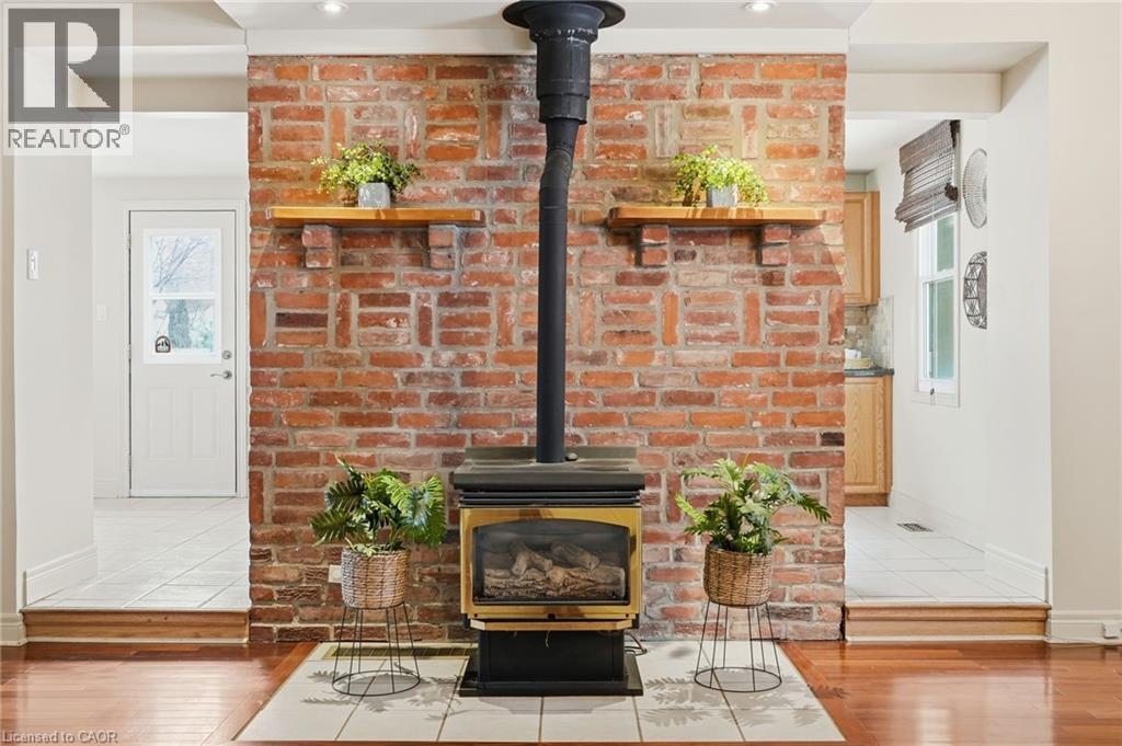 Welcome to 2 Union Street, this charming bungalow is ideally located in the heart of Waterdown, just steps from local shops, restaurants, and pubs. Beautifully landscaped with stunning curb appeal and stylish stucco exterior, this home offers warmth, character, and convenience in one inviting package. Step inside to a cozy family room featuring laminate flooring and soaring ceilings, creating a bright and welcoming space. Just off this area is a beautifully finished three-piece bathroom complete with a walk-in glass shower and cultured marble finishes, as well as convenient main-floor stacked laundry tucked neatly behind closed doors. A bedroom located off this space provides flexibility for guests, a home office, or main-floor living. Continue through to the spacious dining room, highlighted by a charming brick fireplace wall that adds character and warmth — perfect for entertaining. Two sizeable bedrooms are located off this area, offering comfortable accommodations for family or visitors. At the rear of the home, overlooking the stunning fully landscaped backyard, you’ll find a large eat-in kitchen featuring oak cabinetry, granite countertops, and stainless-steel appliances. Step outside to enjoy multiple deck areas ideal for entertaining or relaxing while taking in the private backyard setting. The property also includes a large greenhouse and shed, perfect for gardening enthusiasts or additional storage. A wonderful opportunity to enjoy bungalow living in one of Waterdown’s most walkable and desirable locations. Don’t be TOO LATE*! *REG TM. RSA. (id:64974)