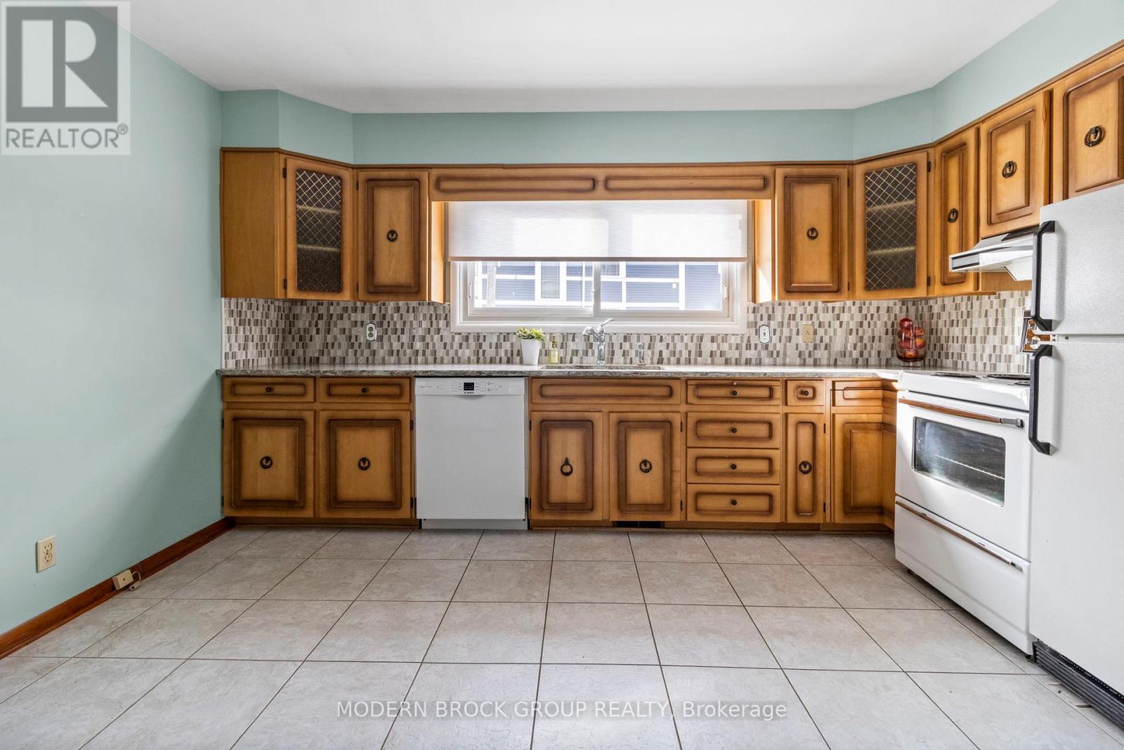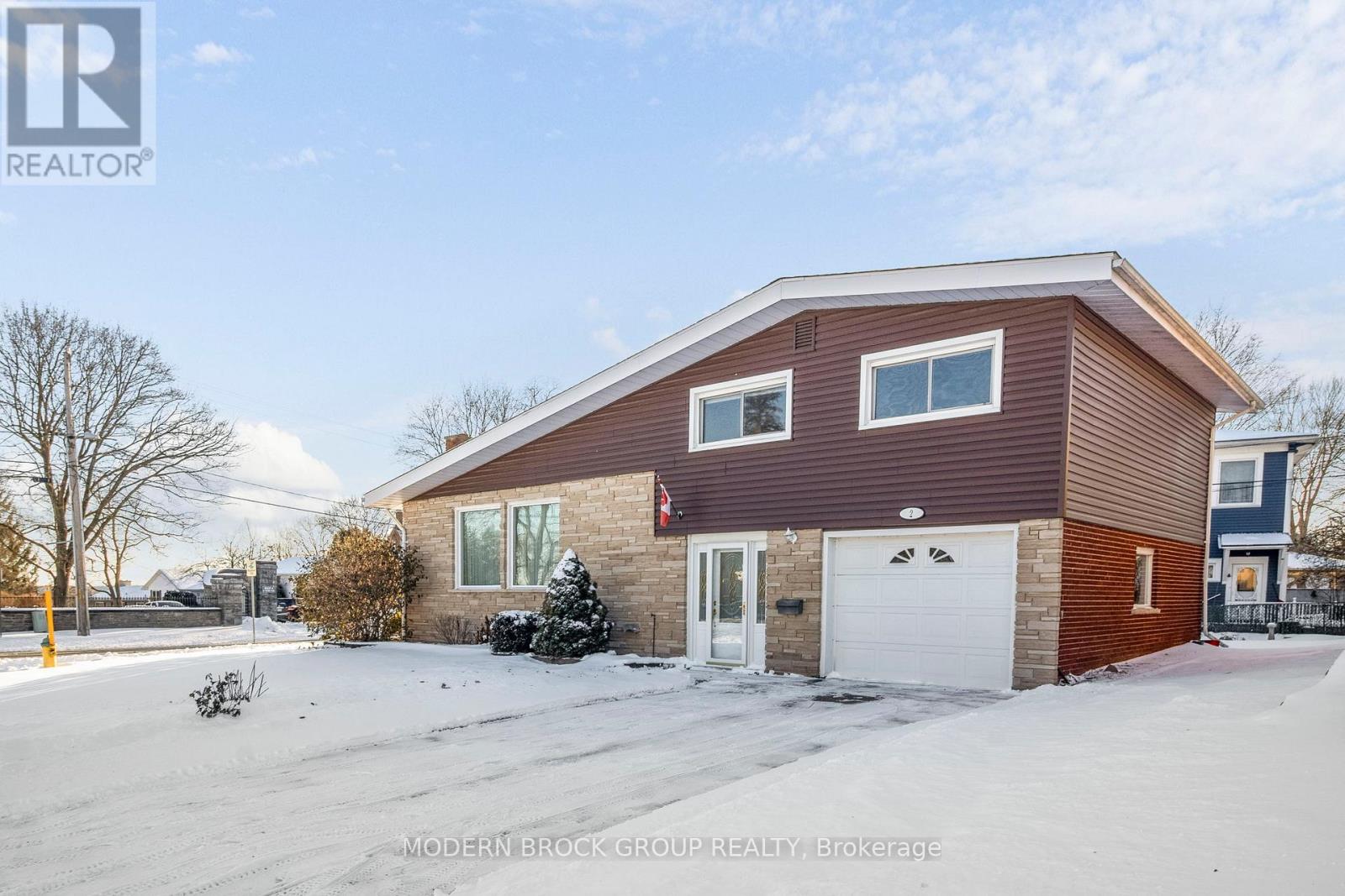 If you have been house hunting in search of a spacious home with great bones and many valuable updates already completed but with room to make it your own on the interior then don't overlook this one! Welcome to 2 Woodlawn Place located in a wonderful downtown east end location close to the St. Lawrence River and was home to the same family since 1967 which speaks volumes! Not your cookie-cutter floorplan with this multi-level boasting a fantastic layout. Oversized vinyl windows throughout allow plenty of natural light. As you pull into the paved driveway, you will be impressed with the how well the property has been maintained over the years with a wonderful yard and gardens with stone edging. The beautiful updated front door and glass storm door welcomes your guests into the spacious foyer which also provides access to the attached garage. The ground level is not just the foyer but also has a bonus space perfect if you have kids for mudroom area or a home office, a 3-pce bath, and an exterior door to the oversized fenced backyard with patio/pergola to enjoy. The main level is a few stairs up from the foyer and has an entertaining sized living room with a cozy natural gas fireplace and two massive front picture windows to enjoy the morning sun. The living room is open to a generous sized dining room that would easily fit a large harvest table for family gatherings. I love how you can enter the kitchen three different ways - from the living room, the dining room or from the foyer/bonus area - so convenient. Don't miss seeing the gorgeous updates in the kitchen - the gorgeous stone counters, backsplash, deep stainless steel double sinks and faucet with sprayer. The main bathroom has been nicely updated too. The basement has a rec room and large utility/laundry for storage and workshop space. Roof shingles (2025), interlock stone patio (2023), furnace & A/C approx. 10 years old. All appliances are included. Quick possession possible. Come see! (id:64974)