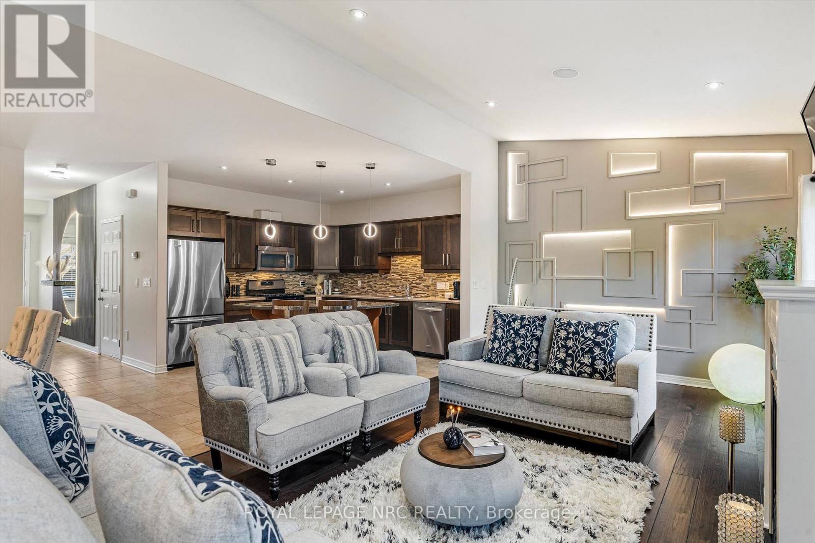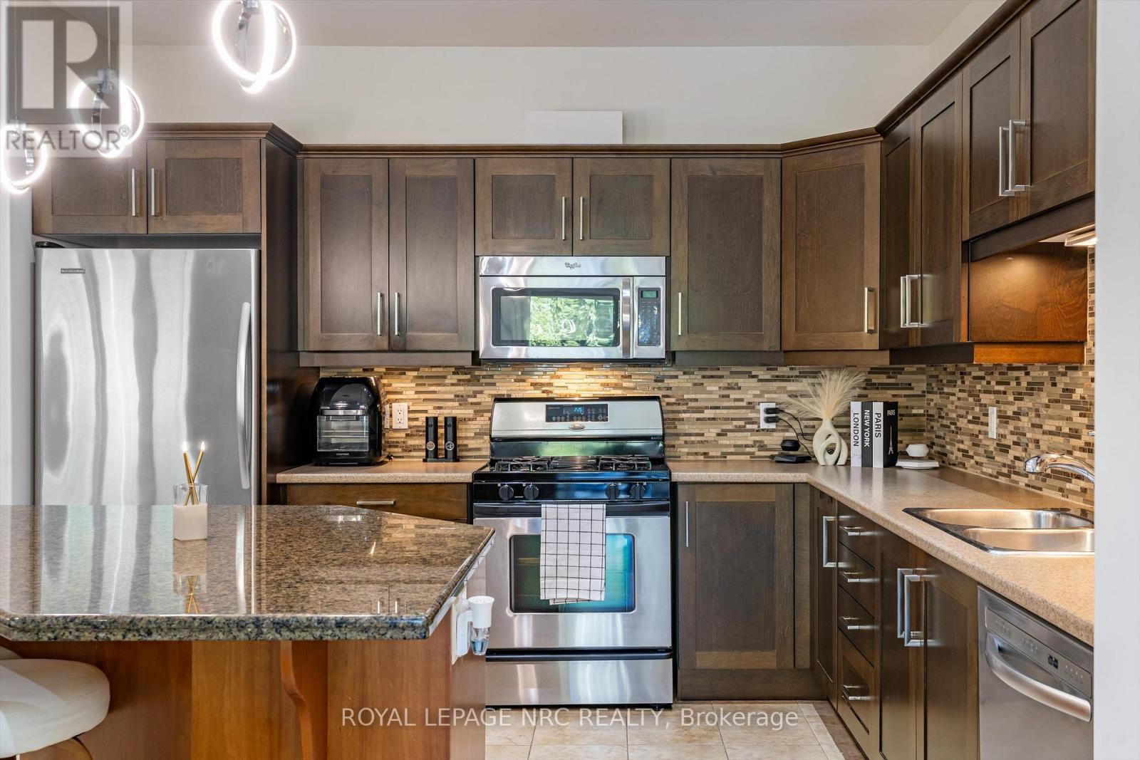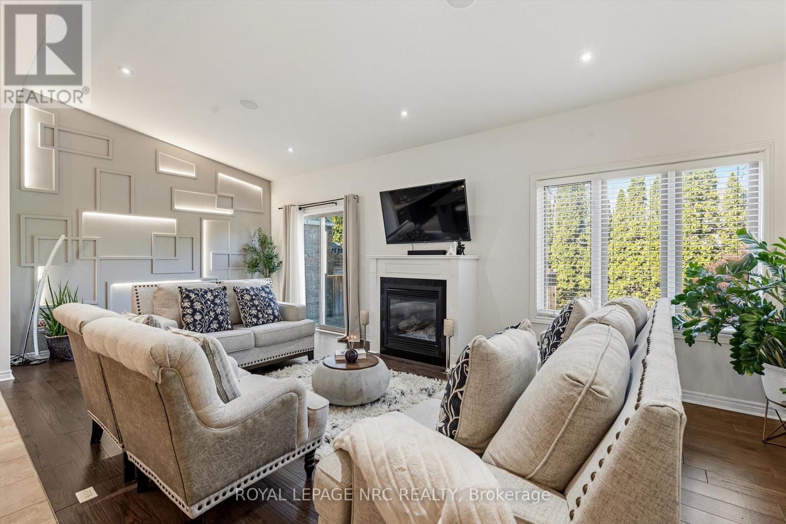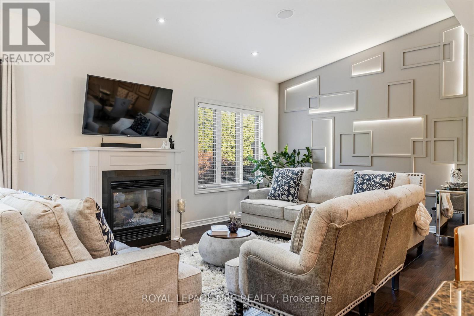 Welcome to Victory Garden in the heart of Fonthill. This home is ideally located within walking distance to restaurants, shopping, the library, and the Farmer's Market, making it easy to enjoy everything the area has to offer. The neighbourhood is well cared for, and it shows as soon as you arrive. Inside, the home has been thoughtfully laid out and well-maintained. You're greeted by a spacious foyer with a convenient main floor powder room. The kitchen offers plenty of storage, a stylish backsplash, under-cabinet lighting, and a large island, all open to the dining area and great room. The great room spans the full width of the home and features pot lights, built-in speakers, and a gas fireplace, creating a comfortable space for everyday living. Upstairs, you'll find three bedrooms, two full bathrooms, and the added convenience of second-floor laundry. The primary bedroom includes a walk-in closet and a private ensuite with a soaker tub. Recent updates include: luxury vinyl plank flooring on second level (2024), illuminated accent walls (2024), and a new garage door (2019). Out back, enjoy a private deck and a tree-lined yard. As part of condo living, lawn maintenance is handled for you, making it easy to enjoy the space without the extra work. This is more than a home, it's a lifestyle you won't want to miss. (id:64974)