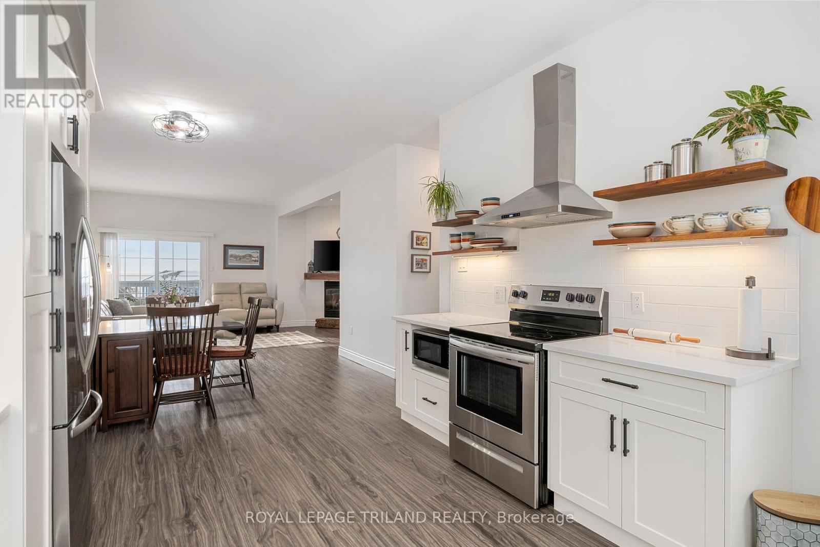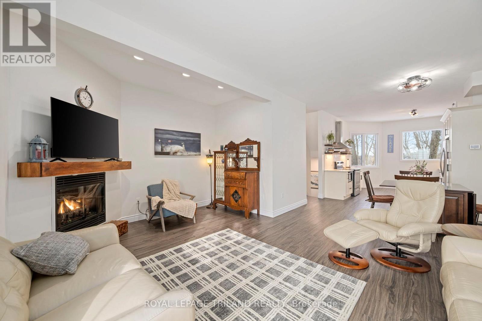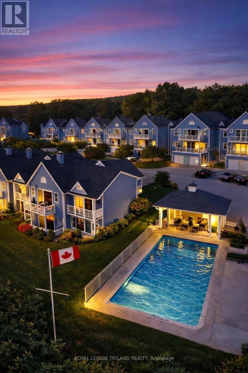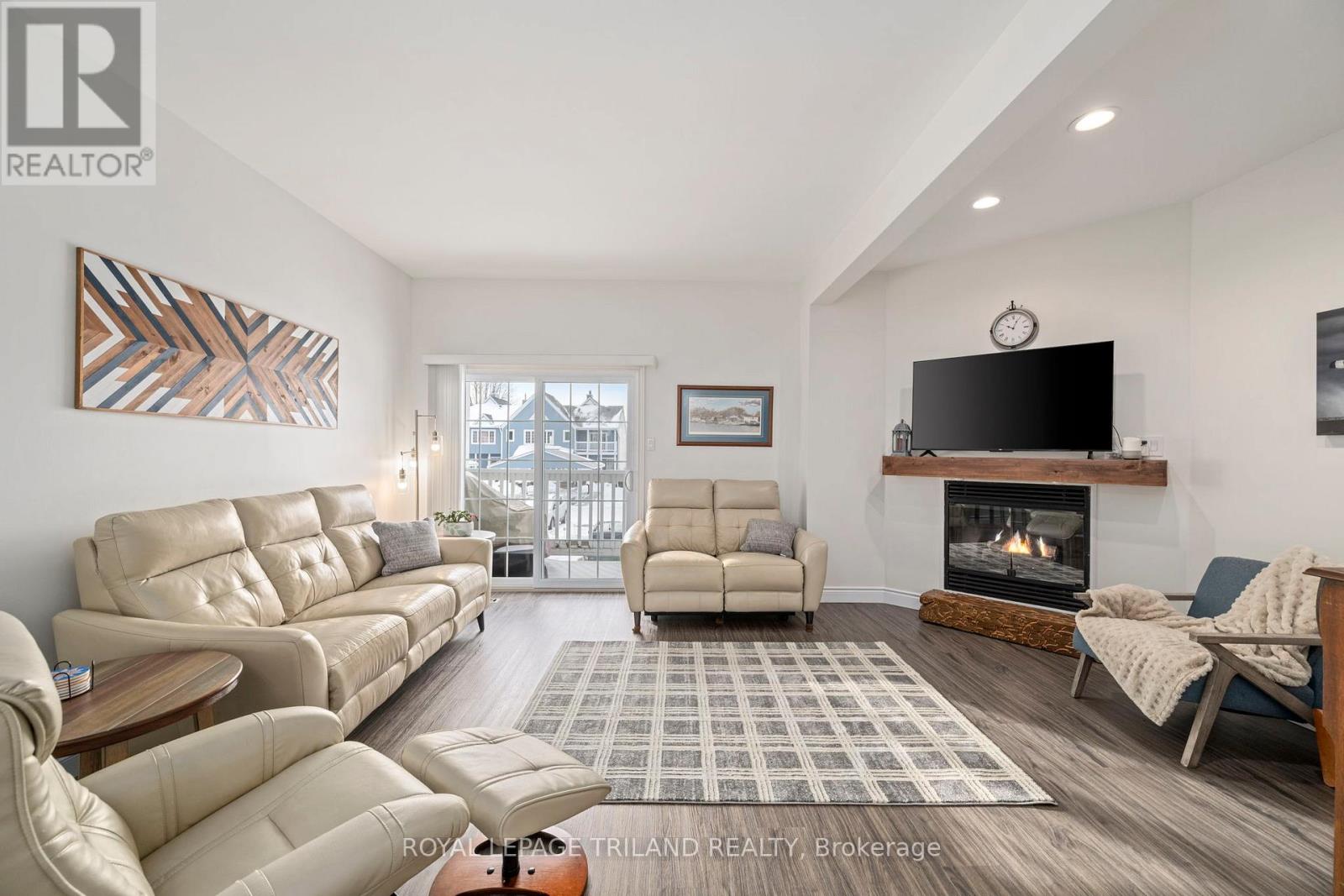 Close the laptop. Step onto your balcony. Let the lake reset your day.Welcome to Mariner's Bluff in Port Stanley - where everyday life feels like an escape. This beautifully updated townhouse condo offers a 3-bedroom layout, perfect for remote professionals, outdoor lovers, or anyone ready to trade congestion for fresh air, water views, and space to breathe.With 3 bedrooms, 1.5 bathrooms, and a single car garage, this home offers a rare setting with open lake views at the front and peaceful ravine privacy at the rear - giving you the best of both worlds.The main living level is bright, open, and built for real life. The kitchen flows seamlessly into the dining and living space, centred around a gorgeous gas fireplace with custom mantel. Step onto the lake-facing balcony for morning coffee before work, midday fresh-air breaks, or evenings watching the water and sunsets roll in. Upstairs, the primary bedroom features a large closet and private lakeview balcony - a space that quickly becomes your favourite place in the home. Additional bedrooms offer flexibility for guests, home office space, or growing lifestyle needs.Extensive updates provide true move-in confidence, including newer flooring, fresh paint, heat pump (2023), rental water heater (2023), custom blinds (2024), washer and dryer (2023), dishwasher (2025), updated lighting, and newer garage door opener with exterior keypad (2025).The community pool sits directly across from the unit overlooking the lake, adding to the everyday resort-style feel of the neighbourhood.If you've been waiting for a lifestyle upgrade that still feels attainable - a place where you can work, live, recharge, and enjoy the outdoors without compromise - this is it. This is a lifestyle upgrade that is actually within your reach. (id:64974)