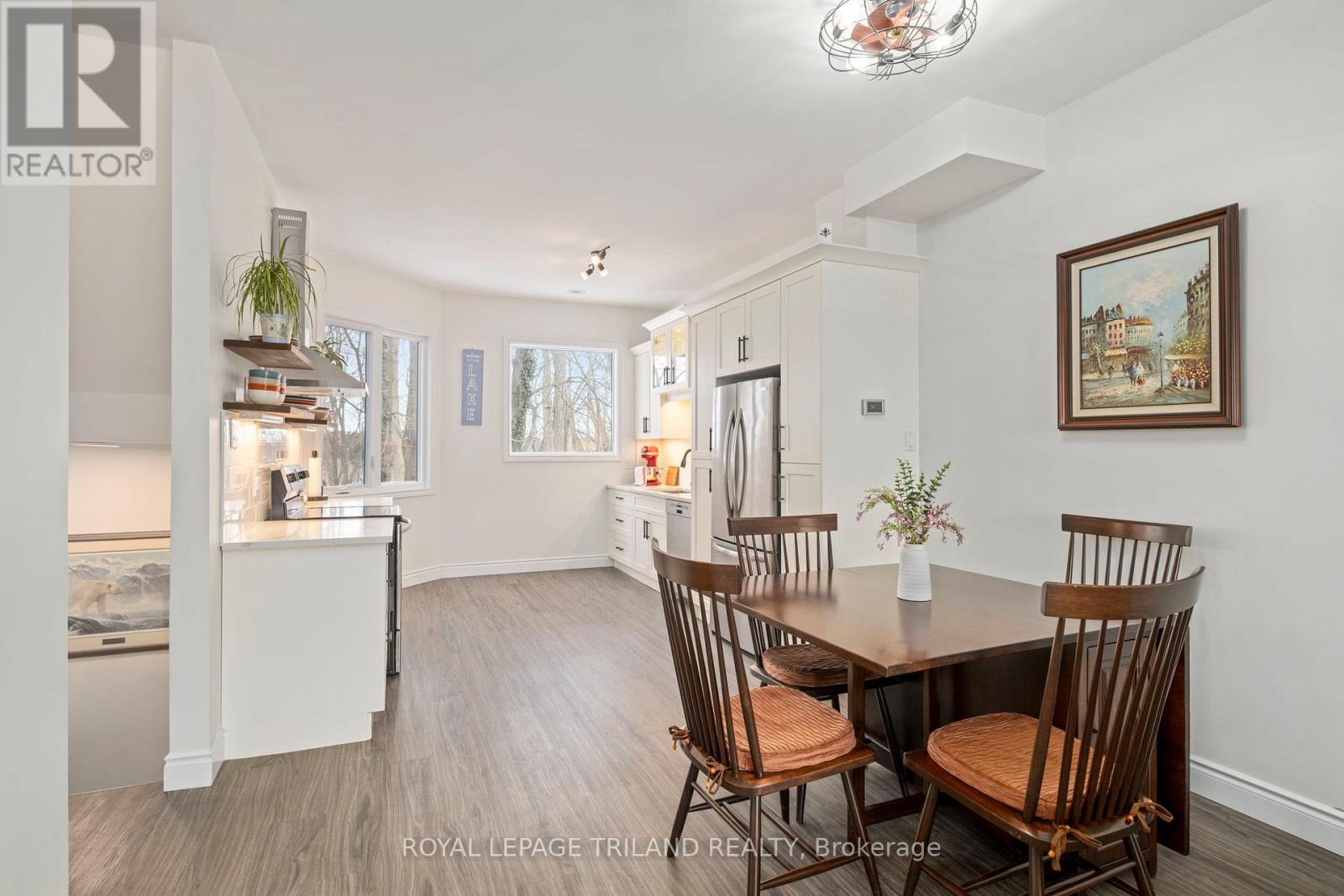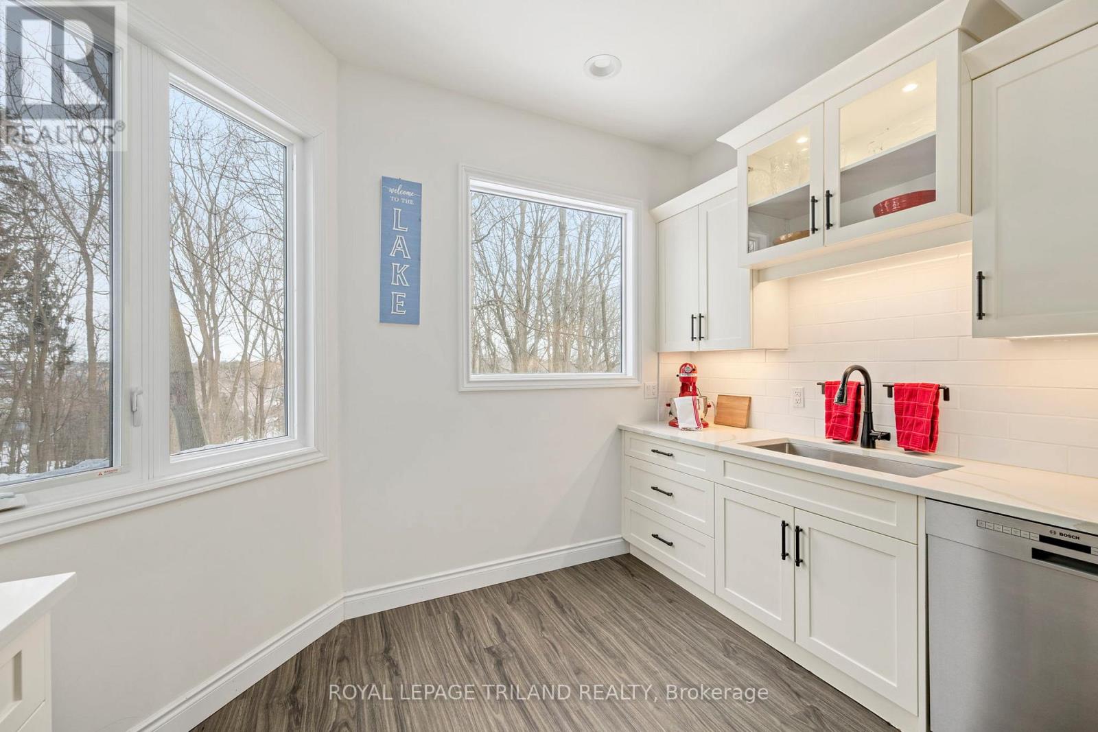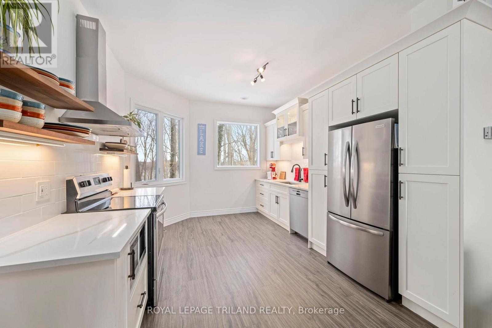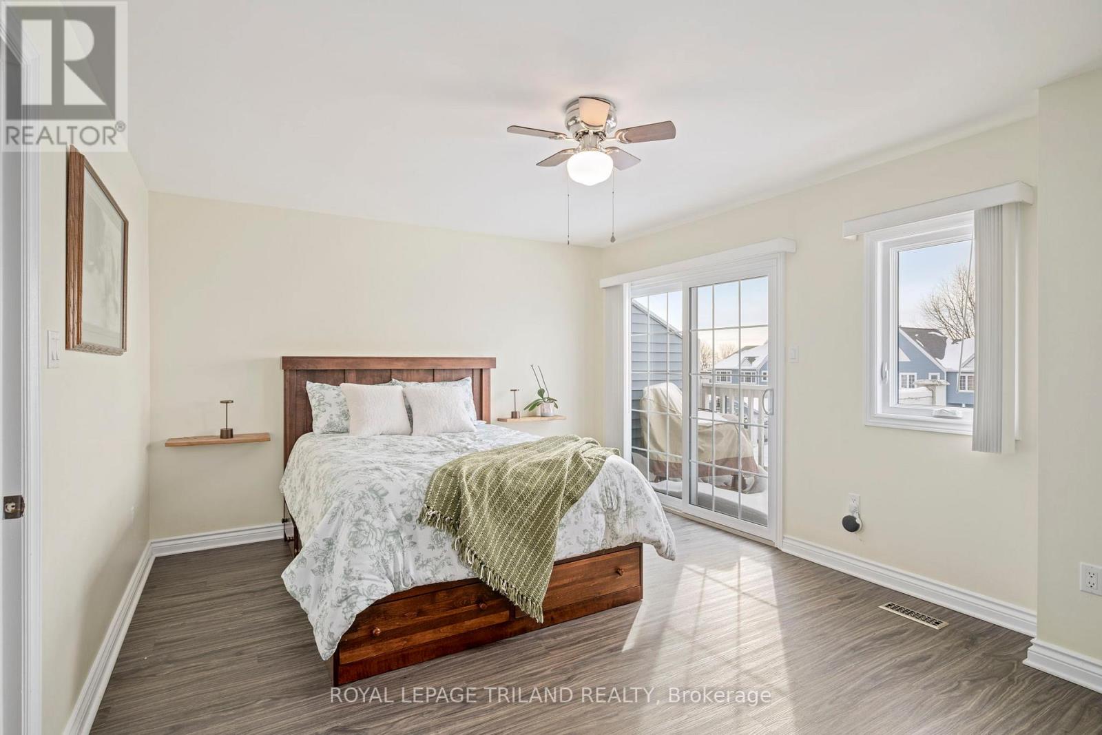 Close the laptop. Step onto your balcony. Let the lake reset your day.Welcome to Mariner's Bluff in Port Stanley - where everyday life feels like an escape. This beautifully updated townhouse condo offers a 3-bedroom layout, perfect for remote professionals, outdoor lovers, or anyone ready to trade congestion for fresh air, water views, and space to breathe.With 3 bedrooms, 1.5 bathrooms, and a single car garage, this home offers a rare setting with open lake views at the front and peaceful ravine privacy at the rear - giving you the best of both worlds.The main living level is bright, open, and built for real life. The kitchen flows seamlessly into the dining and living space, centred around a gorgeous gas fireplace with custom mantel. Step onto the lake-facing balcony for morning coffee before work, midday fresh-air breaks, or evenings watching the water and sunsets roll in. Upstairs, the primary bedroom features a large closet and private lakeview balcony - a space that quickly becomes your favourite place in the home. Additional bedrooms offer flexibility for guests, home office space, or growing lifestyle needs.Extensive updates provide true move-in confidence, including newer flooring, fresh paint, heat pump (2023), rental water heater (2023), custom blinds (2024), washer and dryer (2023), dishwasher (2025), updated lighting, and newer garage door opener with exterior keypad (2025).The community pool sits directly across from the unit overlooking the lake, adding to the everyday resort-style feel of the neighbourhood.If you've been waiting for a lifestyle upgrade that still feels attainable - a place where you can work, live, recharge, and enjoy the outdoors without compromise - this is it. This is a lifestyle upgrade that is actually within your reach. (id:64974)