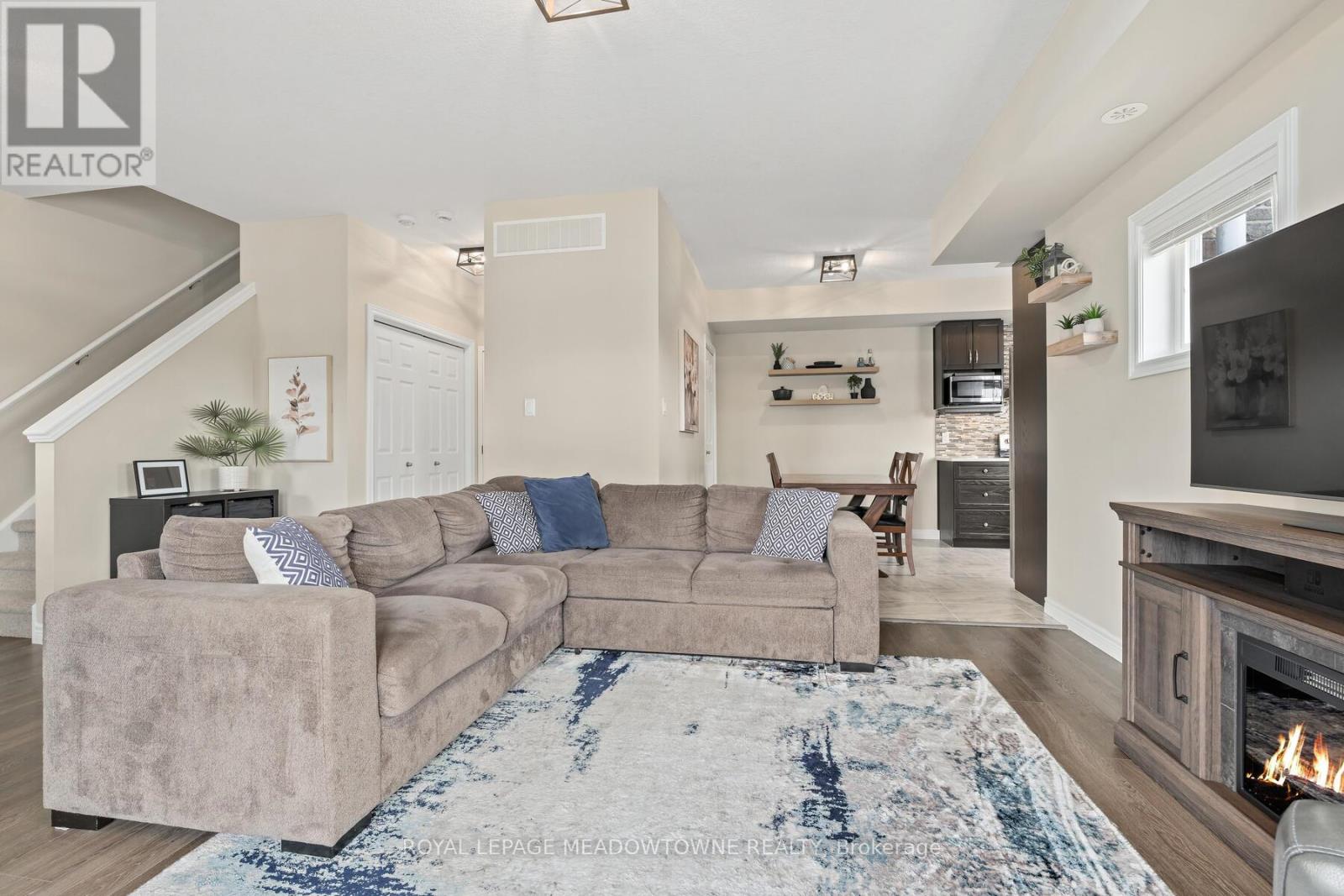 Welcome to 39 Kay Cres, Unit #20. This beautifully well maintained 3-bedroom, 1.5 bathroom, stacked townhome with built-in garage is an end unit, offers beautiful windows & natural light. Ideally situated in Guelphs sought after south end. Offering the perfect balance of comfort, convenience, &style, this home is just minutes from major amenities, highway access, schools, shopping & scenic golf courses. Inside, you'll find an inviting open concept main floor living space with a modern eat in kitchen featuring quartz countertops, SS appliances & classic shaker style cabinetry. Kitchen flows seamlessly into the living area which is perfect for entertaining or relaxing. Step through double doors from the living area onto your private balcony, a great spot for morning coffee or evening glass of wine. Convenient 2-piece powder room rounds out the main level. Upstairs you'll find three generously sized bedrooms a full 4-piece bathroom, stacked laundry closet making everyday living a breeze. Freshly painted, updated lighting on main level, ample storage space with generous closets in each bedroom & at the entrance. Whether you're a first-time buyer, down sizer, or investor this is one not to miss. (id:64974)