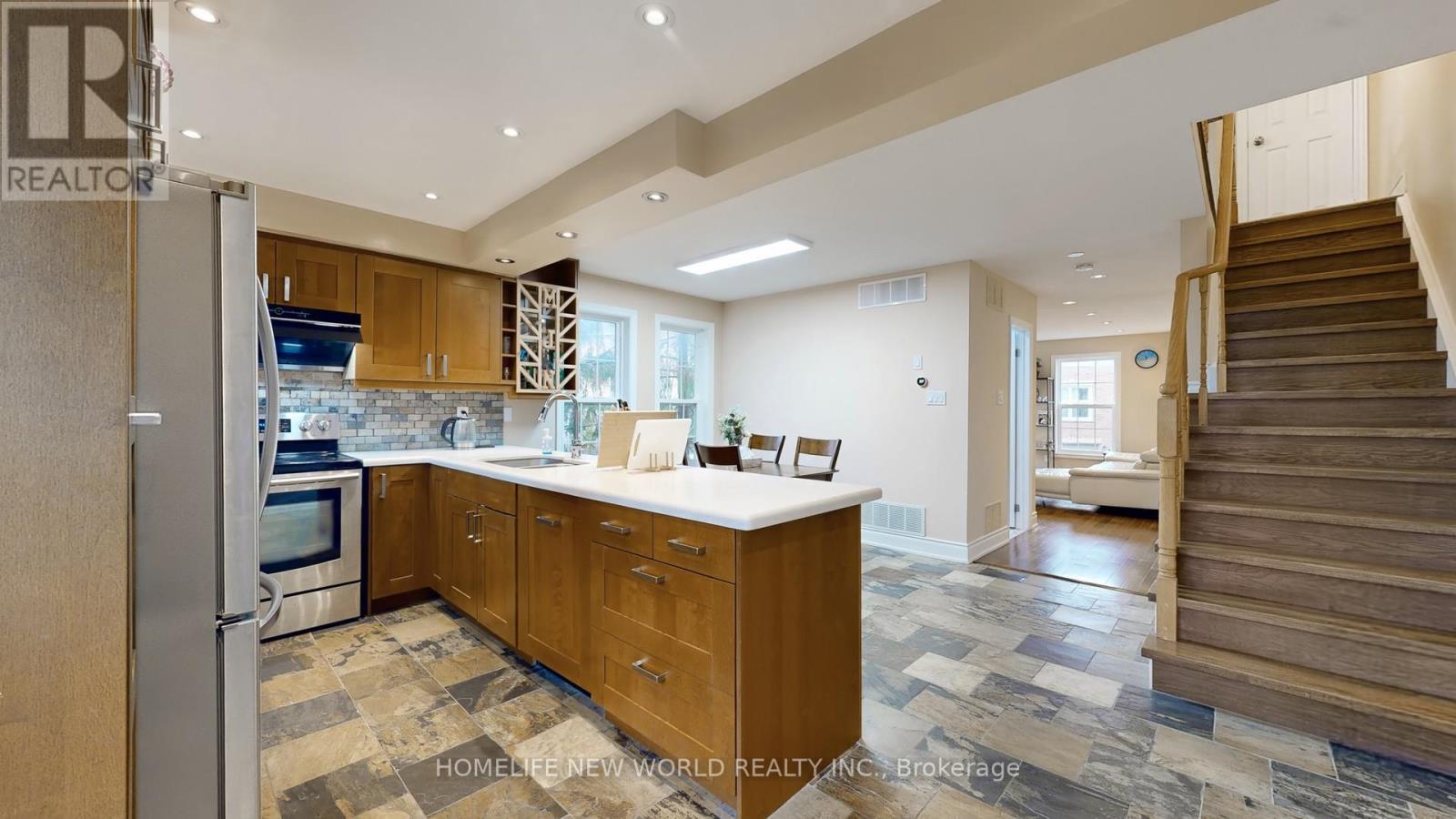 Fantastic End Unit Townhouse On Quiet Dead-End St. Rare 4-Bedroom Home Is A Beauty! Nothing To Do But Move In And Enjoy! With Lots Of Windows, Natural Light From Morning To Afternoon. Sides To Parkette, Fenced Yard, Large Interlock Deck Surrounded By Trees, Carpet Free. Convenient Direct Access To Garage. Lower Level Additional Living Space - Perfect For Who WFH or Family Gathering. (id:64974)