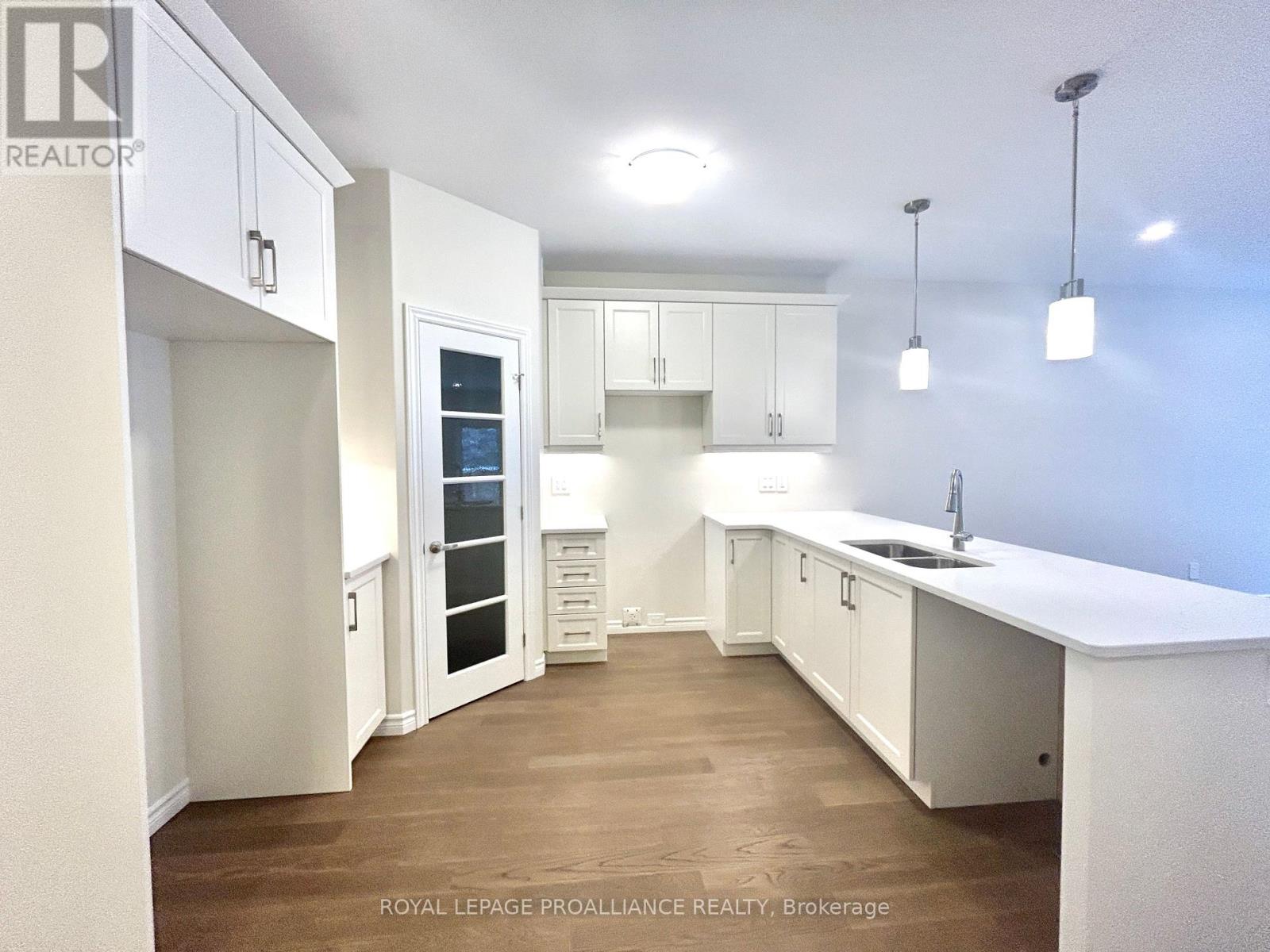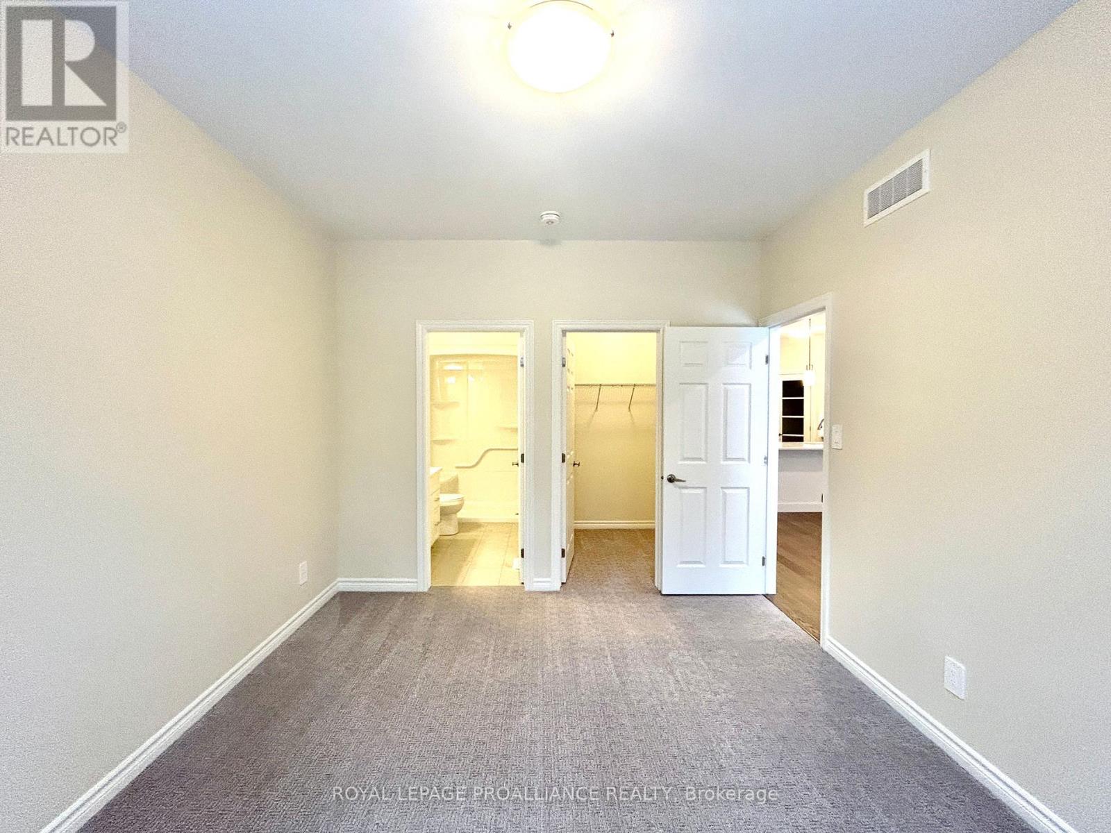 Welcome to Northgate condominiums, a cozy community of town-home condominium units conveniently located just north of the 401 in Belleville, minutes from the Quinte Mall. This beautiful brand new bungalow town-home is now available for immediate occupancy. Featuring two bedrooms, two bathrooms, and an attached one car garage with inside entry. The main floor is completed with 9ft ceilings and includes a well appointed kitchen with quartz countertops and corner pantry. The great room, located just off the kitchen, looks out to the pressure treated wood deck overlooking Boyd Park. The bright primary bedroom includes a walk-in closet as well as a 3-piece en-suite bathroom. The main floor is completed with an additional bedroom, main bathroom and convenient laundry room. This home also includes a full unspoiled basement with basement bathroom rough-in. (id:64974)