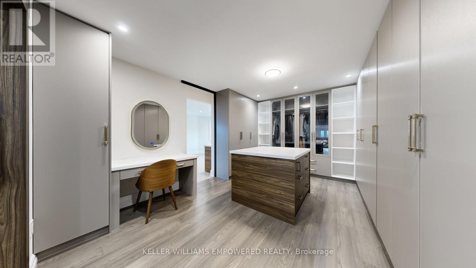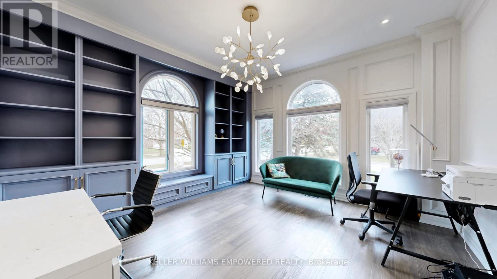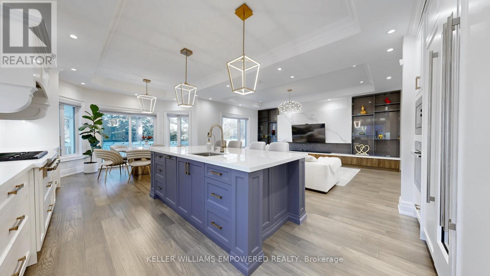 Exceptional fully renovated luxury home in prestigious Banbury-Don Mills on a prime 62 x 140 ft corner lot. Offering over 7,000 sq. ft. of finished living space, this grand detached 2-storey residence was renovated top to bottom in 2022 and features 5 bedrooms, 7 full bathrooms, an open-to-above foyer, elegant spiral staircase, expansive principal rooms, large windows, and skylights. The gourmet eat-in kitchen includes a pantry, breakfast area with walk-out to deck that leads to the side garden, and premium appliances including Wolf, Sub-Zero, Vent-A-Hood, and Miele. Main floor office/library with French doors and built-in shelves. Luxurious primary retreat with sitting area, custom dressing room, and spa-like 5-piece ensuite. Fully finished basement with home theatre, gym, sauna, second kitchen, and walk-up. Includes 2 laundry areas, 2 furnaces, 2 A/Cs, 3-car garage, circular driveway, and parking for up to 15 cars. Close to Edwards Gardens, Granite Club, and top private schools including Crescent, Crestwood, and TFS. (id:64974)