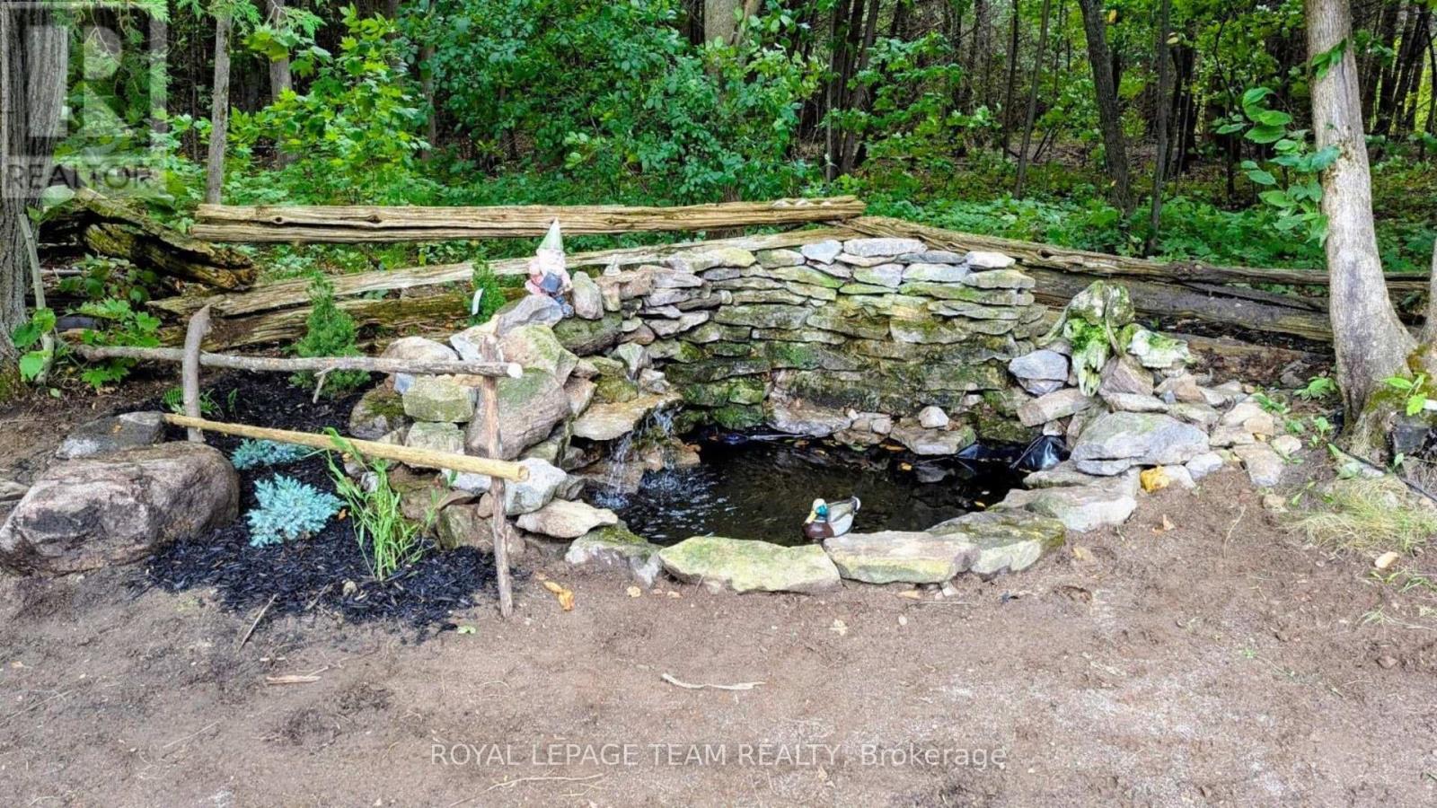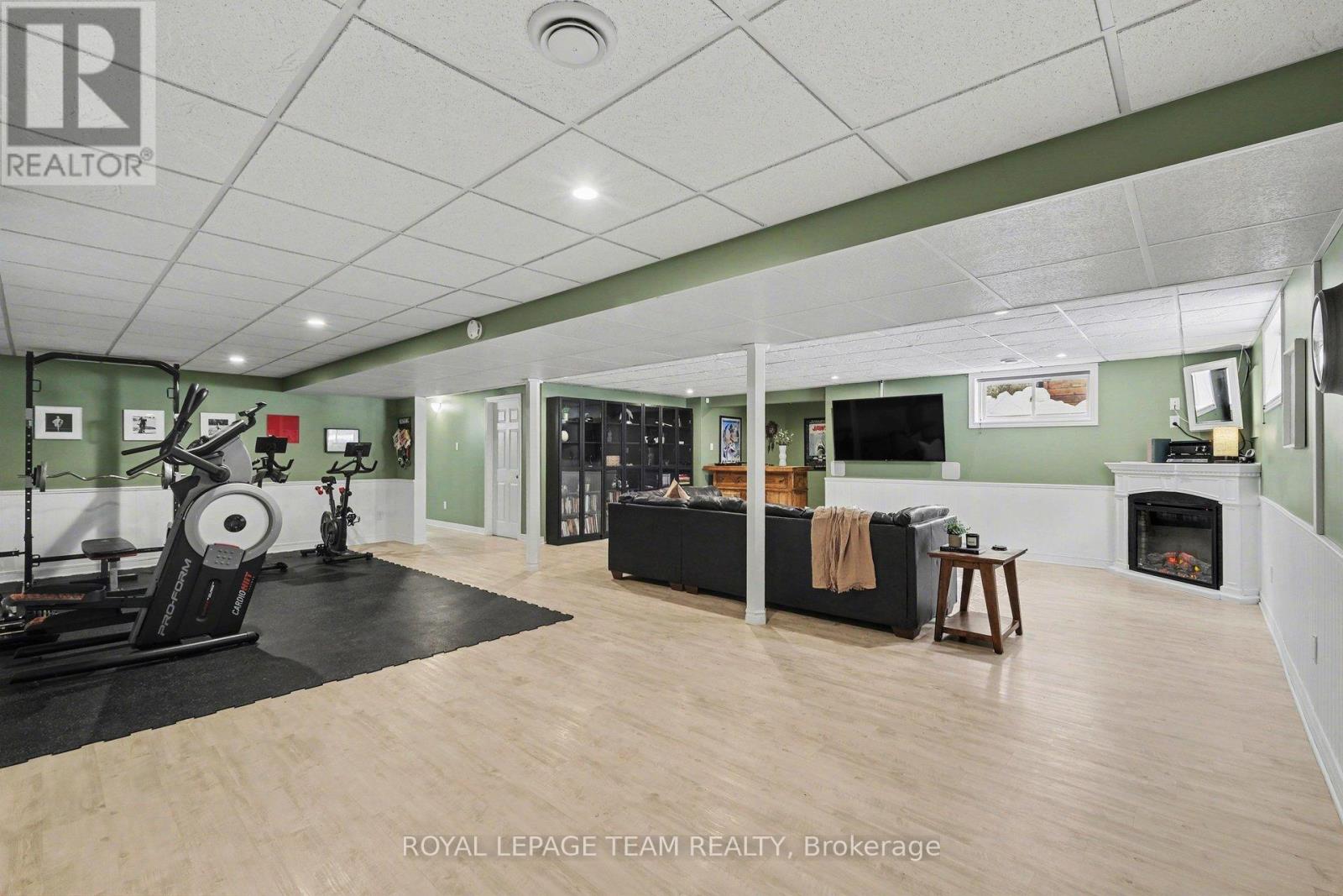 Welcome to 20 Cedar Rail Crescent, a picture-perfect home nestled in Stonehaven Estates, one of Kemptville's most sought-after, family-friendly neighbourhoods. This delightful bungalow welcomes you with a bright, open layout that exudes warmth and comfort. The eat-in kitchen seamlessly flows into a cozy living room, complete with a gas fireplace, all overlooking your private backyard oasis. The dining area, enhanced by stunning cathedral ceilings, is perfect for entertaining family and friends. The main floor is thoughtfully designed with 3 bedrooms, ensuring both comfort and privacy. On one wing, you'll find the serene primary suite, featuring a spa-inspired ensuite and two large closets - one a walk in, and both with built in storage solutions. On the opposite side, two additional bedrooms share a well-appointed full bathroom, ideal for family members or guests. Convenient main-floor laundry enhances everyday ease, while hardwood flooring graces the living spaces, and tile finishes in the wet areas provide both style and practicality. Venture downstairs to the fully finished basement, offering even more space, including a bedroom, a rec room with built-in speakers, and another full bath. Whether it's for movie nights, sleepovers, or accommodating visiting in-laws, this level of the home has you covered. Outside, the lifestyle continues with an expansive, private backyard perfect for summer enjoyment and relaxing in the hot tub under the stars, and a natural gas hook-up for the BBQ making summer cookouts a breeze. The large deck, handy shed, irrigation system, pond, trails, and thoughtfully planted gardens featuring apple, plum, and cherry trees make this outdoor space both beautiful and functional. Situated on a 1.84-acre pie-shaped lot just outside Kemptville, this home perfectly blends peaceful country living with everyday convenience. Come explore 20 Cedar Rail Crescent today - you won't want to miss it! (id:64974)