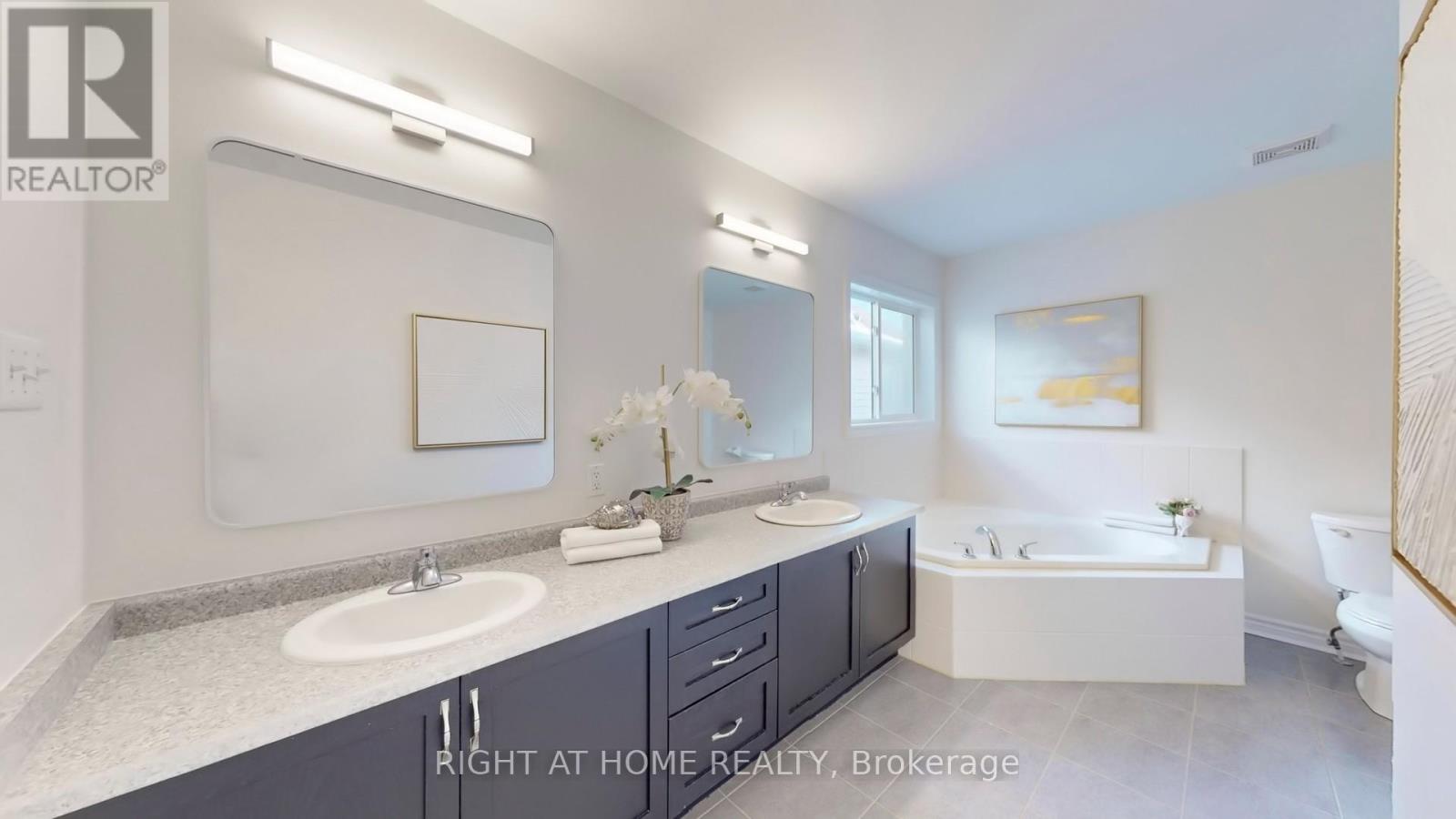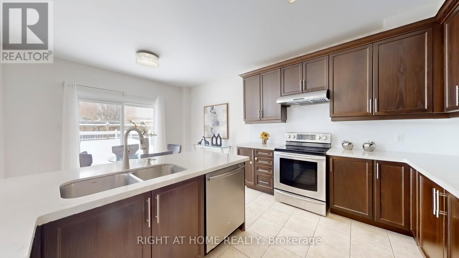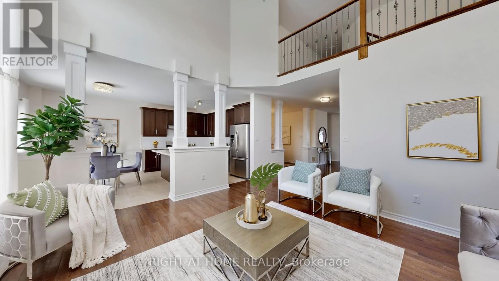 Welcome to this beautifully maintained home offering a bright and functional layout for family living. Freshly painted throughout, this move-in-ready home features hardwood flooring/smooth ceiling on the first floor and abundant natural light.Impressive family room with soaring 18-ft ceilings and a gas fireplace, creating a warm and inviting space for entertaining and everyday enjoyment. Functional kitchen offers quartz countertops, new backsplash, ample cabinetry, centre island, stainless steel appliances, new range-hood. Four generously sized bedrooms, with two bedrooms featuring private en-suite bathrooms. Interlocking (2021) at the backyard with a large wooden deck. Located in a family-friendly neighbourhood with excellent schools, close to trails, waterfront, and GO Station. (id:64974)