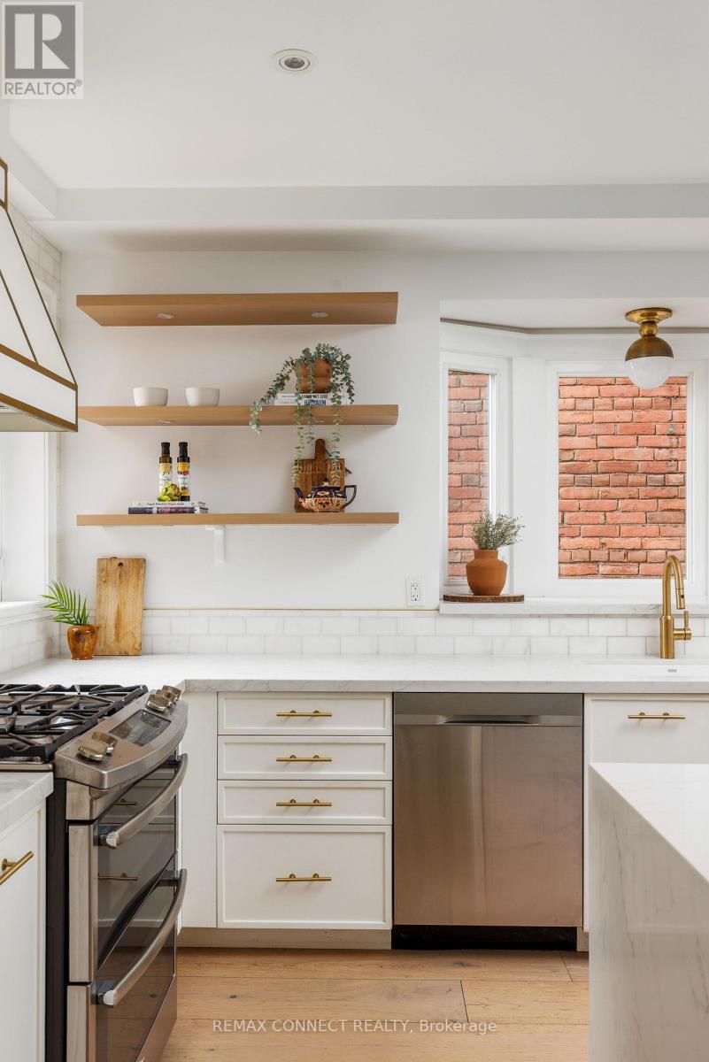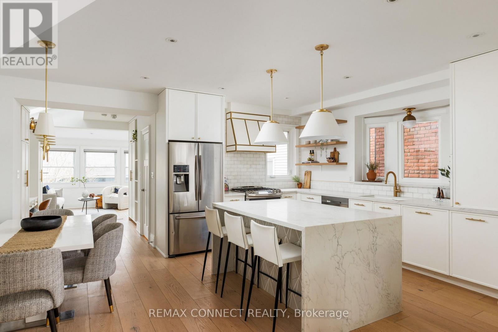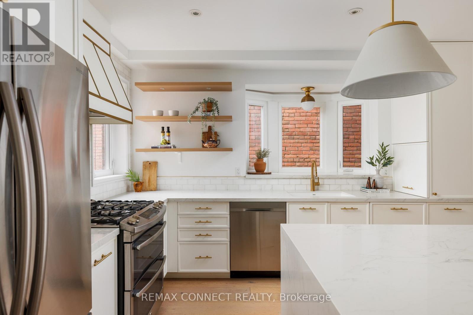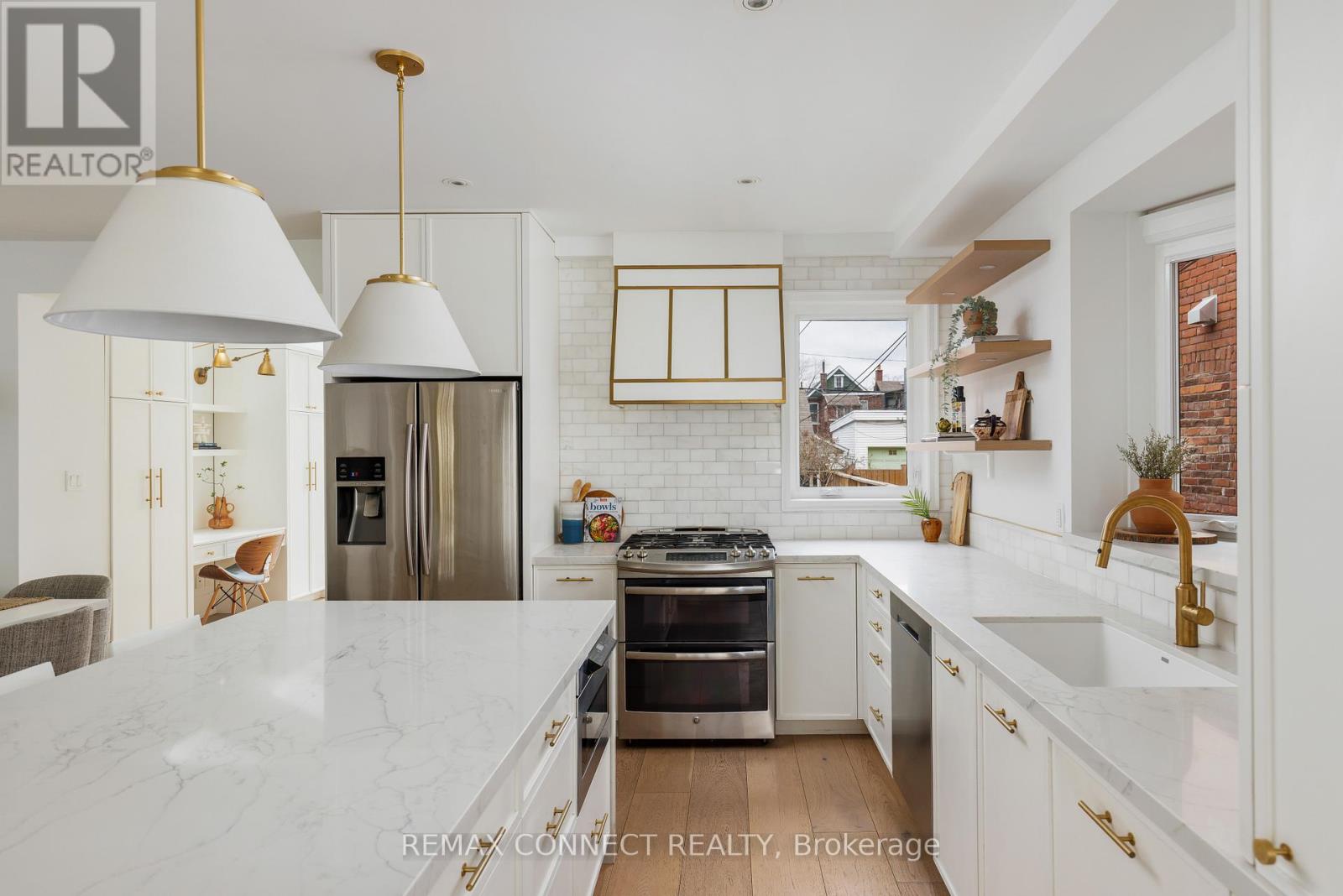Find your perfect fit on Fenwick! An exceptional, renovated Edwardian residence circa 1905, gracefully poised on one of Riverdale's most coveted, tree-lined streets. This distinguished three-storey home offers 4 bedrooms, 3 bathrooms, and a refined balance of character and luxury. The home's timeless façade sets the tone for what lies within. The thoughtfully designed main floor unfolds with grand principal rooms, where natural light, timeless architectural charm, hydronically heated hardwood floors and Gas fireplace create an atmosphere of warmth and sophistication. The plethora of custom built ins and seamless open-concept layout is ideal for both entertaining and everyday living. At the heart of the home, a chef's kitchen impresses with quartz countertops, marble backsplash, oversized centre island, bespoke cabinetry, and quality appliances. The space transitions effortlessly into a rare rear family room, illuminated by four skylights-an inviting backdrop for gathering and relaxing. A convenient powder room completes the main level. The second floor offers three bedrooms with ample storage, complemented by a stylish family bathroom. The entire level is enhanced by the comfort of radiant heated floors. Crowning the home, the third-floor primary suite serves as a private sanctuary, featuring a walk-in closet and a spa-inspired ensuite crafted for total relaxation. The lower level, with a separate walkout, presents a blank canvas to create a space tailored to your needs. Outdoors, a private backyard provides a peaceful urban retreat, while the detached two-car garage with lane access offers the ultimate parking convenience and storage. Perfectly located steps from Withrow and Riverdale Park, and the vibrant shops and restaurants of the Danforth, offering an unparalleled lifestyle defined by coveted top-tier schools and community. Riverdale living at its finest! (id:64974)