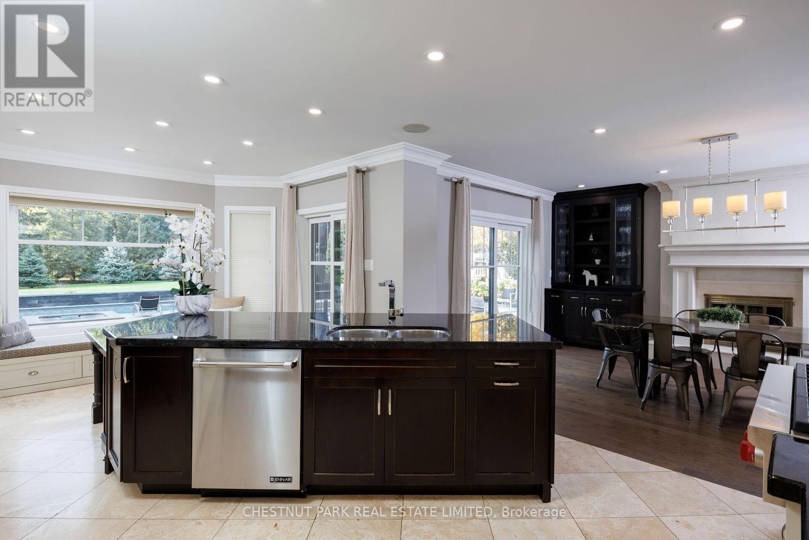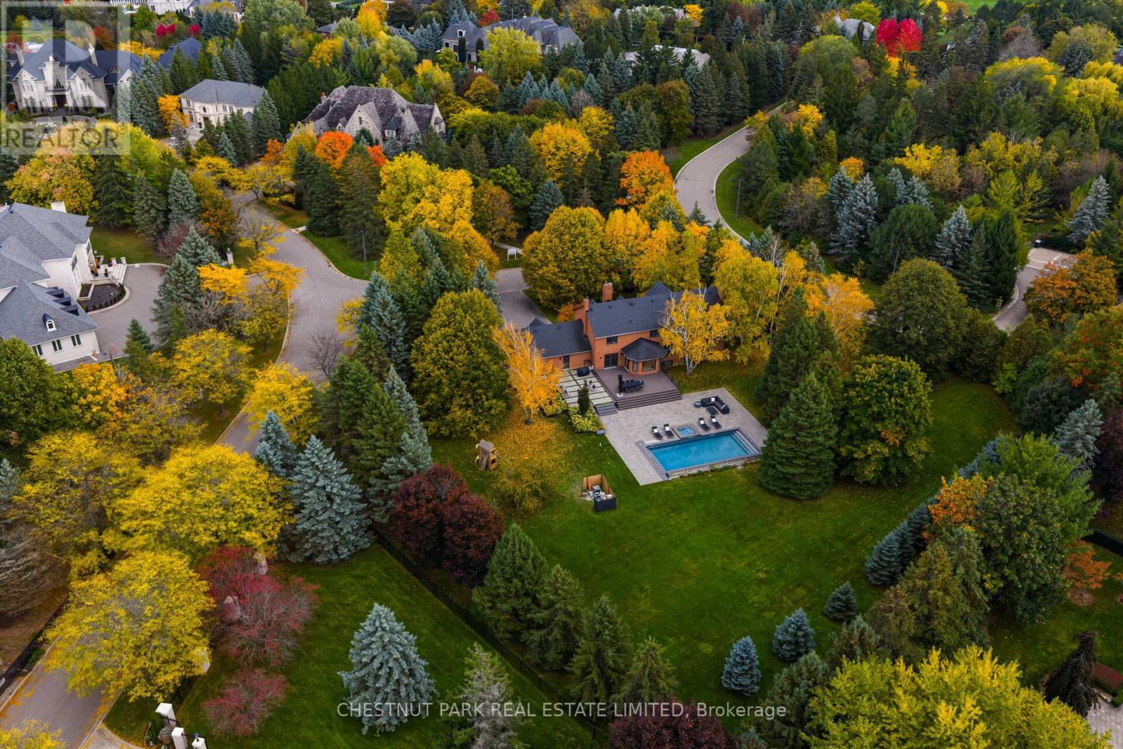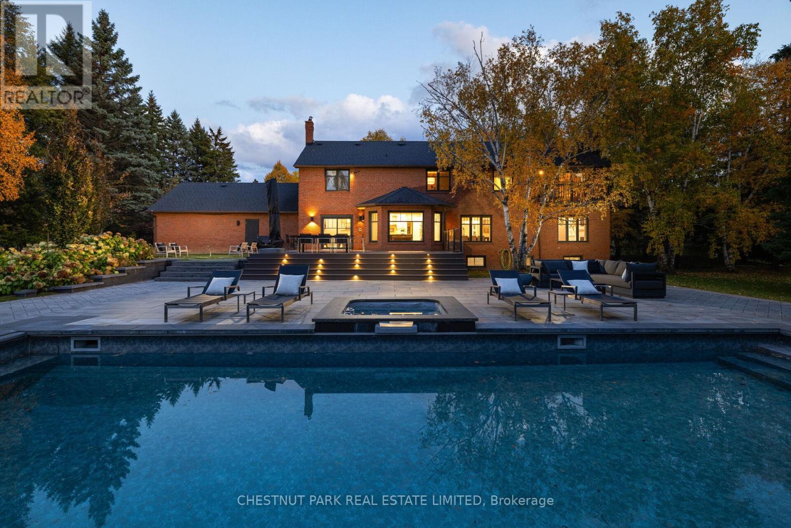 Discover the perfect balance of sophistication, comfort & lifestyle at 20 Fenyrose Cres, an exquisite estate home located in Vaughan's most exclusive neighbourhood: Pinewood Estates. Nestled on a quiet cul-de-sac facing a serene park just minutes from the renowned National Golf Club, this property offers unmatched elegance on 1.43 acres of beautifully landscaped grounds. With 5,000+ sq ft of total living space, this home is designed for both refined living & effortless entertaining. Step into a grand foyer filled with natural light. The elegant living room features hardwood floors, custom cabinetry & a gas fireplace, flowing seamlessly into the formal dining room with breathtaking backyard views. A chef-inspired kitchen anchors the main floor, boasting custom cabinetry, granite counters, tiled backsplash & premium appliances. A generous centre island & breakfast bar open to a cozy family room with a fireplace & walk-out to a west-facing backyard oasis. Also on the main: a private home office, powder room, laundry room, & access to the oversized 3-car garage + 6 driveway spaces. The 2nd floor features 4 spacious bedrooms & 2 full bathrooms, including a serene primary suite with a sitting area, custom walk-in closet & a luxurious 6-piece ensuite with a standalone Jacuzzi tub & glass shower. The fully finished lower level offers a large rec room with built-in cabinetry, multiple seating areas, wet bar/kitchenette with breakfast bar, an additional dining area, 2-piece bath & a home gym - perfect for entertaining or relaxing. Enjoy resort-style living in your private backyard oasis, complete with a new saltwater pool, hot tub, multiple seating areas & lush greenery - ideal for hosting or unwinding in complete privacy. With a stately brick exterior, grand portico entrance & professionally landscaped grounds, this residence epitomizes timeless luxury. A rare opportunity to own in the most prestigious pocket of Pinewood Estates, where privacy, elegance, and community meet. (id:64974)