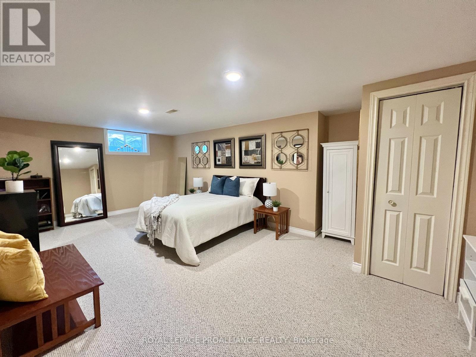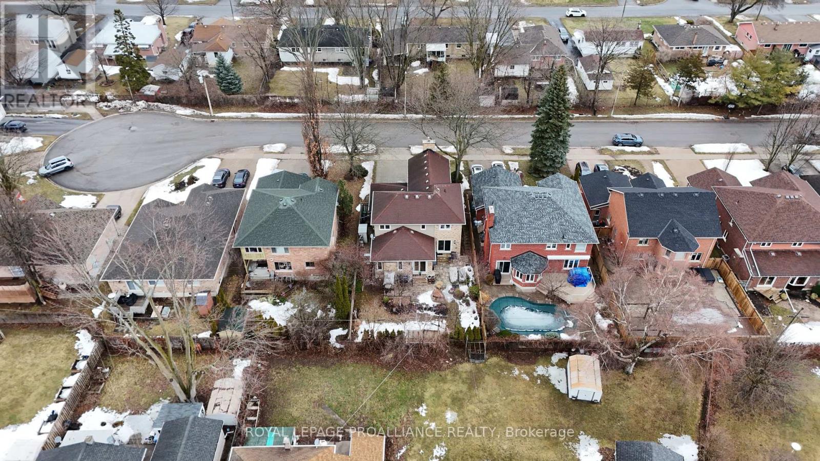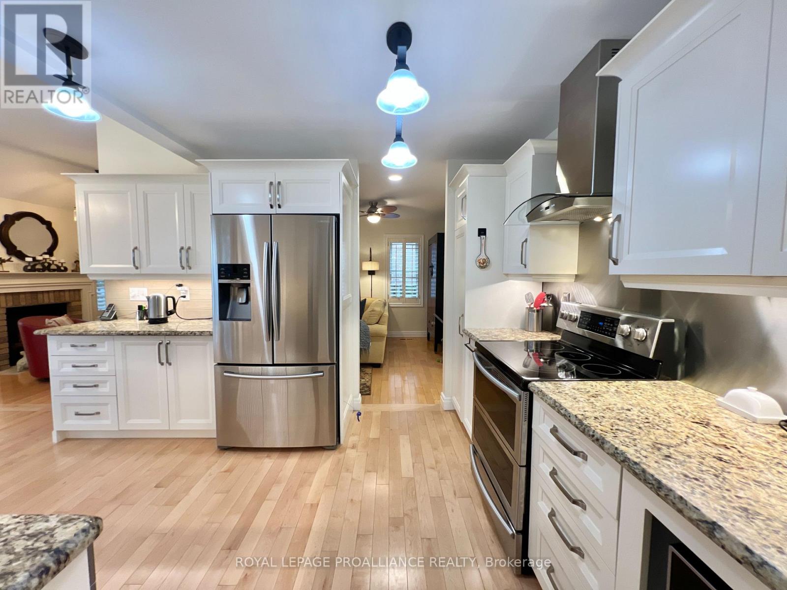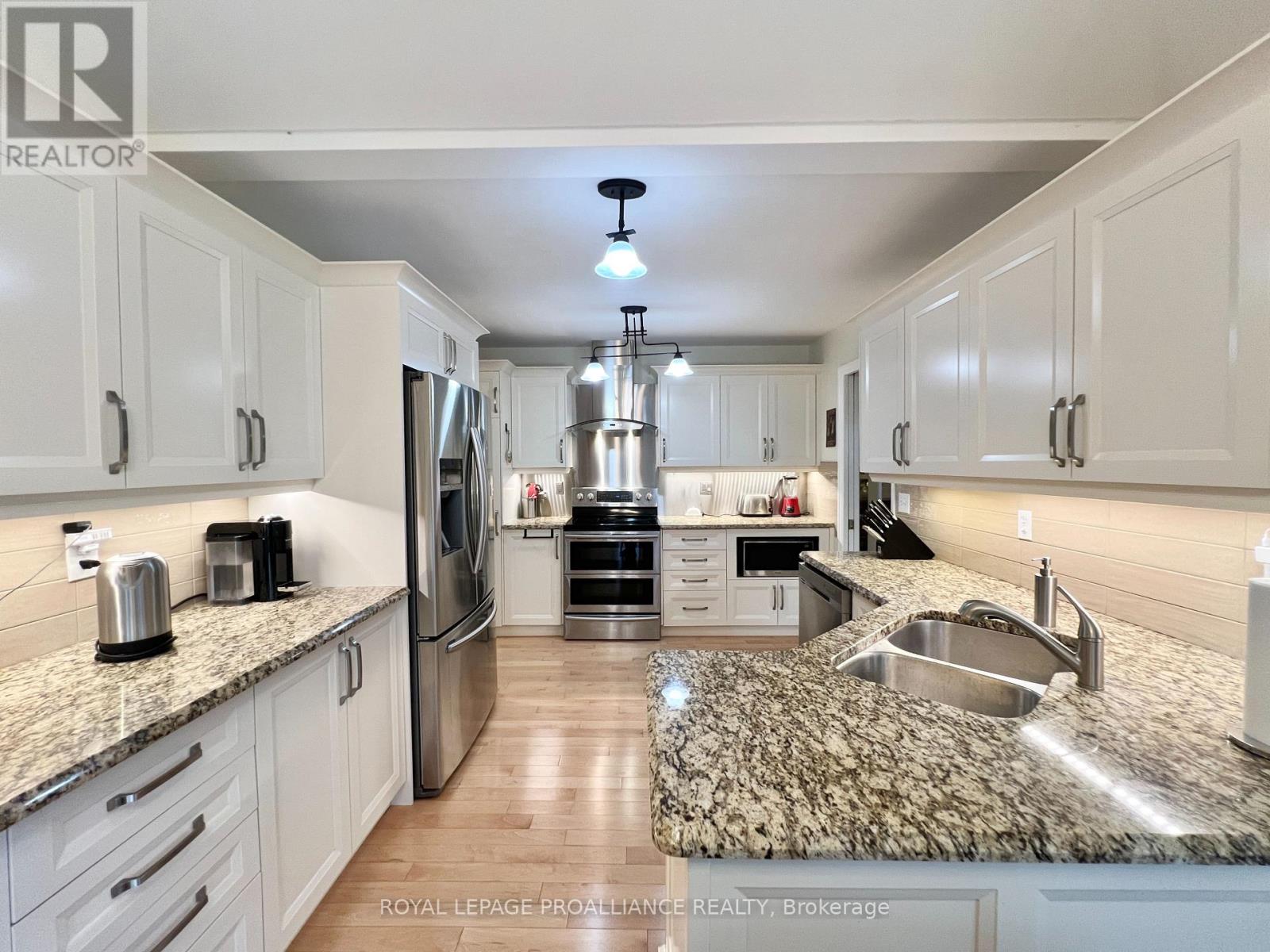 Putting the Georgian in Georgian Crt, this stately brick home showcases unique yet classic architecture. Offering over 2,500 sq ft plus a finished basement, the home includes 4 bedrooms and 4 bathrooms, with large, light-filled rooms throughout. Located on a quiet, tree-lined cul-de-sac of just 15 homes in one of Belleville's most desirable east end neighbourhoods, this home is within walking distance to groceries, the hospital and waterfront trails. Pride of ownership is evident throughout, with thoughtful efficiency upgrades including newer windows and doors, a furnace and heat pump installed in 2023, and soffit, fascia and eavestrough with leaf guards all updated within the last five years. Step inside to a welcoming foyer leading to a sunken formal living room and an elegant dining room, each finished with rich solid oak flooring. The kitchen offers an ideal work triangle and opens seamlessly to the breakfast area and family room, creating a warm gathering space. Gas fireplaces in both the living and family rooms add comfort and charm. The main level is completed with a convenient laundry room and 2-piece bath. Six-foot patio doors from the dining and family rooms lead directly to the patio and backyard. Upstairs, the primary suite is generously sized with room for a king bed and features his and hers walk-in closets. The ensuite includes a double shower with dual rain heads, stylish soaker tub, heated towel bar and double vanity. Three additional bedrooms-one currently used as a home office-are all spacious enough for queen beds and are served by a bright family bathroom. The finished basement offers a large recreation area with broadloom throughout-ideal for a bedroom, office, music room, or games area with a pool or ping-pong table. A bright workshop adds extra versatility. Landscaped front and rear gardens with an in-ground sprinkler system lead to a private patio with separate lounging and dining areas, plus a natural gas hookup for grilling. (id:64974)