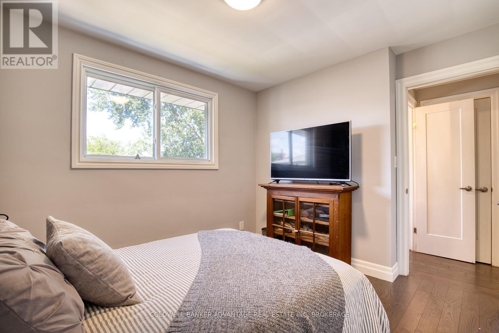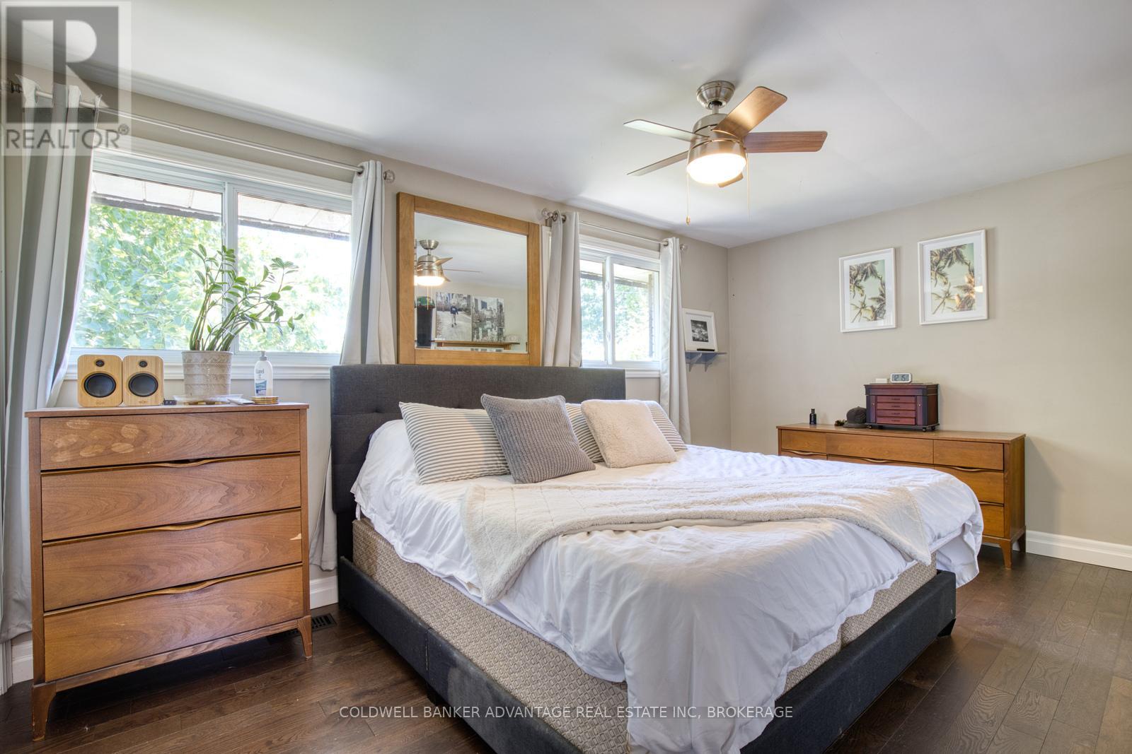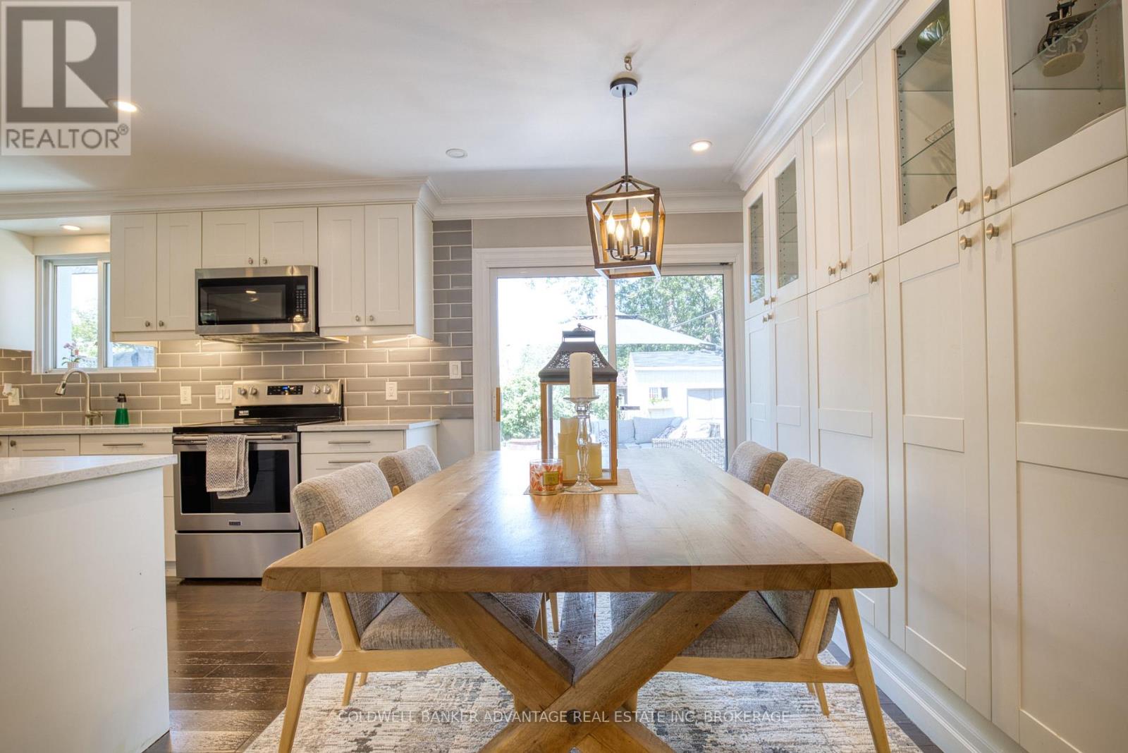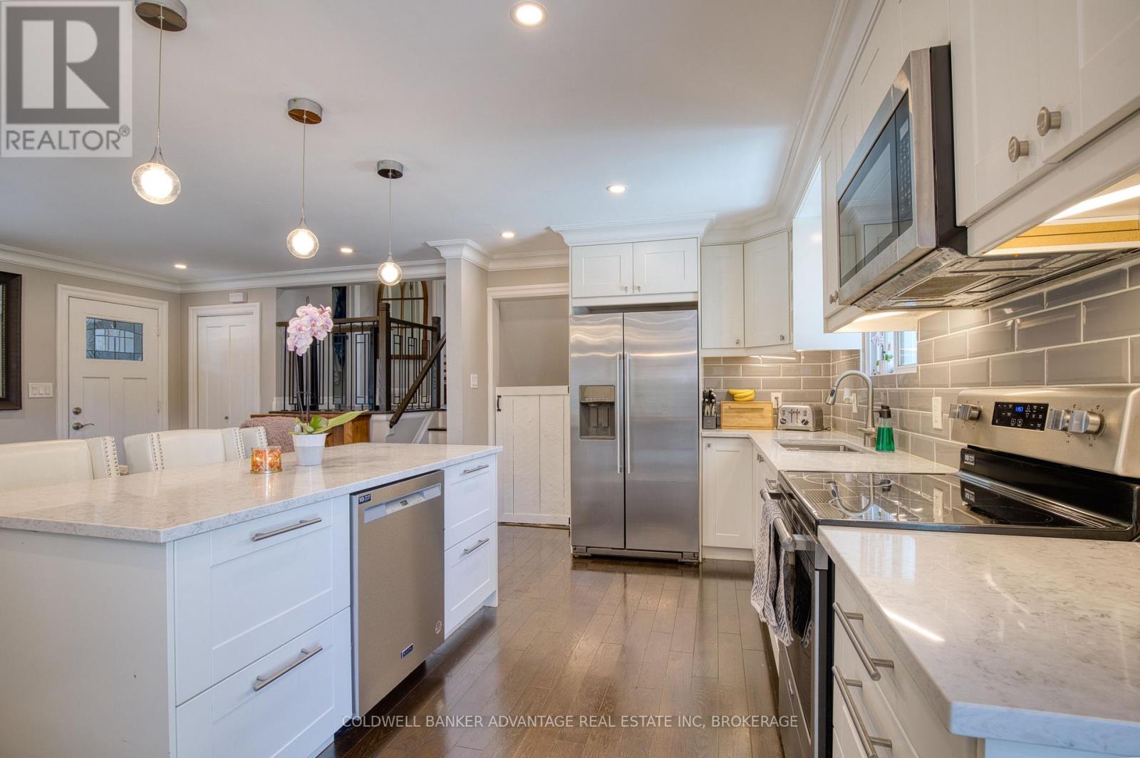 A brand new roof installed in December 2025, complete with a 25-year transferable warranty on both materials and workmanship, gives buyers outstanding peace of mind. Walking distance to the Lake, this fully finished 3 bedroom, 2 bath, 3 level side split has been extensively updated and is truly move-in ready. Sitting on a 60 x 112 ft landscaped lot in one of the area's most sought-after lakeside neighbourhoods, it offers the perfect blend of modern style and family-focused comfort. The open-concept main floor showcases a newly renovated eat-in kitchen with quartz countertops, a centre island with breakfast bar, and custom cabinetry. Garden doors from the dining area extend your living space outdoors to a private patio, ideal for seamless indoor/outdoor entertaining. Rich 3/4" oak hardwood flooring carries through the main and upper levels, leading to three generous bedrooms and a beautifully upgraded 4-piece bathroom. The lower level provides exceptional versatility with a cozy family room featuring a wood burning fireplace, an updated 3-piece bath, a rec room, laundry area, and a separate side entrance. A large crawl space ensures plenty of storage.Outside, the fully fenced backyard creates a true at home retreat with a hot tub and above ground pool, ready for summer enjoyment and weekend relaxation. Recent updates include: roof (2025), concrete driveway & patio (2024), siding/eaves/downspouts (2024), furnace & tankless water heater (2019), dishwasher (2024), hot tub & pool (2020), and sand filter (2025). A standout turnkey opportunity in an established lakeside community. (id:64974)