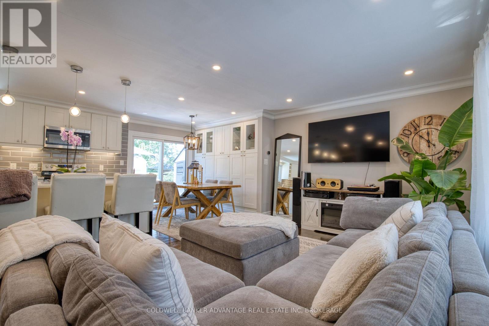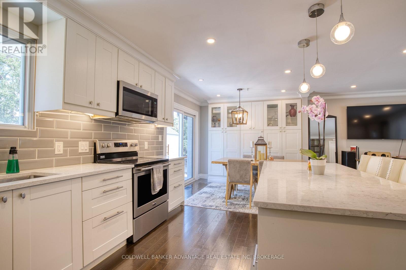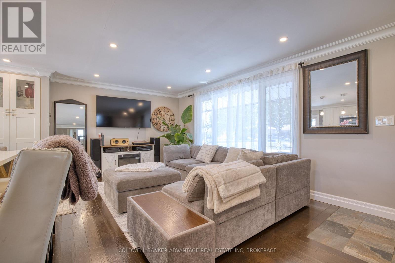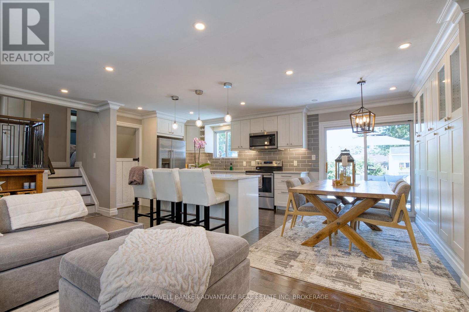 A brand new roof installed in December 2025, complete with a 25-year transferable warranty on both materials and workmanship, gives buyers outstanding peace of mind. Walking distance to the Lake, this fully finished 3 bedroom, 2 bath, 3 level side split has been extensively updated and is truly move-in ready. Sitting on a 60 x 112 ft landscaped lot in one of the area's most sought-after lakeside neighbourhoods, it offers the perfect blend of modern style and family-focused comfort. The open-concept main floor showcases a newly renovated eat-in kitchen with quartz countertops, a centre island with breakfast bar, and custom cabinetry. Garden doors from the dining area extend your living space outdoors to a private patio, ideal for seamless indoor/outdoor entertaining. Rich 3/4" oak hardwood flooring carries through the main and upper levels, leading to three generous bedrooms and a beautifully upgraded 4-piece bathroom. The lower level provides exceptional versatility with a cozy family room featuring a wood burning fireplace, an updated 3-piece bath, a rec room, laundry area, and a separate side entrance. A large crawl space ensures plenty of storage.Outside, the fully fenced backyard creates a true at home retreat with a hot tub and above ground pool, ready for summer enjoyment and weekend relaxation. Recent updates include: roof (2025), concrete driveway & patio (2024), siding/eaves/downspouts (2024), furnace & tankless water heater (2019), dishwasher (2024), hot tub & pool (2020), and sand filter (2025). A standout turnkey opportunity in an established lakeside community. (id:64974)