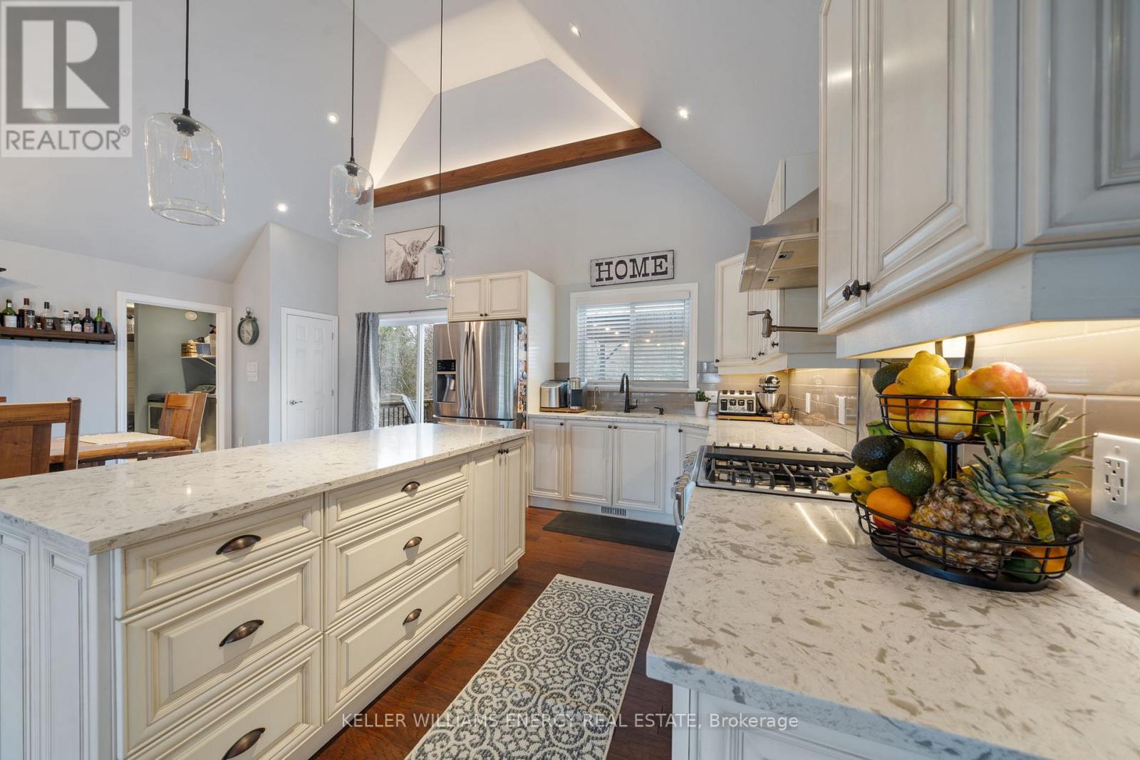 Discover this incredible custom-built 3 bedroom, 2 bathroom home, offering a perfect blend of luxury and comfort just minutes from scenic Sturgeon Lake and 0.5km from the boat launch. This upgraded home features a stunning 19-foot vaulted ceiling in the main living area, creating a grand, open atmosphere, enhanced by a cozy gas fireplace. The kitchen boasts quartz counters and breakfast bar next to the formal dining area. Step out onto the expansive 45'x12' rear deck - perfect for entertaining or relaxing with a cup of morning coffee. Enjoy the convenience of main floor laundry and direct access to the oversized, double insulated attached garage. The finished lower level provides a den and versatile rec space complete with an electric fireplace - ideal for extended family or guests. This move-in ready home combines comfort, style and a fantastic location surrounded by nature! **Roof, furnace, AC all approx 2015, septic 2023, HWT is owned (id:64974)