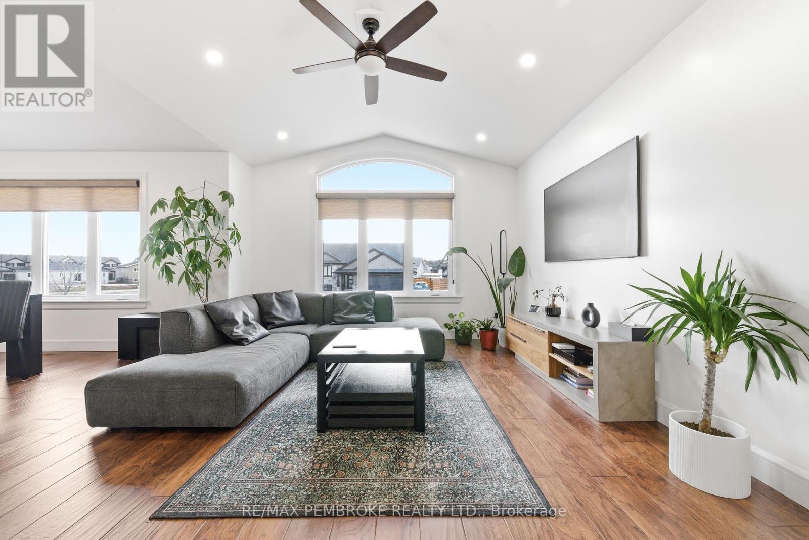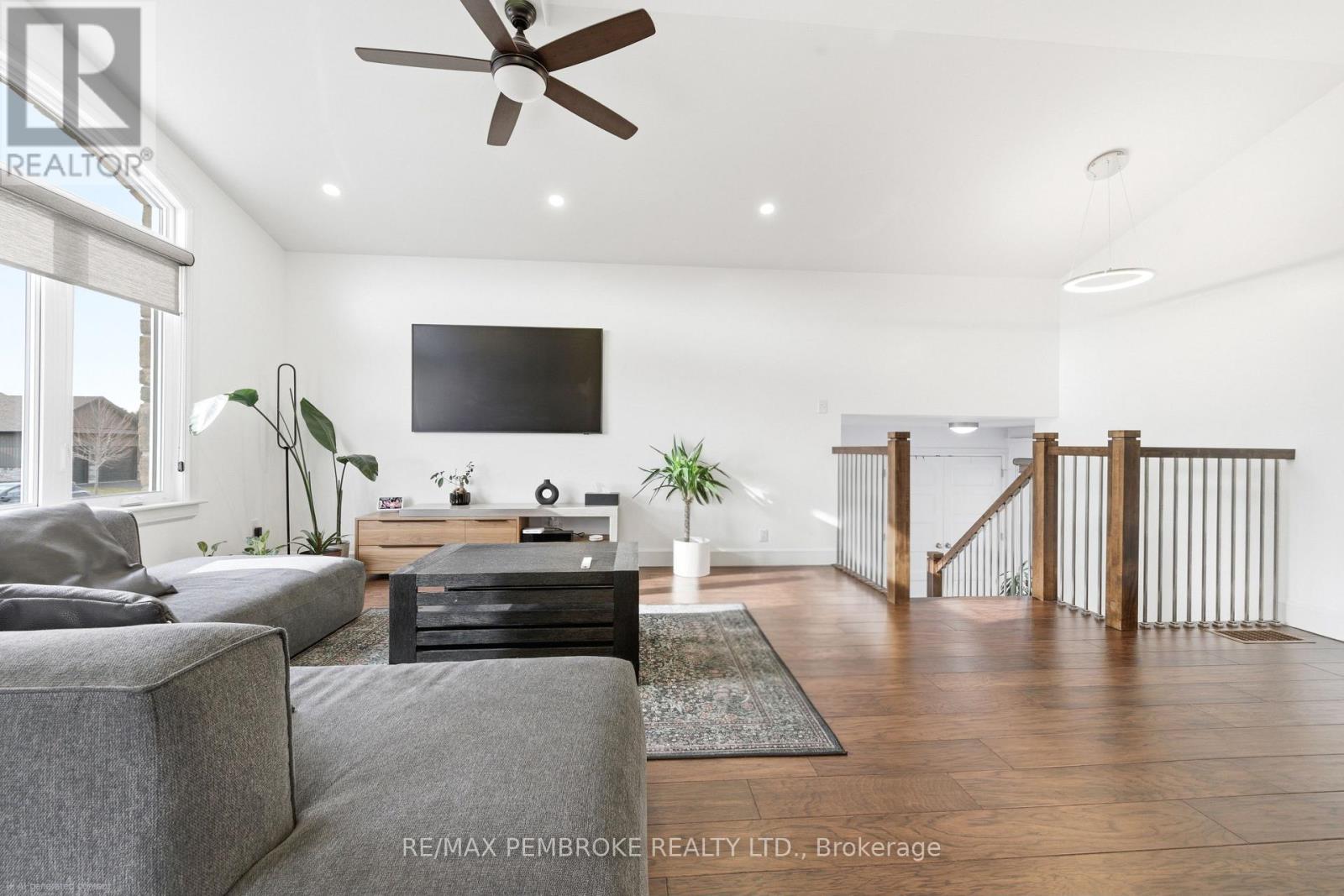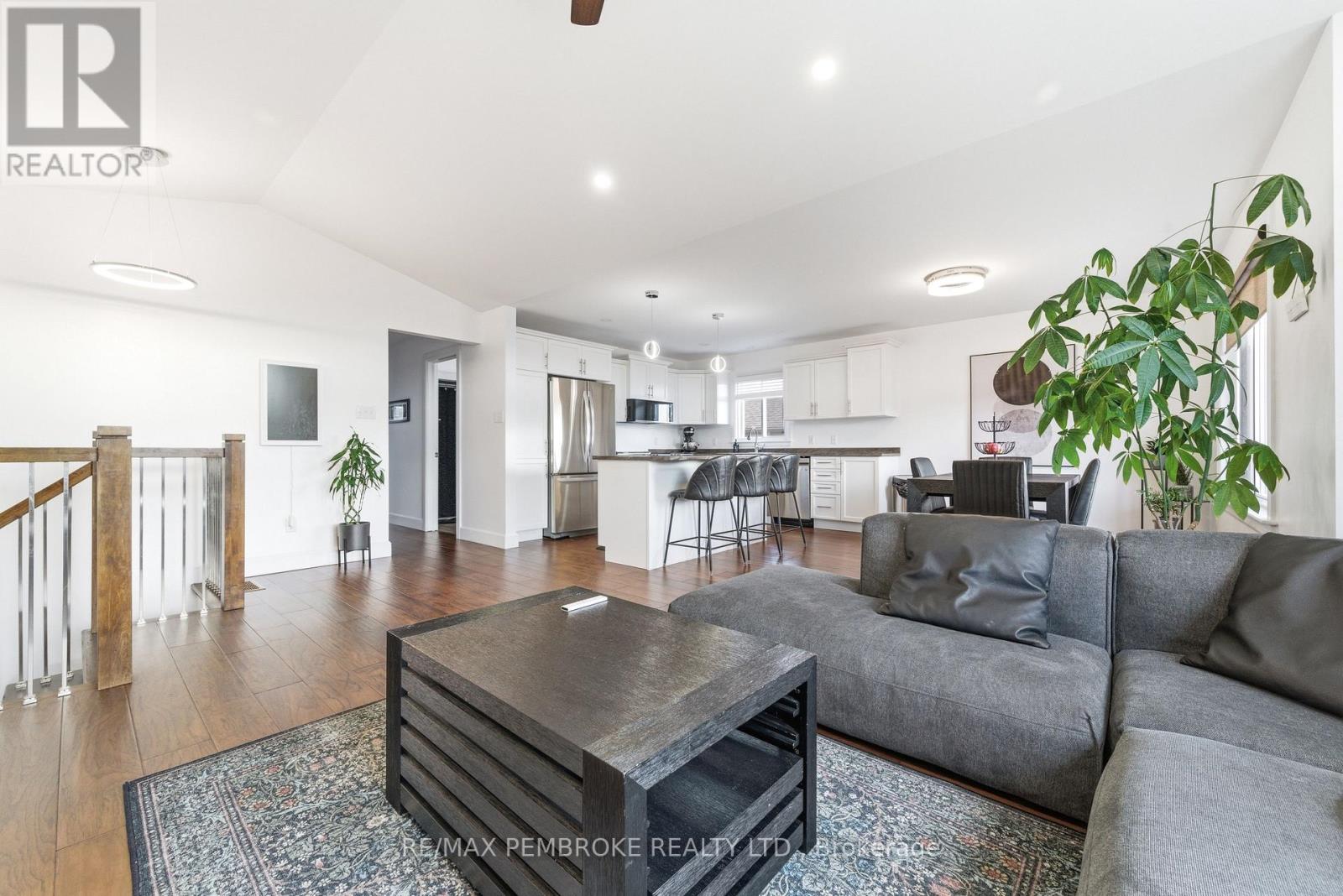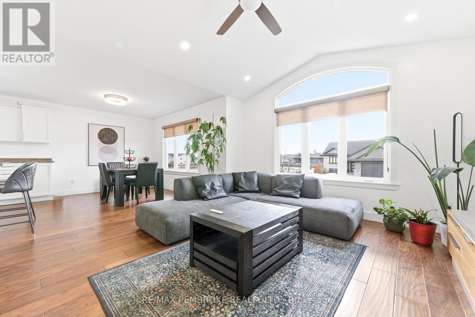 Welcome to this beautifully maintained four-bedroom, three-bathroom home located in one of Petawawa's most sought-after neighborhoods. Step into a spacious tiled foyer with convenient access to the attached double car garage and a patio door leading directly to the backyard. A few steps up, the main living area offers a bright, open-concept layout featuring a modern kitchen with island, ample storage, and large front windows that fill the space with natural light. The main level includes three bedrooms, a full bathroom, and a private ensuite off the primary bedroom. The fully finished lower level provides exceptional additional living space, including a large carpeted family room, fourth bedroom, den/office, another full bathroom, and bonus under-stairs storage in addition to the furnace/utility room. Modern finishes throughout highlight the pride of ownership. The backyard has an added patio, gazebo, shed, and neighborhood park across the street. Great opportunity for families looking for space, comfort, and a prime location that's minutes away from all the best amenities. 24 hour irrevocable on all offers (id:64974)