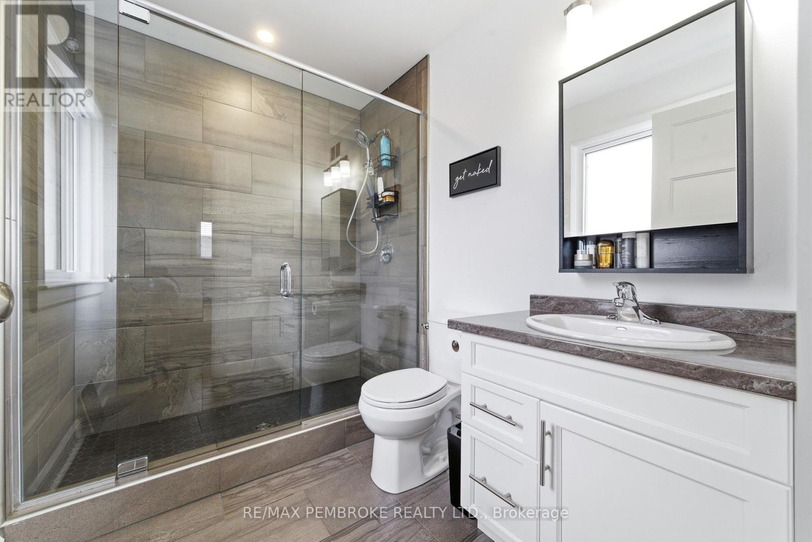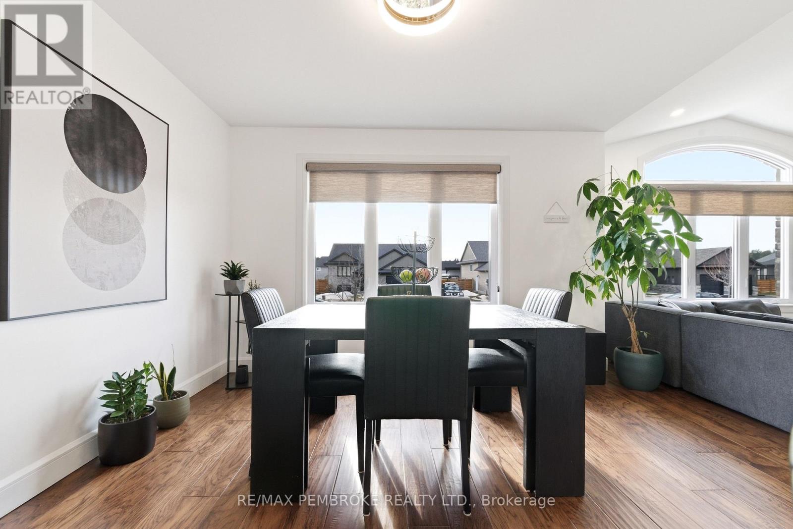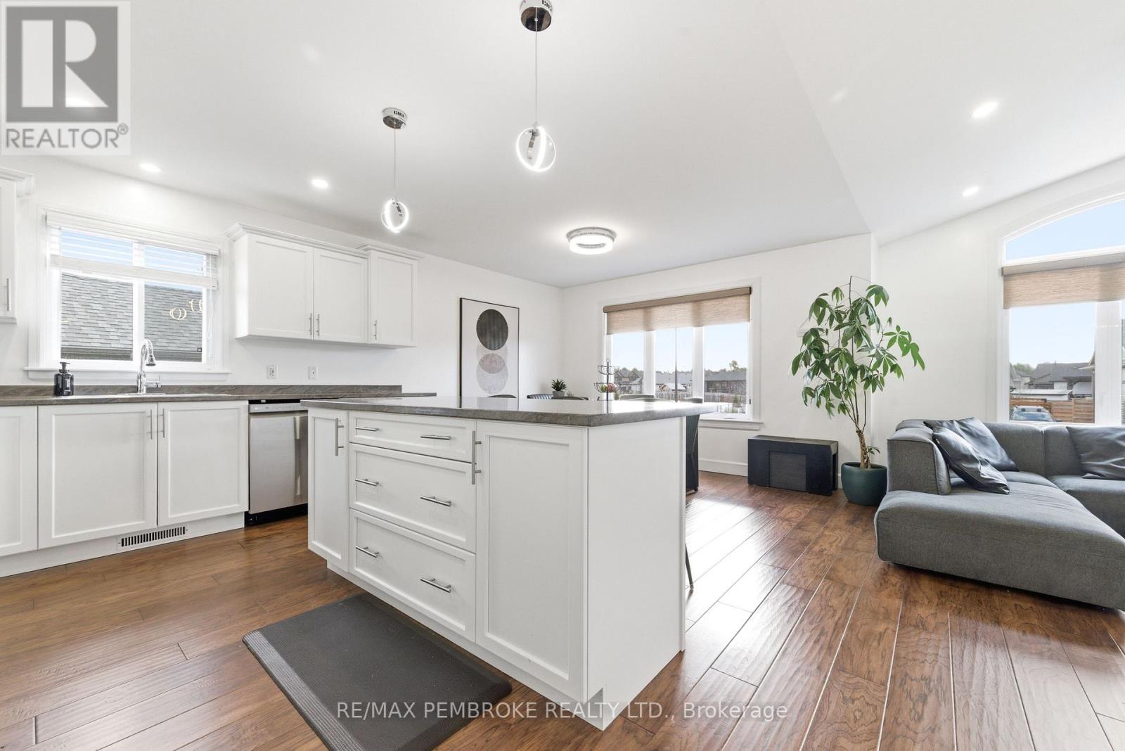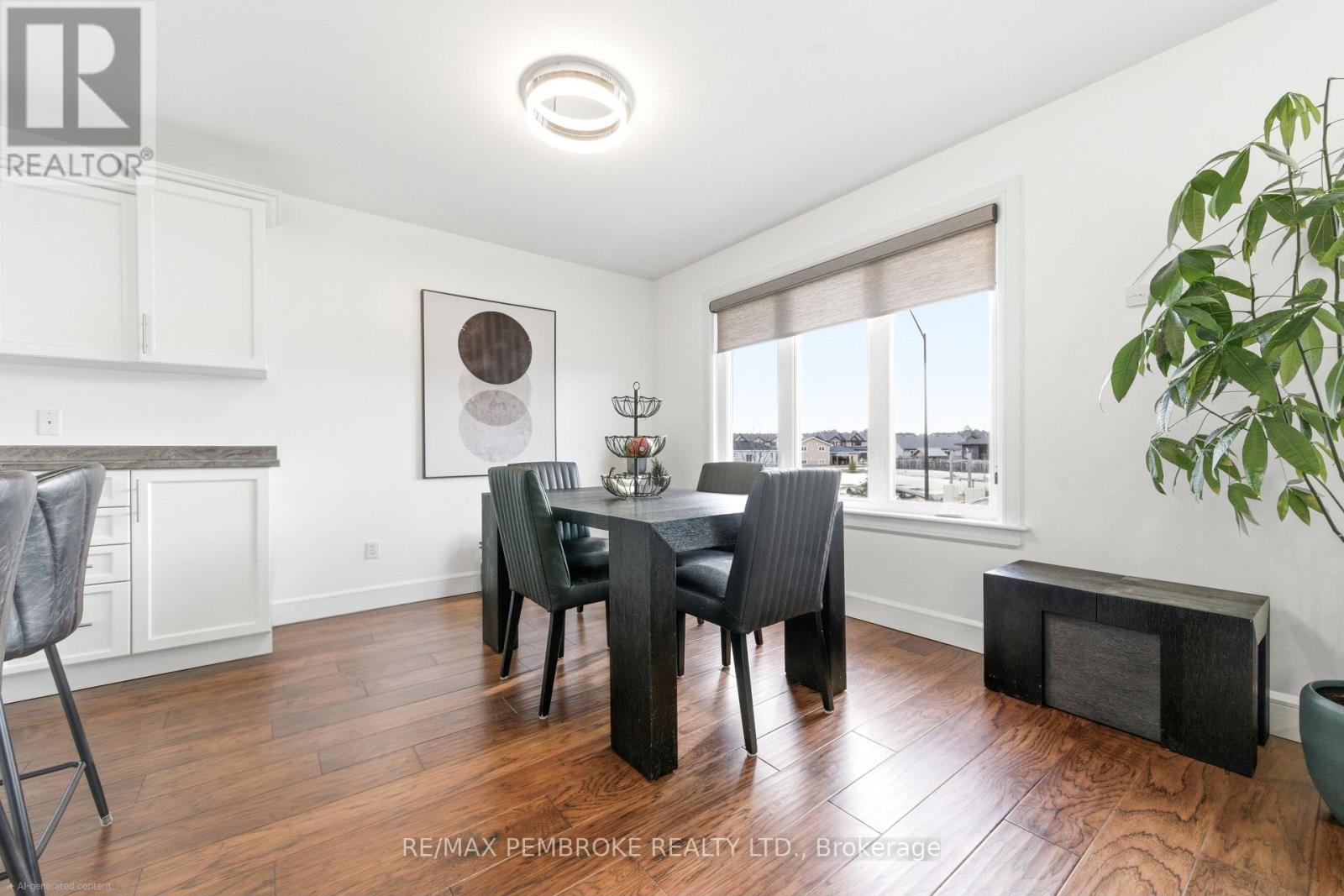 Welcome to this beautifully maintained four-bedroom, three-bathroom home located in one of Petawawa's most sought-after neighborhoods. Step into a spacious tiled foyer with convenient access to the attached double car garage and a patio door leading directly to the backyard. A few steps up, the main living area offers a bright, open-concept layout featuring a modern kitchen with island, ample storage, and large front windows that fill the space with natural light. The main level includes three bedrooms, a full bathroom, and a private ensuite off the primary bedroom. The fully finished lower level provides exceptional additional living space, including a large carpeted family room, fourth bedroom, den/office, another full bathroom, and bonus under-stairs storage in addition to the furnace/utility room. Modern finishes throughout highlight the pride of ownership. The backyard has an added patio, gazebo, shed, and neighborhood park across the street. Great opportunity for families looking for space, comfort, and a prime location that's minutes away from all the best amenities. 24 hour irrevocable on all offers (id:64974)