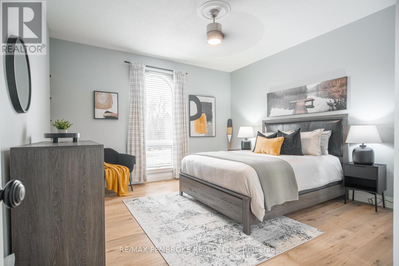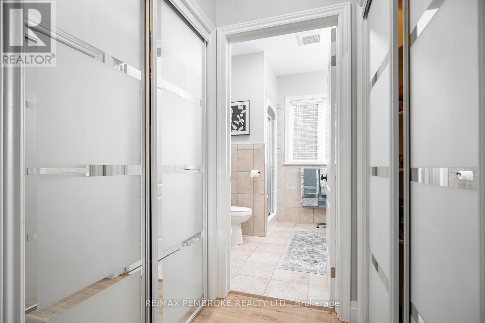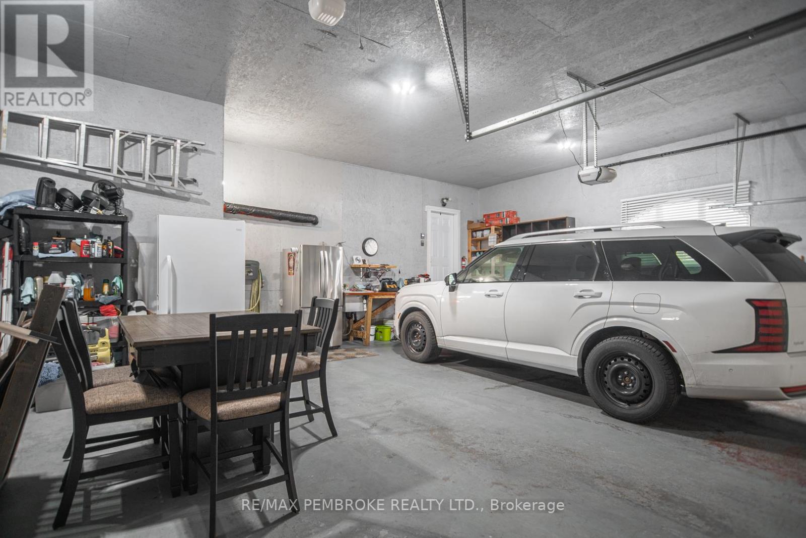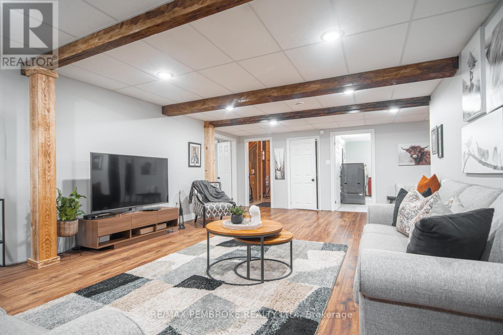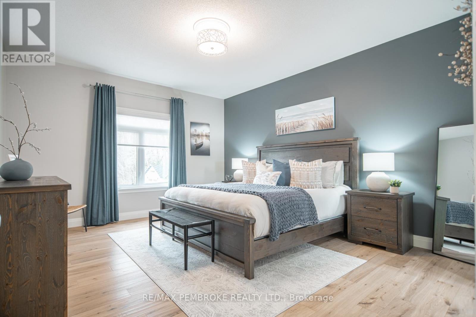 Stunning executive 3+1 bedroom, 3 bathroom home set in a prestigious neighbourhood ideally located between Petawawa and Pembroke, offering breathtaking views of the Ottawa River and deeded water access-perfect for kayaking, paddleboarding, and seadooing. This stately, meticulously maintained home boasts impressive high ceilings. The spectacular living room offers a gas fireplace and vaulted ceiling that creates a warm and inviting focal point. The bright open kitchen features remote-controlled blinds (also in living room) quartz counters, all appliances and flows seamlessly into the main living space-ideal for both everyday living and entertaining.The spacious primary suite offers a private retreat complete with a walk through closet and ensuite bath. The main bathroom has been tastefully updated and includes a jet tub/shower combo.The finished lower level expands your living space with a fourth bedroom, additional bathroom, large family room, theatre room and a dedicated gym area-perfect for growing families, guests, or multi-functional living. Car enthusiasts and hobbyists will appreciate the attached insulated triple car garage with hot and cold water, along with a convenient double carport. Step outside to a large back deck or hang out in the gazebo, perfect for relaxing or hosting, surrounded by a beautifully maintained yard featuring a patio and full irrigation system installed in 2024.This immaculate home has been lovingly cared for and extensively updated, including shingles on the house (2021), carport shingles (2025), water softener (2022), hot water tank (2022), duct cleaning (2022), well pump (2024), gas furnace (2024), and updated main floor window panes (2022), along with new lighting and fresh paint throughout. A rare opportunity to own a turn-key home with upscale features, exceptional maintenance, and deeded access to the Ottawa River in one of the area's most sought-after communities. (id:64974)