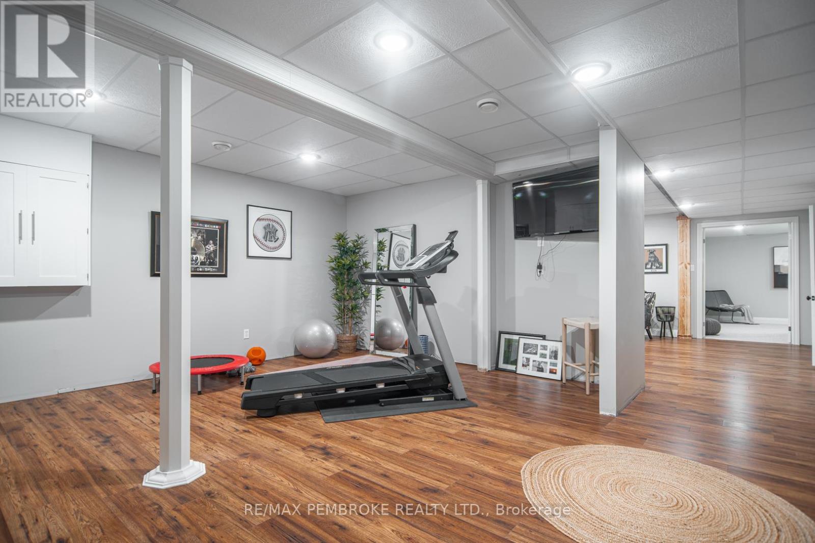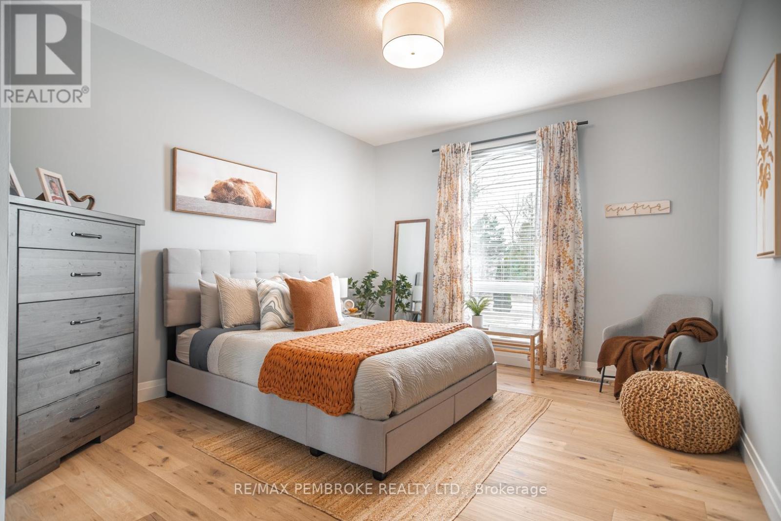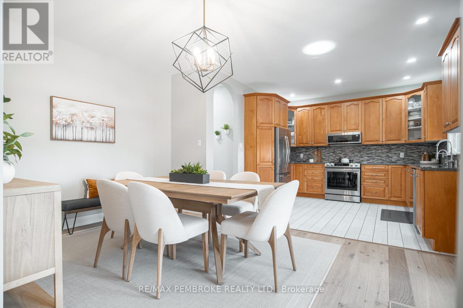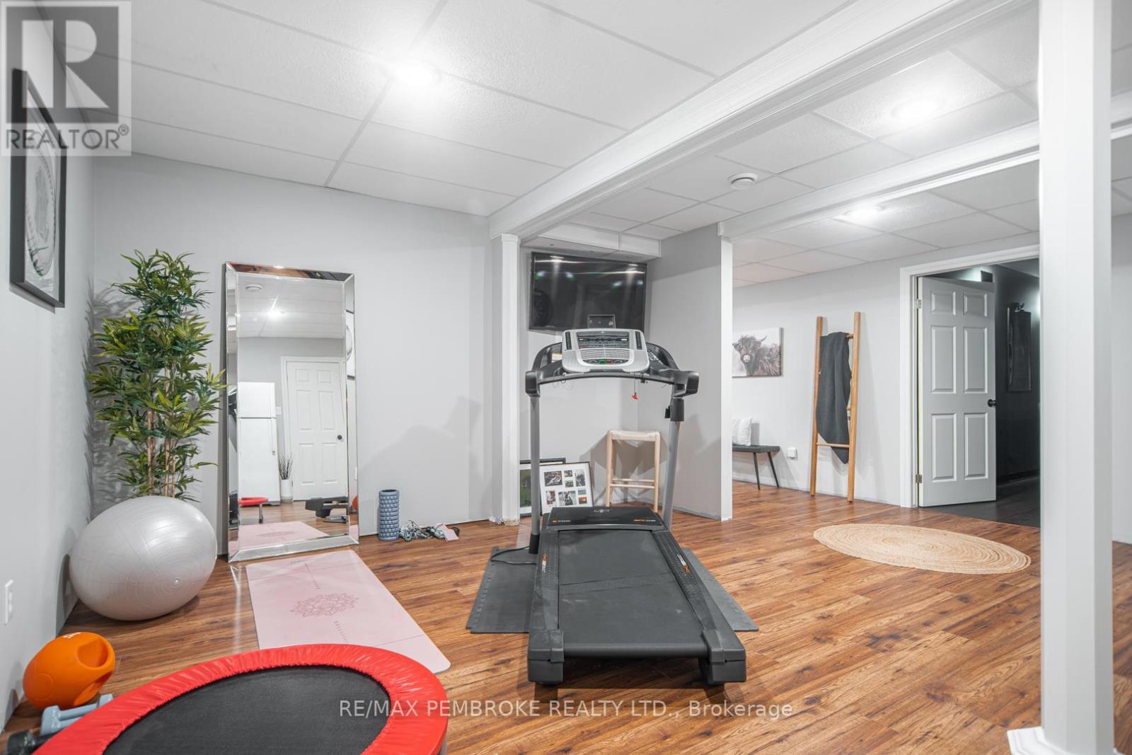 Stunning executive 3+1 bedroom, 3 bathroom home set in a prestigious neighbourhood ideally located between Petawawa and Pembroke, offering breathtaking views of the Ottawa River and deeded water access-perfect for kayaking, paddleboarding, and seadooing. This stately, meticulously maintained home boasts impressive high ceilings. The spectacular living room offers a gas fireplace and vaulted ceiling that creates a warm and inviting focal point. The bright open kitchen features remote-controlled blinds (also in living room) quartz counters, all appliances and flows seamlessly into the main living space-ideal for both everyday living and entertaining.The spacious primary suite offers a private retreat complete with a walk through closet and ensuite bath. The main bathroom has been tastefully updated and includes a jet tub/shower combo.The finished lower level expands your living space with a fourth bedroom, additional bathroom, large family room, theatre room and a dedicated gym area-perfect for growing families, guests, or multi-functional living. Car enthusiasts and hobbyists will appreciate the attached insulated triple car garage with hot and cold water, along with a convenient double carport. Step outside to a large back deck or hang out in the gazebo, perfect for relaxing or hosting, surrounded by a beautifully maintained yard featuring a patio and full irrigation system installed in 2024.This immaculate home has been lovingly cared for and extensively updated, including shingles on the house (2021), carport shingles (2025), water softener (2022), hot water tank (2022), duct cleaning (2022), well pump (2024), gas furnace (2024), and updated main floor window panes (2022), along with new lighting and fresh paint throughout. A rare opportunity to own a turn-key home with upscale features, exceptional maintenance, and deeded access to the Ottawa River in one of the area's most sought-after communities. (id:64974)