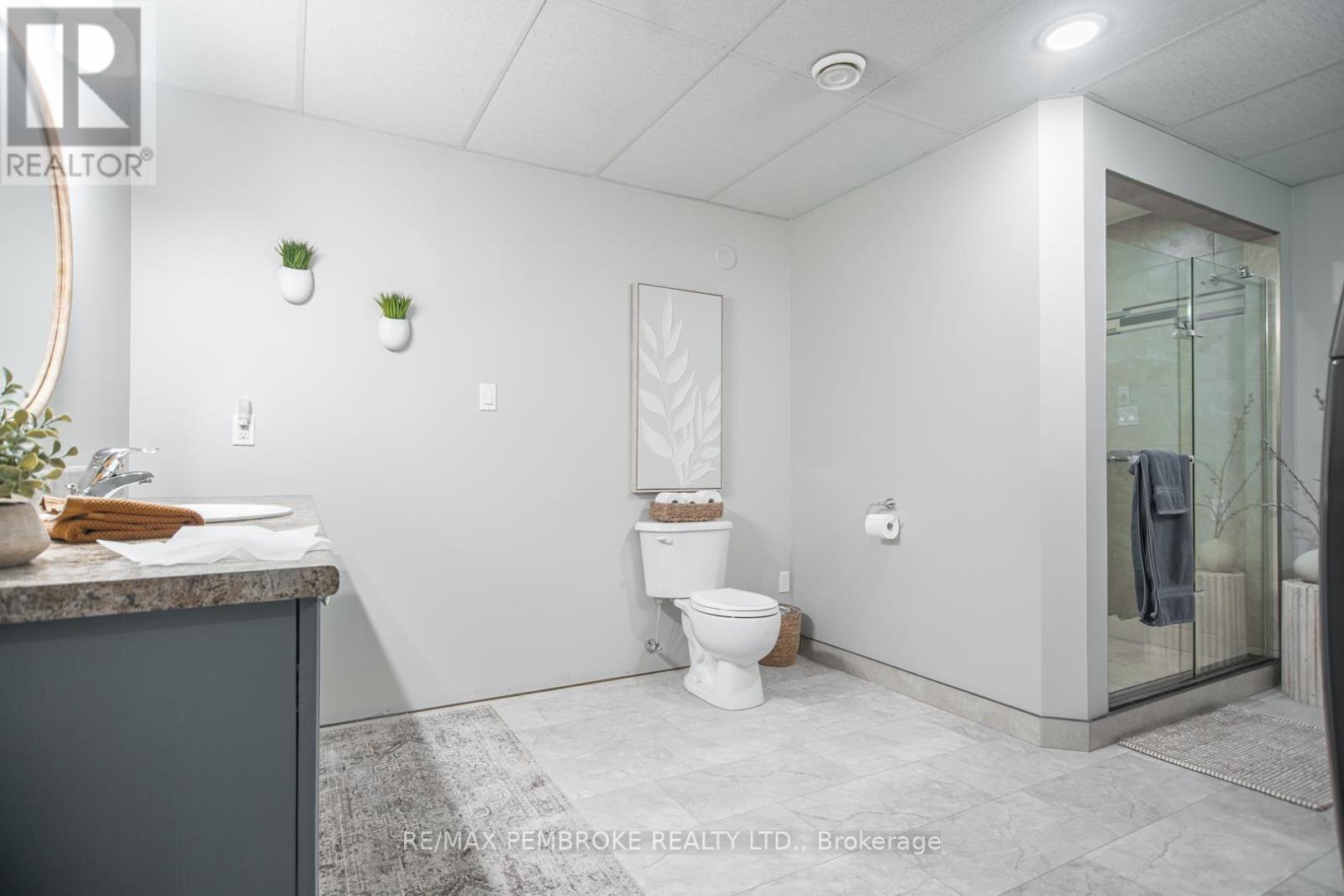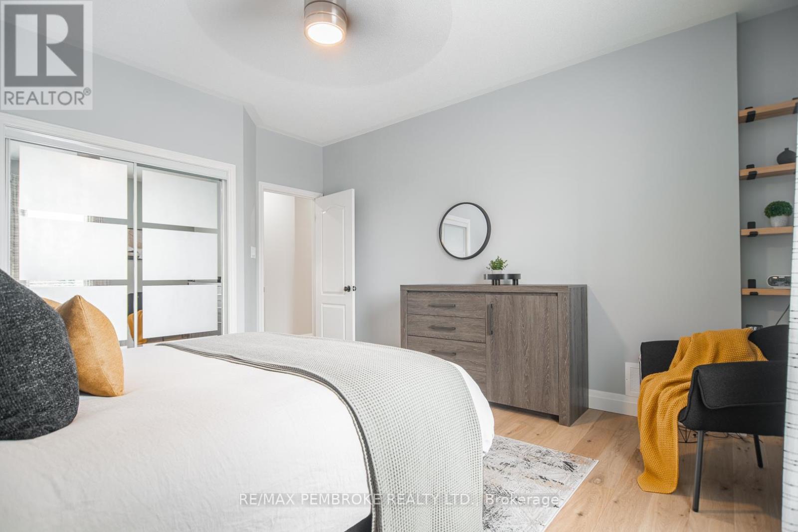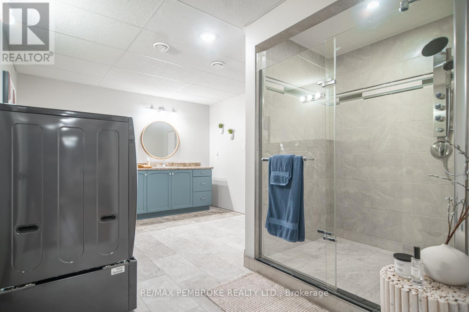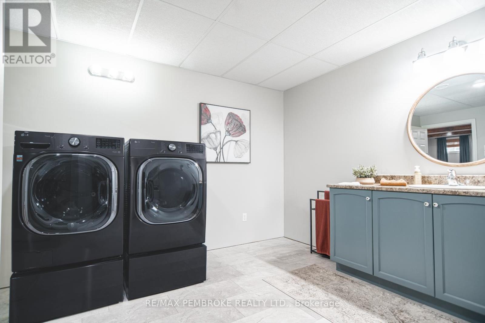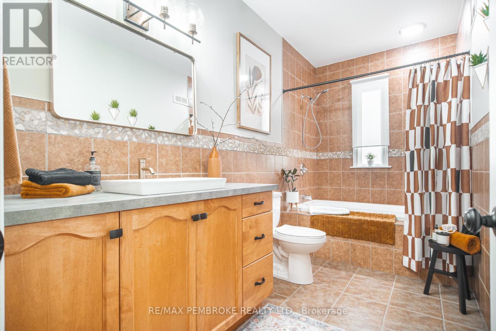 Stunning executive 3+1 bedroom, 3 bathroom home set in a prestigious neighbourhood ideally located between Petawawa and Pembroke, offering breathtaking views of the Ottawa River and deeded water access-perfect for kayaking, paddleboarding, and seadooing. This stately, meticulously maintained home boasts impressive high ceilings. The spectacular living room offers a gas fireplace and vaulted ceiling that creates a warm and inviting focal point. The bright open kitchen features remote-controlled blinds (also in living room) quartz counters, all appliances and flows seamlessly into the main living space-ideal for both everyday living and entertaining.The spacious primary suite offers a private retreat complete with a walk through closet and ensuite bath. The main bathroom has been tastefully updated and includes a jet tub/shower combo.The finished lower level expands your living space with a fourth bedroom, additional bathroom, large family room, theatre room and a dedicated gym area-perfect for growing families, guests, or multi-functional living. Car enthusiasts and hobbyists will appreciate the attached insulated triple car garage with hot and cold water, along with a convenient double carport. Step outside to a large back deck or hang out in the gazebo, perfect for relaxing or hosting, surrounded by a beautifully maintained yard featuring a patio and full irrigation system installed in 2024.This immaculate home has been lovingly cared for and extensively updated, including shingles on the house (2021), carport shingles (2025), water softener (2022), hot water tank (2022), duct cleaning (2022), well pump (2024), gas furnace (2024), and updated main floor window panes (2022), along with new lighting and fresh paint throughout. A rare opportunity to own a turn-key home with upscale features, exceptional maintenance, and deeded access to the Ottawa River in one of the area's most sought-after communities. (id:64974)