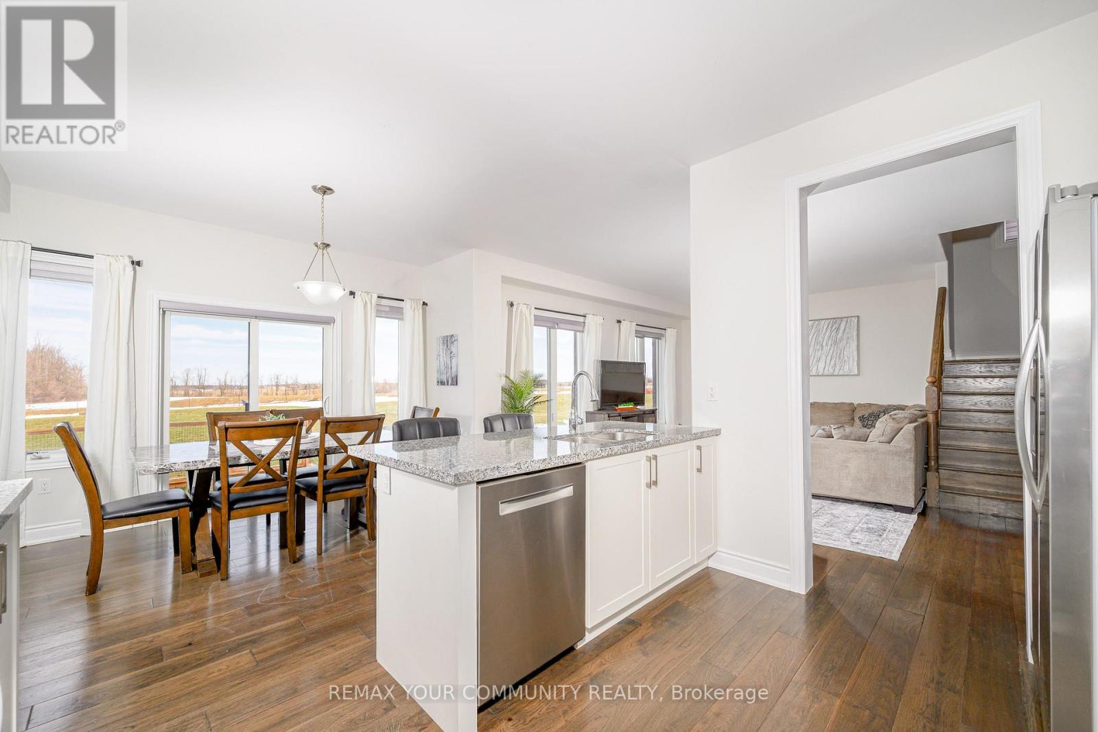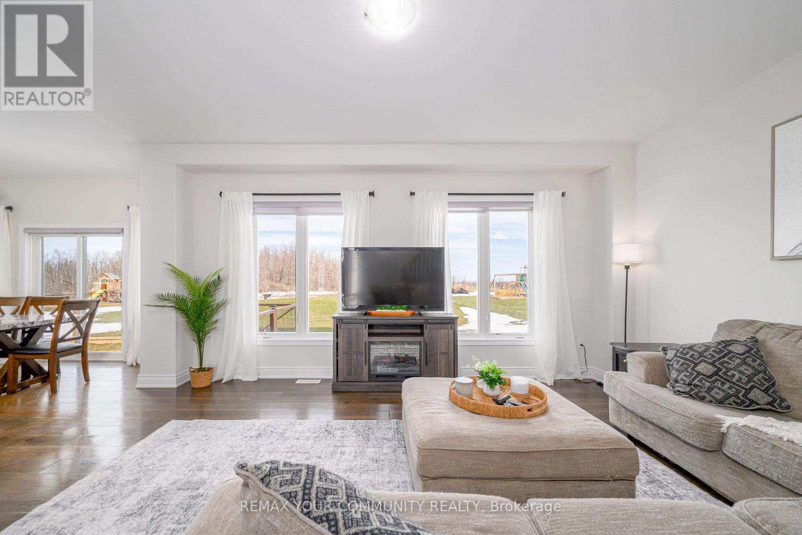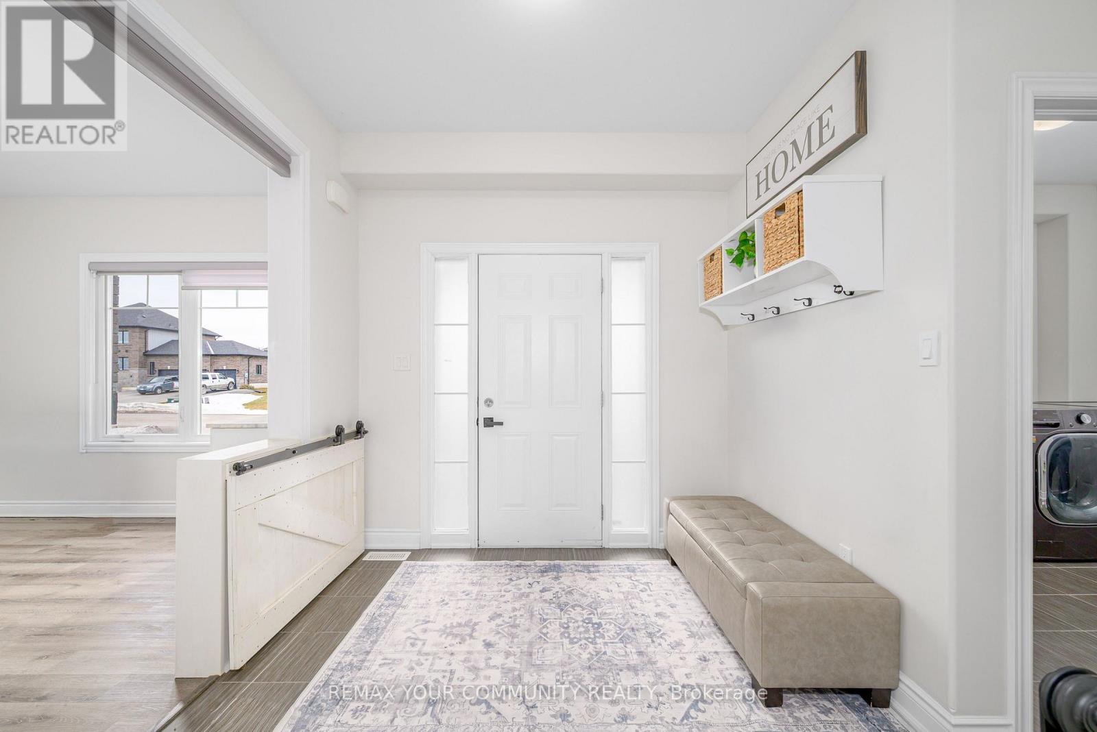 Rare (Approx)4-year-old 2-storey offering 4 bedrooms, 3 bathrooms and a 3 car garage on an impressive 88' wide lot with no homes behind for added privacy. The main floor features bright open concept living with a spacious kitchen offering generous prep space, ample cabinetry and a breakfast bar, flowing into the dining and living areas-perfect for everyday living and entertaining. Walk out from the dining area to the backyard for easy indoor-outdoor enjoyment. The main floor also includes laundry, powder room and a generous home office/den that can be closed off from the main living area, ideal for working from home. Upstairs offers a large primary bedroom with walk-in closet and 4-pc ensuite. The finished basement includes a finished room with a custom built window box to have darkness if needed, perfect for podcasting, music recording, or a private studio. The 3 car garage provides excellent space for vehicles and hobbies, with one bay that is insulated and heated (radiant floor) and mostly finished. Located in a quiet small-town community with convenient access to nearby towns and shopping. Bell Fibe available. (id:64974)