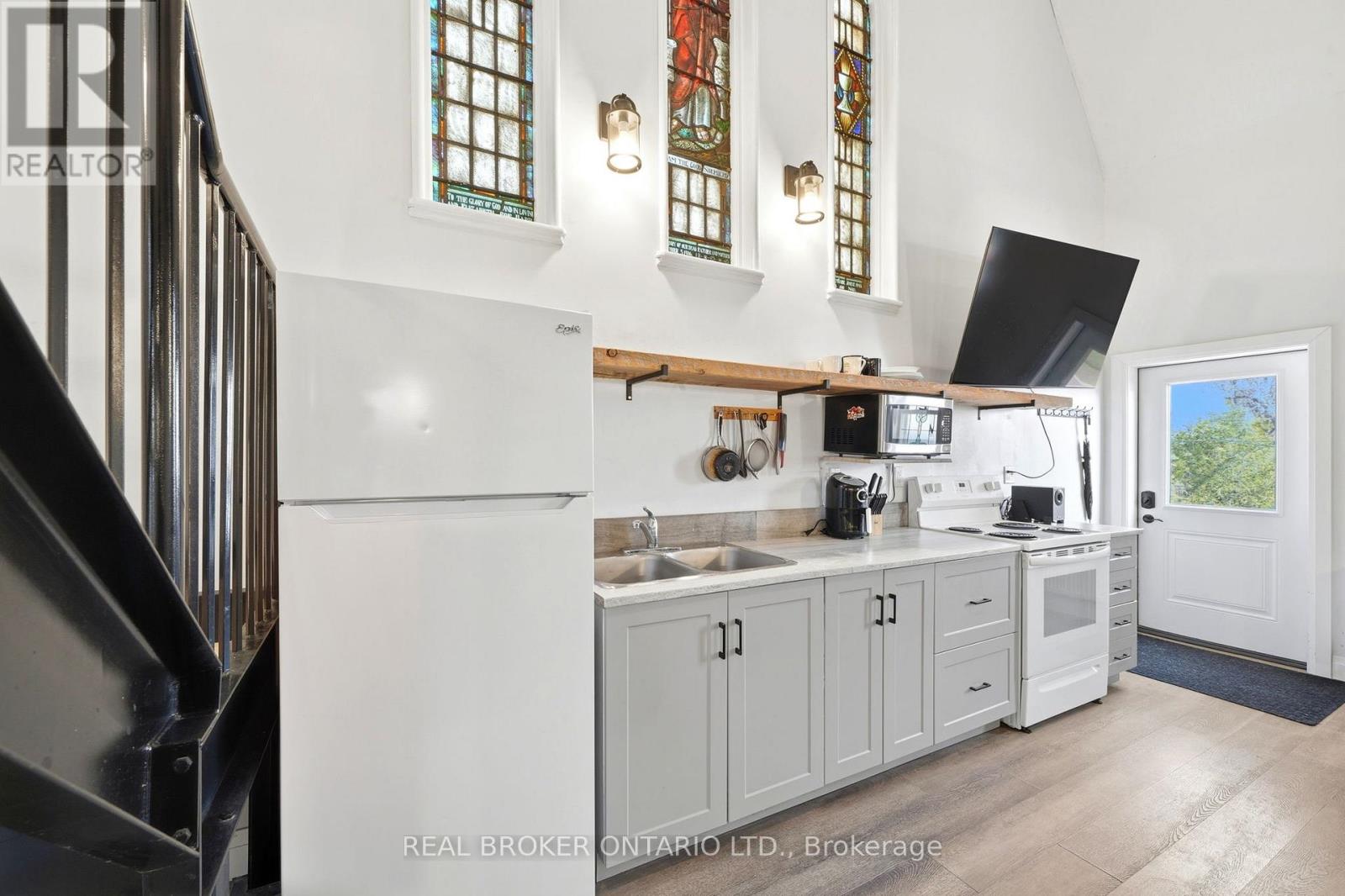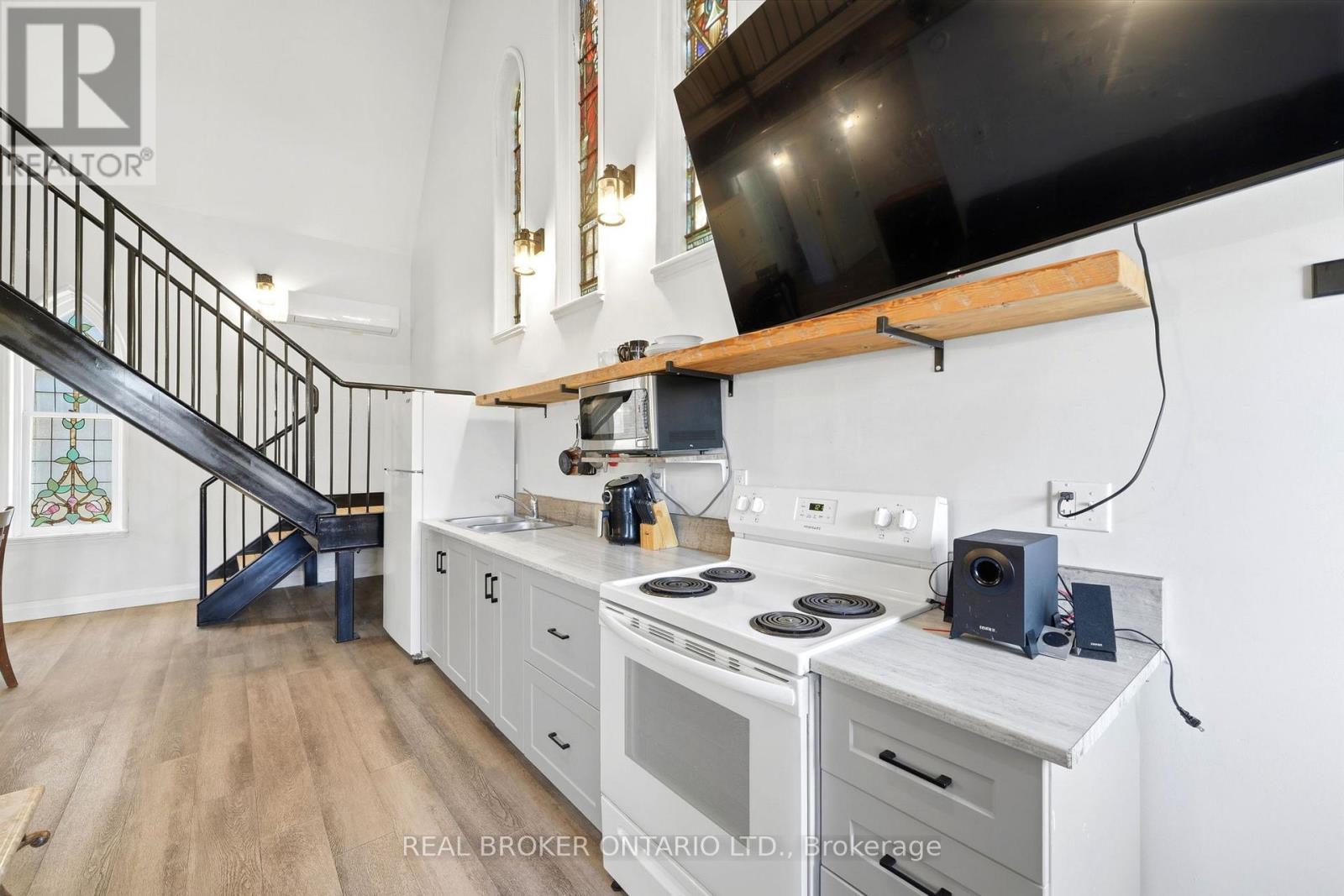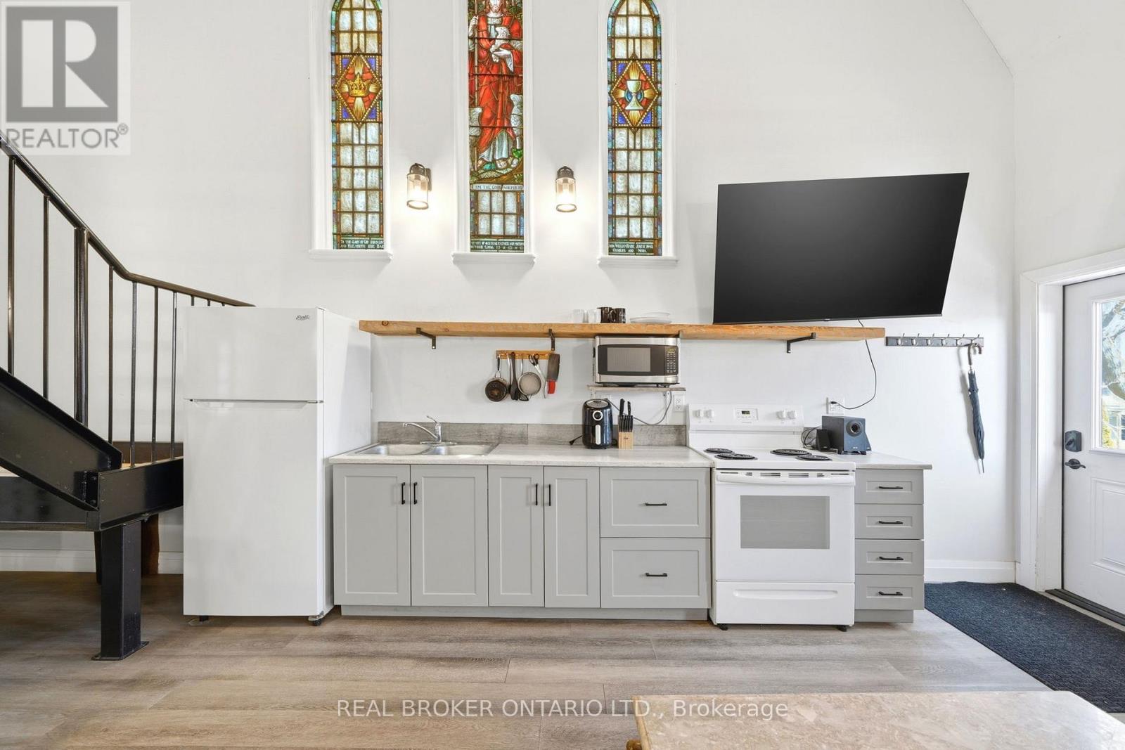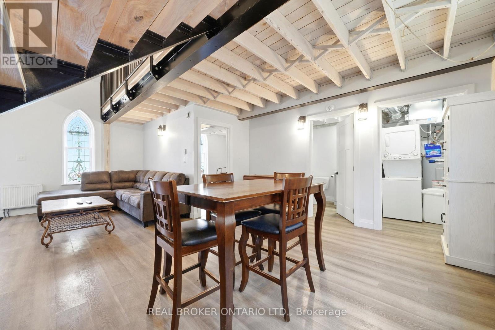 Opportunities like this are quietly rare. A fully converted 1800s red brick church in the heart of Milverton, reimagined in 2024 into a thoughtfully designed legal triplex, where soaring cathedral ceilings, original stained glass windows, and exposed timber beams now frame modern everyday living. The numbers are straightforward. Three self-contained units, three sets of in-suite laundry, three kitchens. Unit 1 offers 1 bedroom + loft with 3 additional rooms and 1 bathroom across 1,118 sq ft, loft-style. Unit 2 mirrors that with 1 bedroom + loft with 3 additional rooms, 1 bathroom, and 1,044 sq ft, also with a loft. Unit 3 provides 2 bedrooms, 1 bathroom, and a generous 1,312 sq ft on the lower level. Each unit flows naturally between kitchen, dining, and living, spaces that feel easy to come home to. What the numbers don't capture is the character. There are very few properties in Ontario where a tenant wakes up beneath a vaulted ceiling, morning light filtering through a century-old stained glass window. That kind of living experience holds attention, and holds tenants. Whether you're building a portfolio, house-hacking, or simply recognizing that heritage properties of this quality rarely reach the open market, this one deserves a serious look. Reach out today for the full investment package, rental income, floor plans, and everything you need to make a confident decision. Properties like this don't wait. (id:64974)