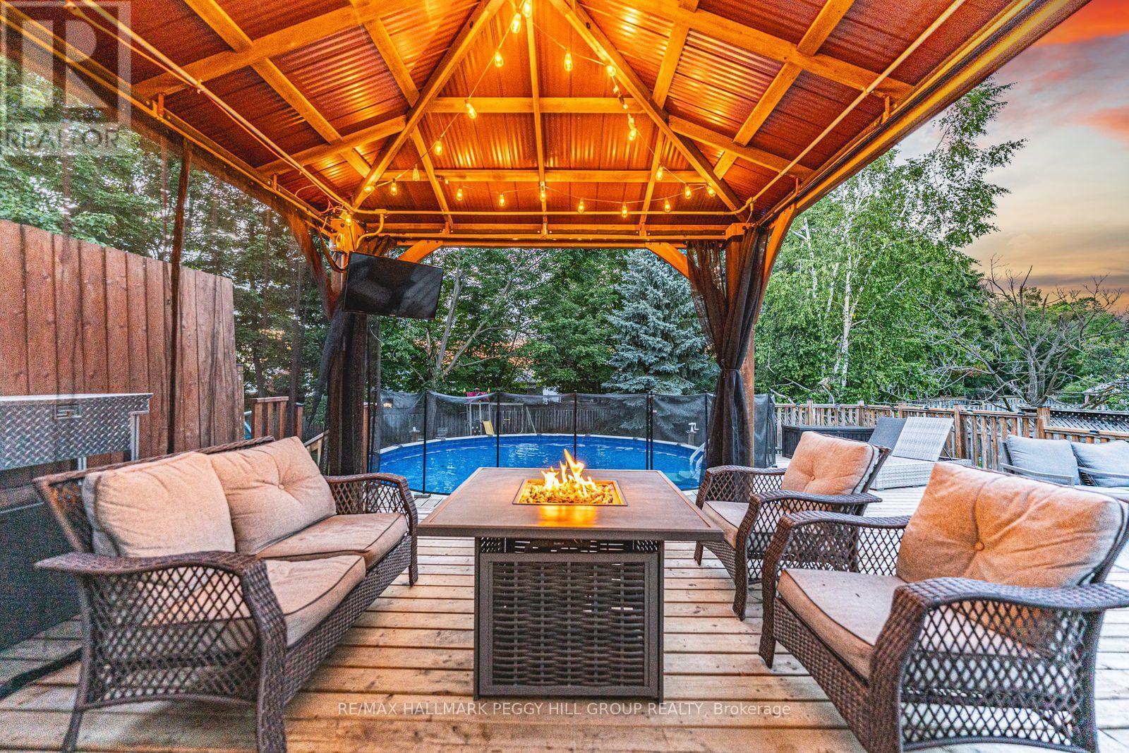 FAMILY COMFORT, MODERN STYLE & A BACKYARD TO FALL IN LOVE WITH! This stunning all-brick two-storey home is nestled in a family-friendly neighbourhood on a quiet and safe street surrounded by great neighbours, with schools, shopping, entertainment, recreational activities, Highway 400 and the Barrie South GO Station just minutes away. A covered front porch and an interlock walkway lined with a garden bed create a warm welcome before stepping inside to a bright interior enhanced by modern paint tones, hardwood floors, two cozy fireplaces and pot lights. The kitchen is a true showstopper, showcasing white cabinetry with some glass inserts, stainless steel appliances and a timeless subway tile backsplash, while the family room offers a garden door walkout to the expansive backyard. Outdoors, this property shines with a spacious entertainer's yard featuring an above-ground pool, a hard-top gazebo, a large deck and an impressive lot that stretches 209 feet on one side with plenty of grass space for kids and pets to enjoy - this backyard is absolutely stunning! Upstairs, three well-sized bedrooms provide comfortable retreats, including a generously sized primary with a sitting area, a four-piece ensuite and a closet with built-in shelving. The partially finished basement extends the living space with a recreation room that is perfect for movie nights, a 2-piece bath and plenty of storage. Everything you've been searching for in a #HomeToStay is right here, so stop scrolling and start packing! (id:64974)