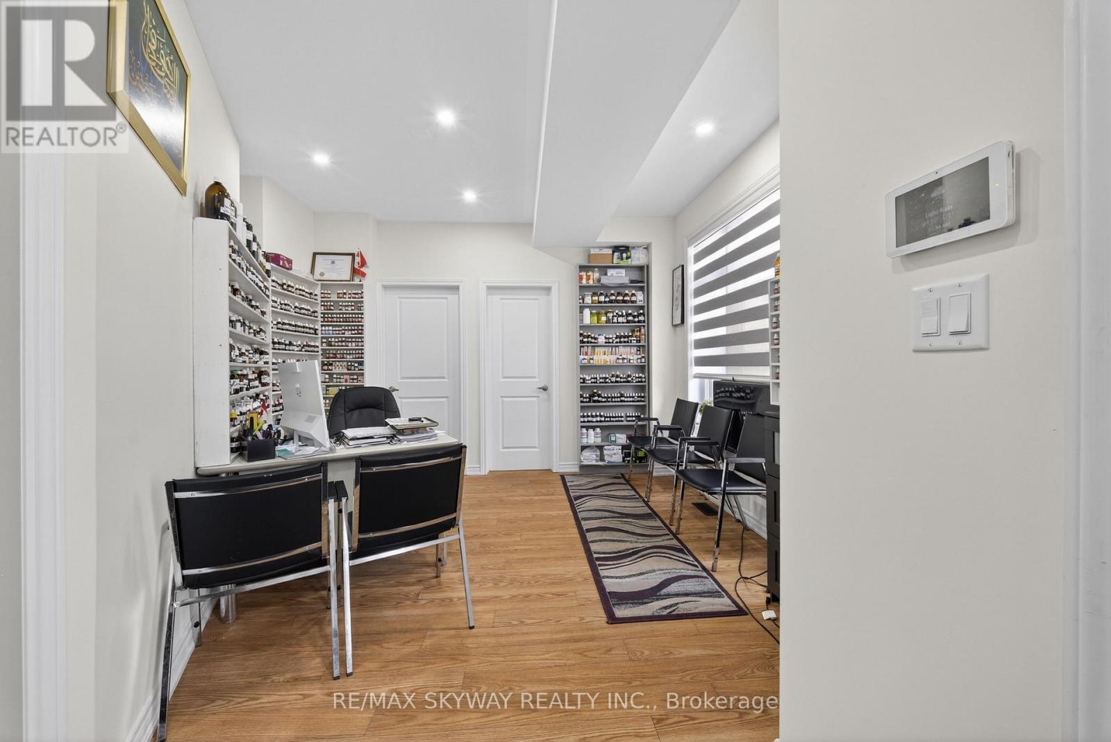 Welcome to this stunning dual-entrance modern Live & Work Freehold Townhouse with a double car garage, offering the perfect blend of contemporary living and business convenience. Less than three years old, this exceptional property features a versatile commercial retail space on the main floor ideal for entrepreneurs, professionals, or investors seeking additional income potential. The second level boasts a bright, open-concept layout filled with natural light, highlighted by a spacious great room with a fireplace and oversized windows. The modern kitchen is beautifully appointed with stainless steel appliances, granite countertops, a custom backsplash, and a break (id:64974)
