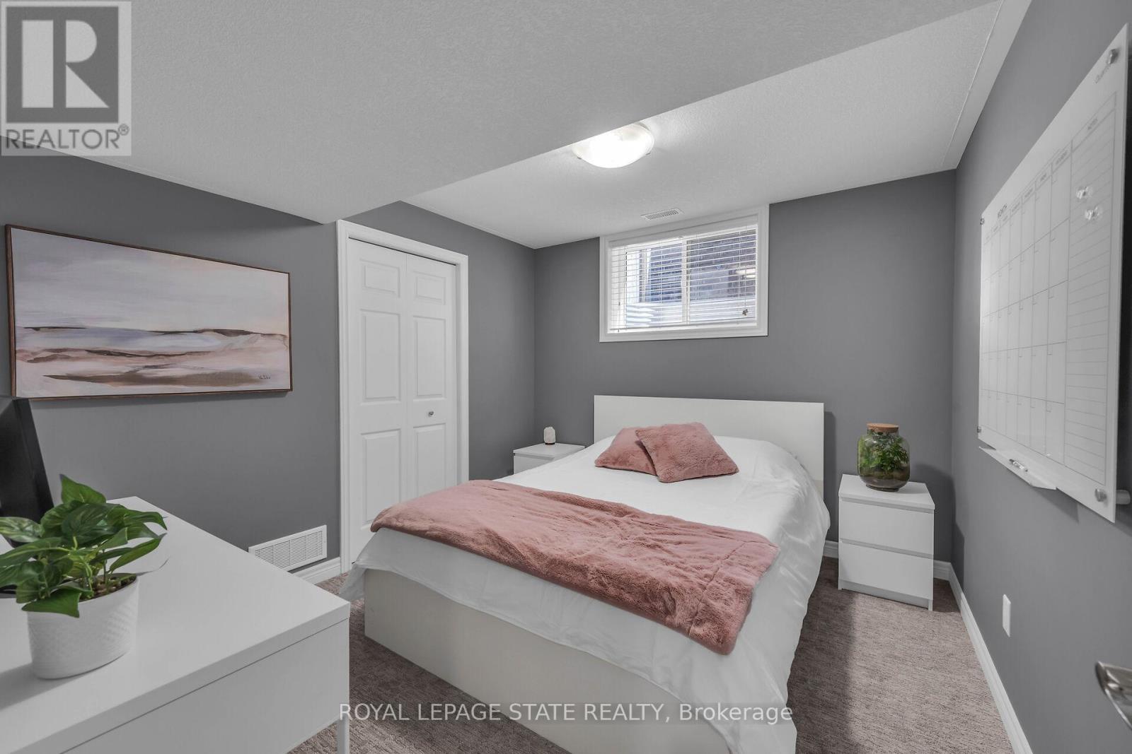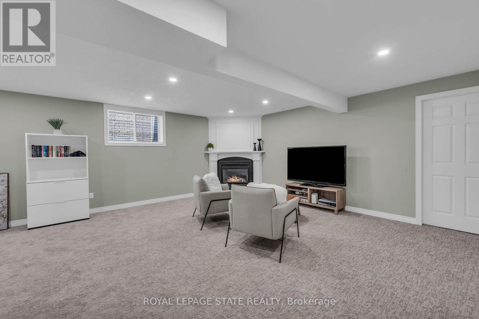 Immaculate bungalow on a quiet street in popular West Brant, built in 2011. This open-concept home features soaring ceilings and a bright, spacious eat-in kitchen overlooking the dining and living areas-perfect for everyday living and entertaining. The sunny living room showcases hardwood floors and large windows that flood the space with natural light. Sliding doors from the kitchen lead to a covered rear deck with natural gas BBQ hookup, overlooking a generous fully fenced yard-an ideal spot to relax and enjoy your day. Foundation trees planted along rear fence line. Two well-proportioned bedrooms and a spacious four-piece bath complete the main floor, offering comfortable, accessible living. The fully finished basement features large windows for added natural light, a spacious family room with gas fireplace and pot lights, two additional bedrooms (one currently used as an exercise room), a full bath, and a large utility room providing excellent storage. A fantastic layout for empty nesters with visiting guests or grandchildren, or for families needing extra space.Recent updates include stylish new windows installed July 2025. Located in a quiet, family-friendly neighbourhood close to shopping and parks-this is truly the perfect bungalow. (id:64974)