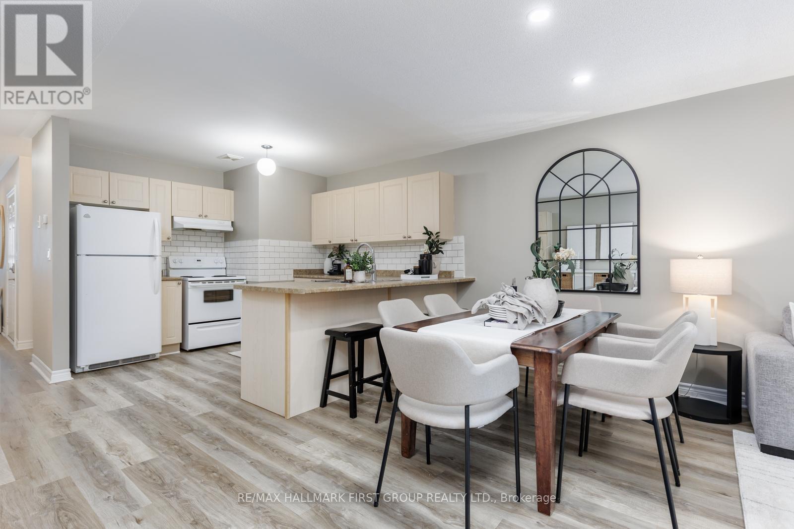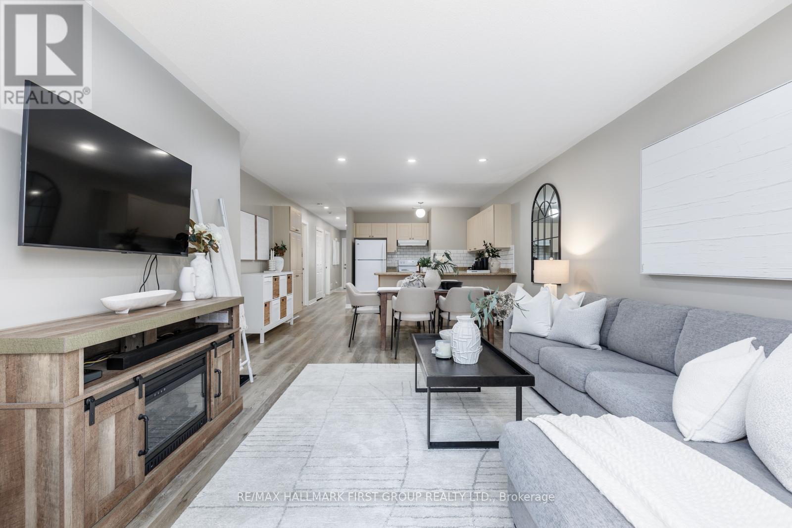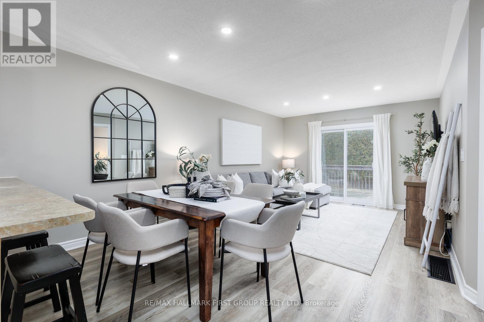 Welcome to 20 Talbot Drive in Port Hope, a beautiful 2+1 bedroom, 2 bathroom townhome bungalow tucked at the end of a quiet street and backing onto serene green space. Located in a friendly neighbourhood close to schools, parks, and shopping, this home perfectly blends everyday convenience with peaceful surroundings. Set along a quiet bend of Talbot Drive, this home benefits from a widened street frontage with extra space for guest parking - ideal for entertaining or growing families. A private tandem driveway along with a single built-in garage provides parking for three vehicles in total. The front of the home features a private, fully covered porch. Out back, you'll find a walk-out deck and tall hedging that provide added privacy, perfect for outdoor enjoyment. Inside, the open-concept main level seamlessly connects the kitchen and living areas creating a bright space filled with natural light, accompanied by a walk-out to the backyard deck. The kitchen is well-appointed with a breakfast bar, brand new backsplash, built-in pantry, and ample cabinetry. The main level features a spacious primary bedroom with a walk-in closet, a second bedroom with closet space, and a convenient dual-entry 3-piece bathroom. Downstairs, the fully finished basement offers excellent additional living space, including a third bedroom, a new 3-piece bathroom, a dry bar, a large open recreation area, and dedicated storage. Additional updates include new flooring on the main level, a new washer and dryer (2022),and a new roof (2020). (id:64974)