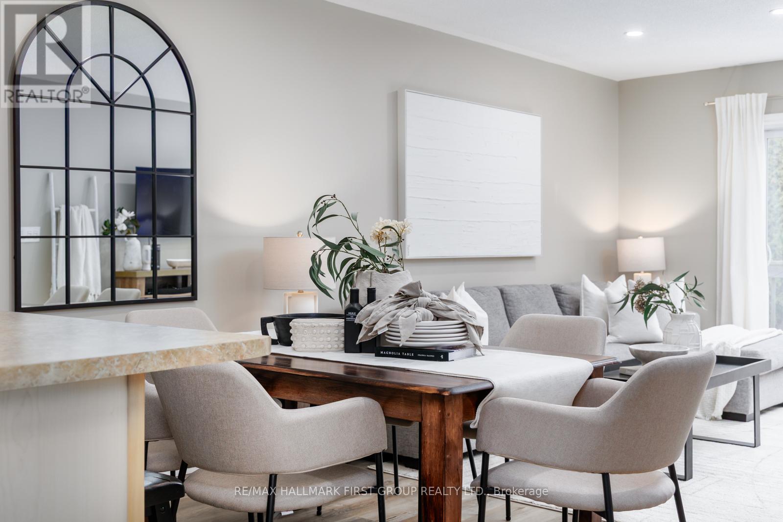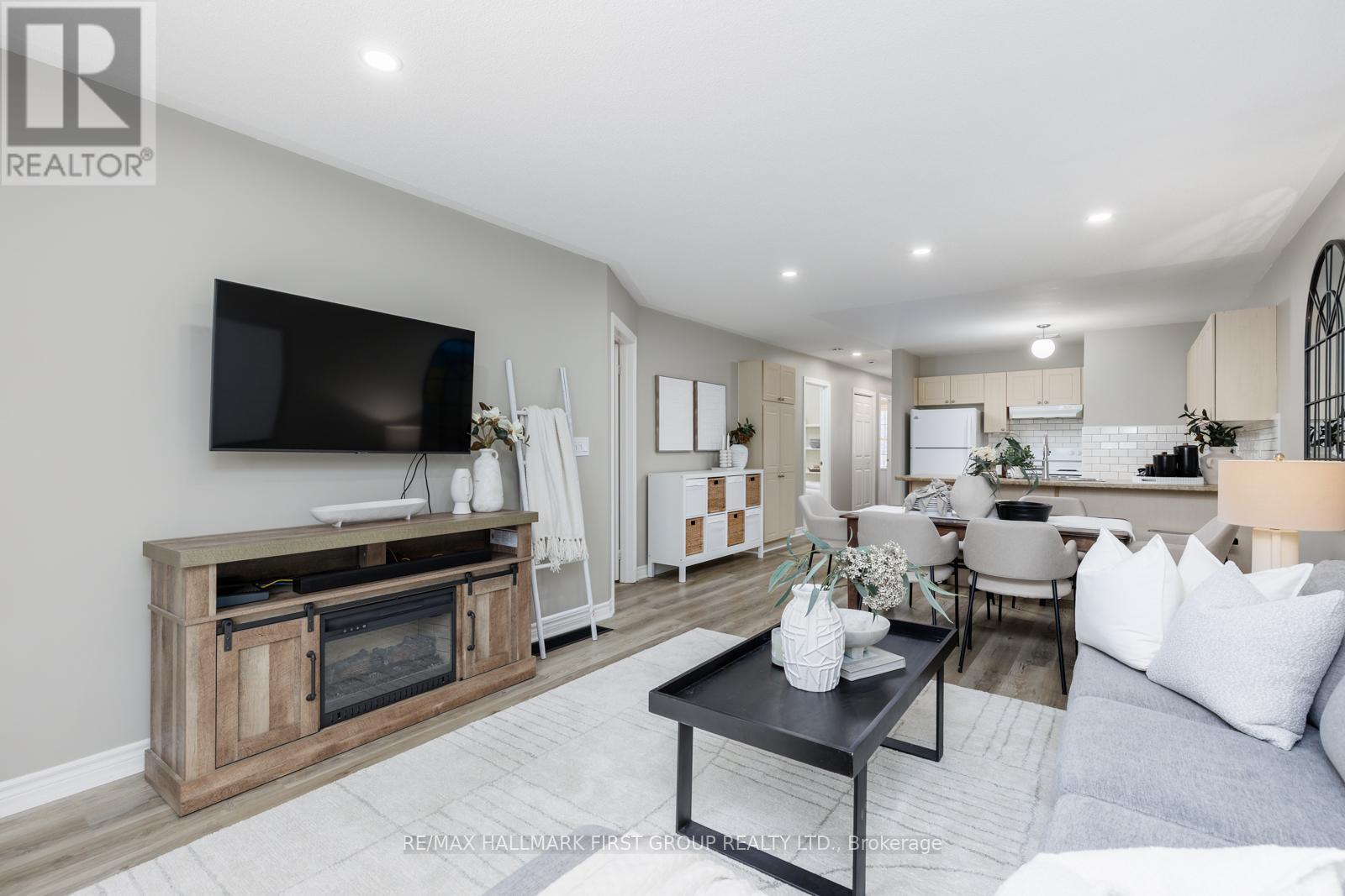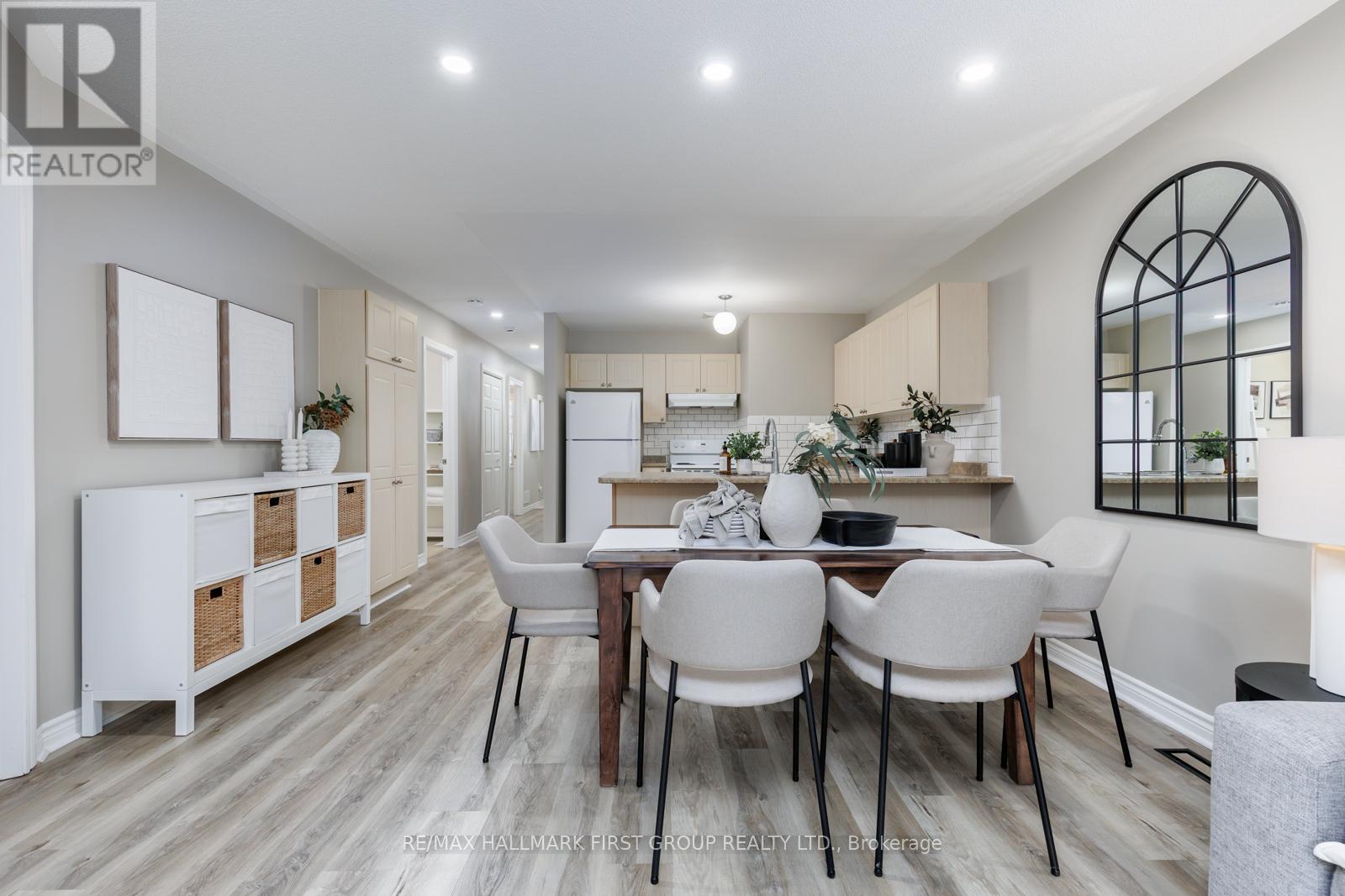 Welcome to 20 Talbot Drive in Port Hope, a beautiful 2+1 bedroom, 2 bathroom townhome bungalow tucked at the end of a quiet street and backing onto serene green space. Located in a friendly neighbourhood close to schools, parks, and shopping, this home perfectly blends everyday convenience with peaceful surroundings. Set along a quiet bend of Talbot Drive, this home benefits from a widened street frontage with extra space for guest parking - ideal for entertaining or growing families. A private tandem driveway along with a single built-in garage provides parking for three vehicles in total. The front of the home features a private, fully covered porch. Out back, you'll find a walk-out deck and tall hedging that provide added privacy, perfect for outdoor enjoyment. Inside, the open-concept main level seamlessly connects the kitchen and living areas creating a bright space filled with natural light, accompanied by a walk-out to the backyard deck. The kitchen is well-appointed with a breakfast bar, brand new backsplash, built-in pantry, and ample cabinetry. The main level features a spacious primary bedroom with a walk-in closet, a second bedroom with closet space, and a convenient dual-entry 3-piece bathroom. Downstairs, the fully finished basement offers excellent additional living space, including a third bedroom, a new 3-piece bathroom, a dry bar, a large open recreation area, and dedicated storage. Additional updates include new flooring on the main level, a new washer and dryer (2022),and a new roof (2020). (id:64974)