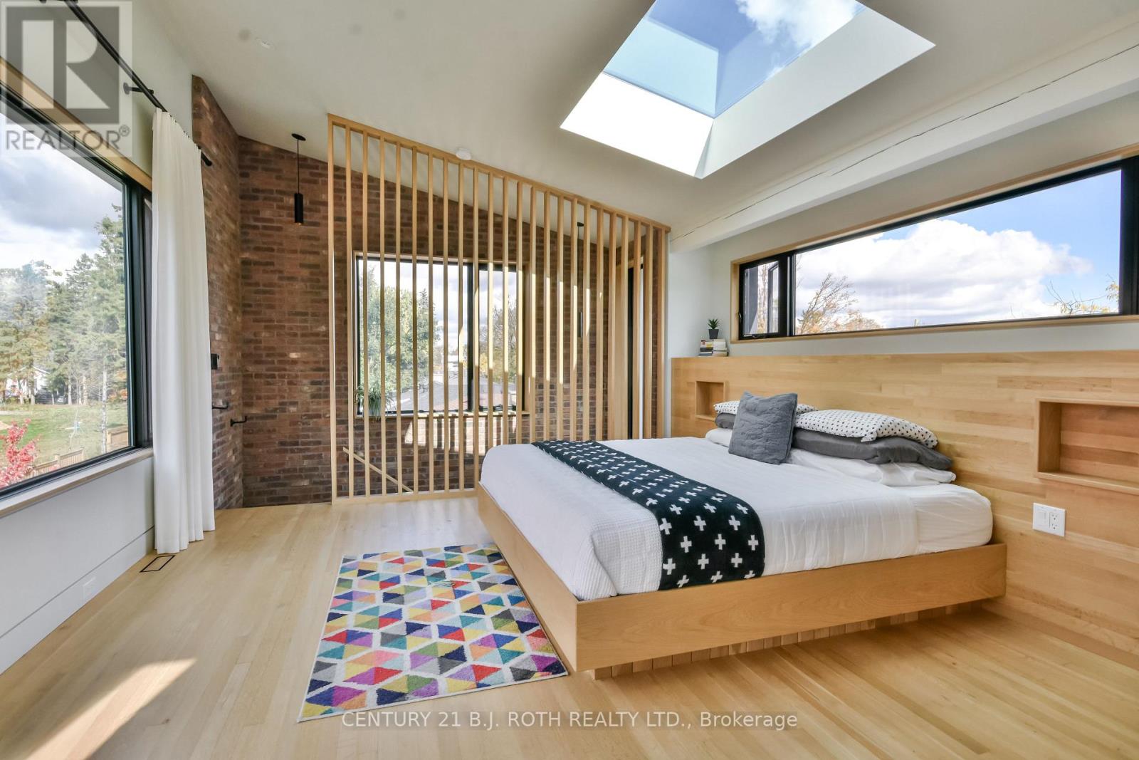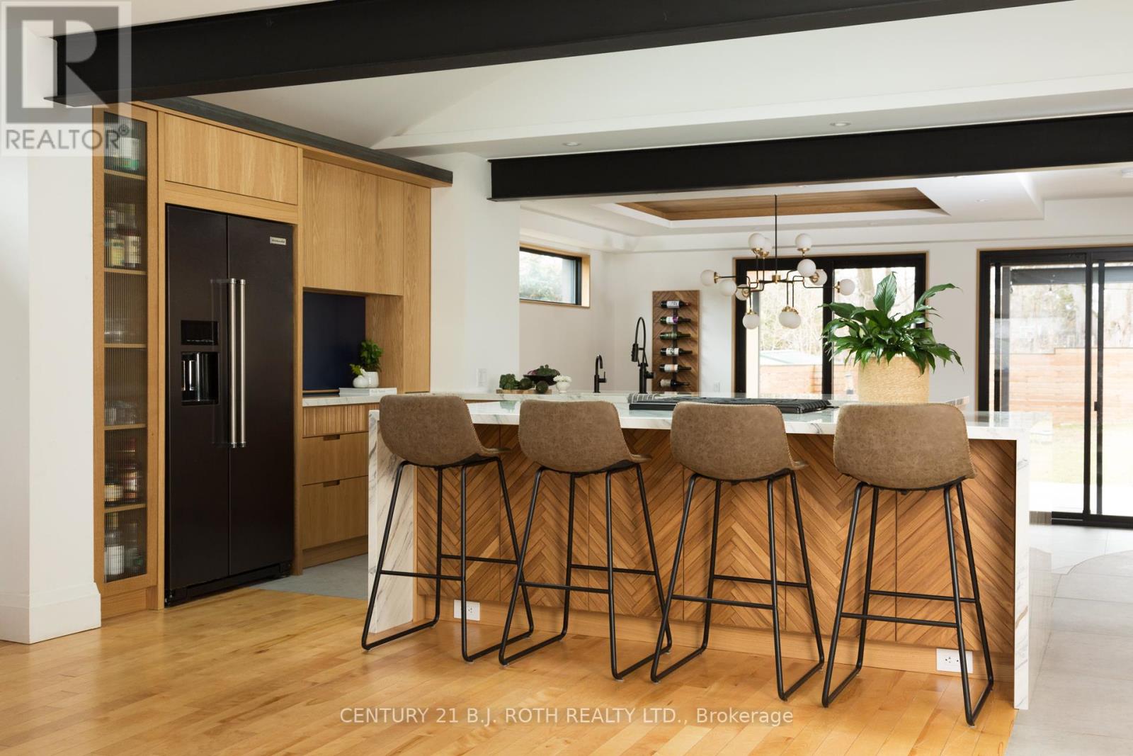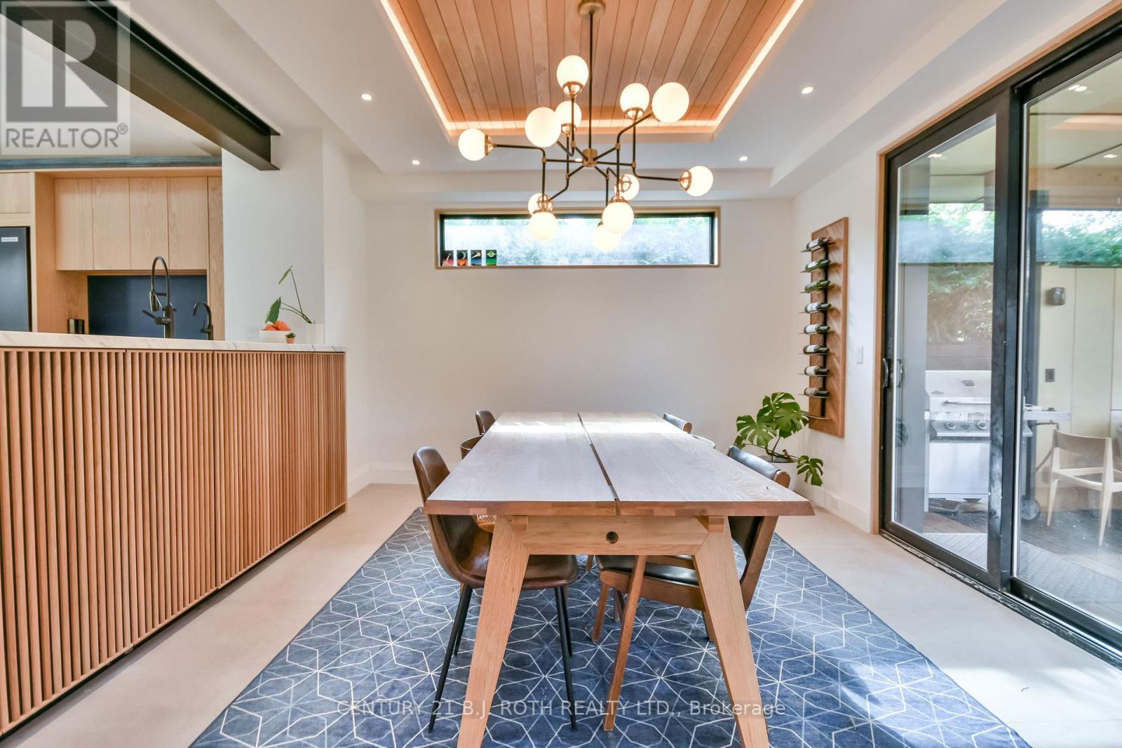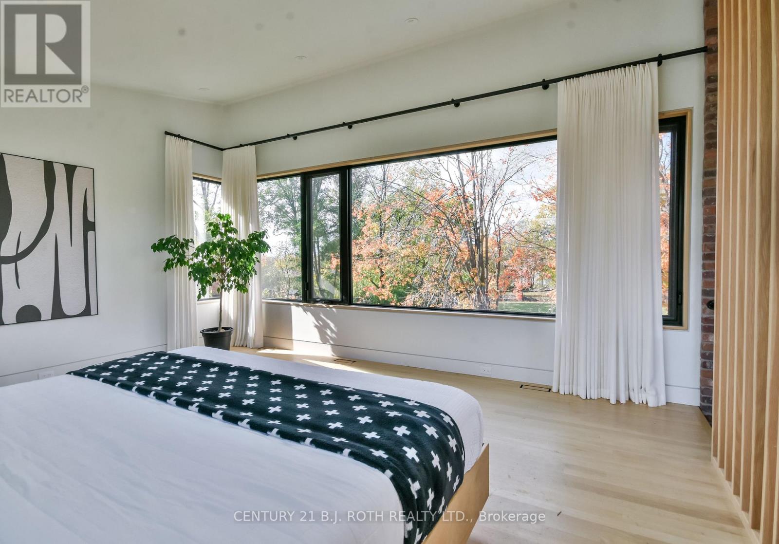 Stunning Mid-Century Modern Masterpiece, Fully Renovated in Prestigious East End. Prepare to be impressed by the flawless execution of high end building. This home has been reimagined with a dramatic 3-storey addition creating a one-of-kind living experience that blends sophisticated, midcentury modern flair with state-of-the art comfort. From the soaring ceilings to the spa-inspired ensuite, every detail has been meticulously curated. Discover unique touches like statement brick wall and sophisticated covered low-slope front entry that enhances the homes curb appeal.Featuring Dramatic, Sun-drenched, open concept, great room with awe inspired aircraft cables and vaulted ceiling gives a sense of volume. The cupola and skylight bathe the area in natural light, highlighting the custom fluted cabinetry of the new designer kitchen and stylish slat wall feature. A true centerpiece, with gorgeous waterfall countertops and ample storage perfect for daily life and grand-scale entertaining. Ascend to your private oasis the master suite features a custom-built king size bed frame and is flooded with light from oversized windows. The lower level spa-like bathroom is a revelation, complete with luxurious stone finishes, soaker tub, custom vanity, steam shower and heated flooring. Enjoy beautiful warm days and cozy evenings on the heated, covered porch, overlooking a spacious backyard adorned with mature trees- a perfect setting for entertaining. Rest easy with a complete suite of new mechanicals, incl: new furnace, a/c, a ducted mini split for optimal climate control. The envelope is fortified with rigid interior insulation, delta wrap water proofing, insulated foundation, new sump pump, and new municipal sewer line, ensuring efficiency and peace of mind for years to come. A rare opportunity to own a bespoke architectural gem. Book your private viewing today. Owner is licensed realtor. (id:64974)