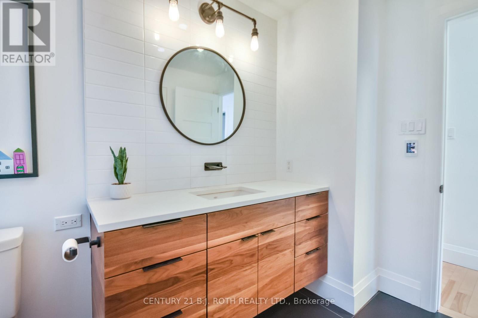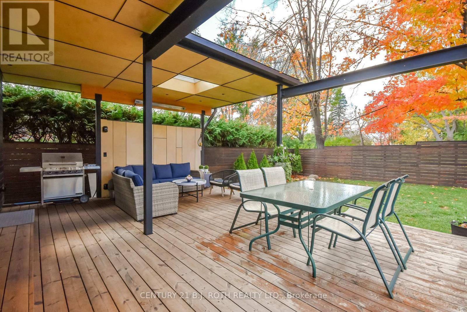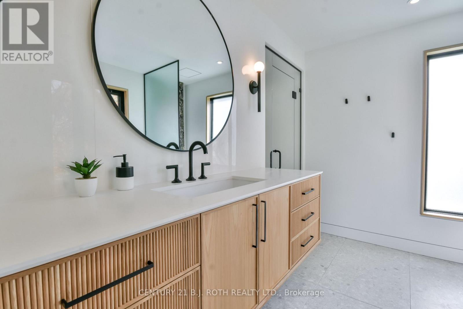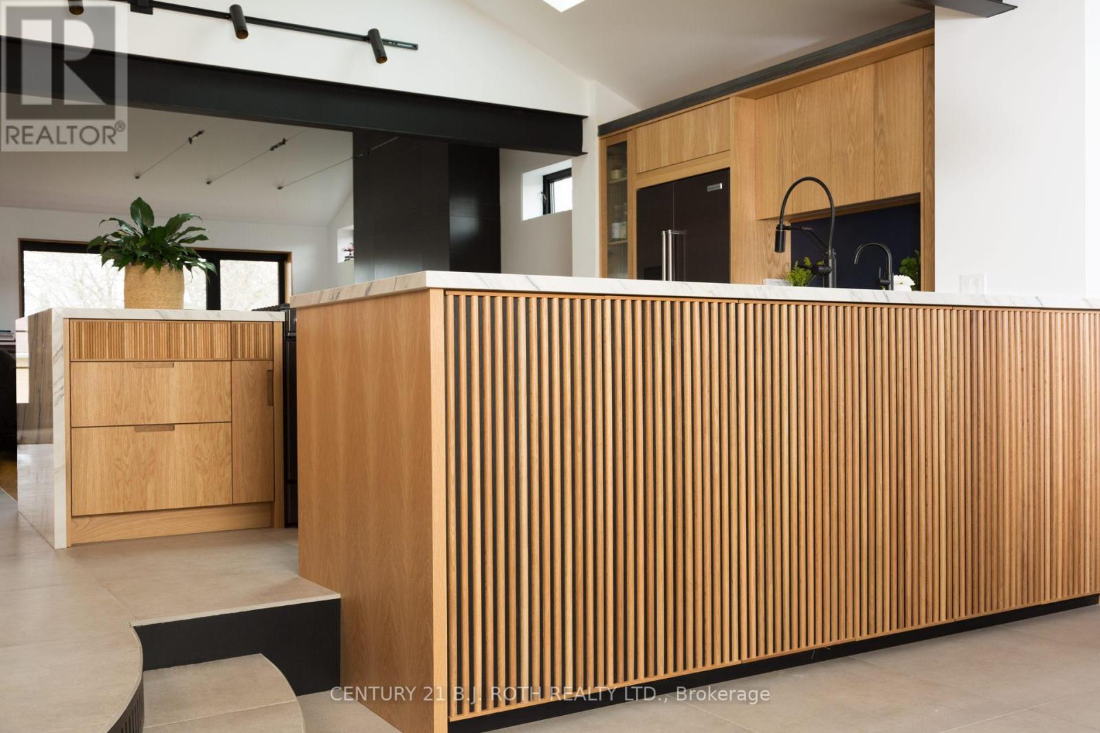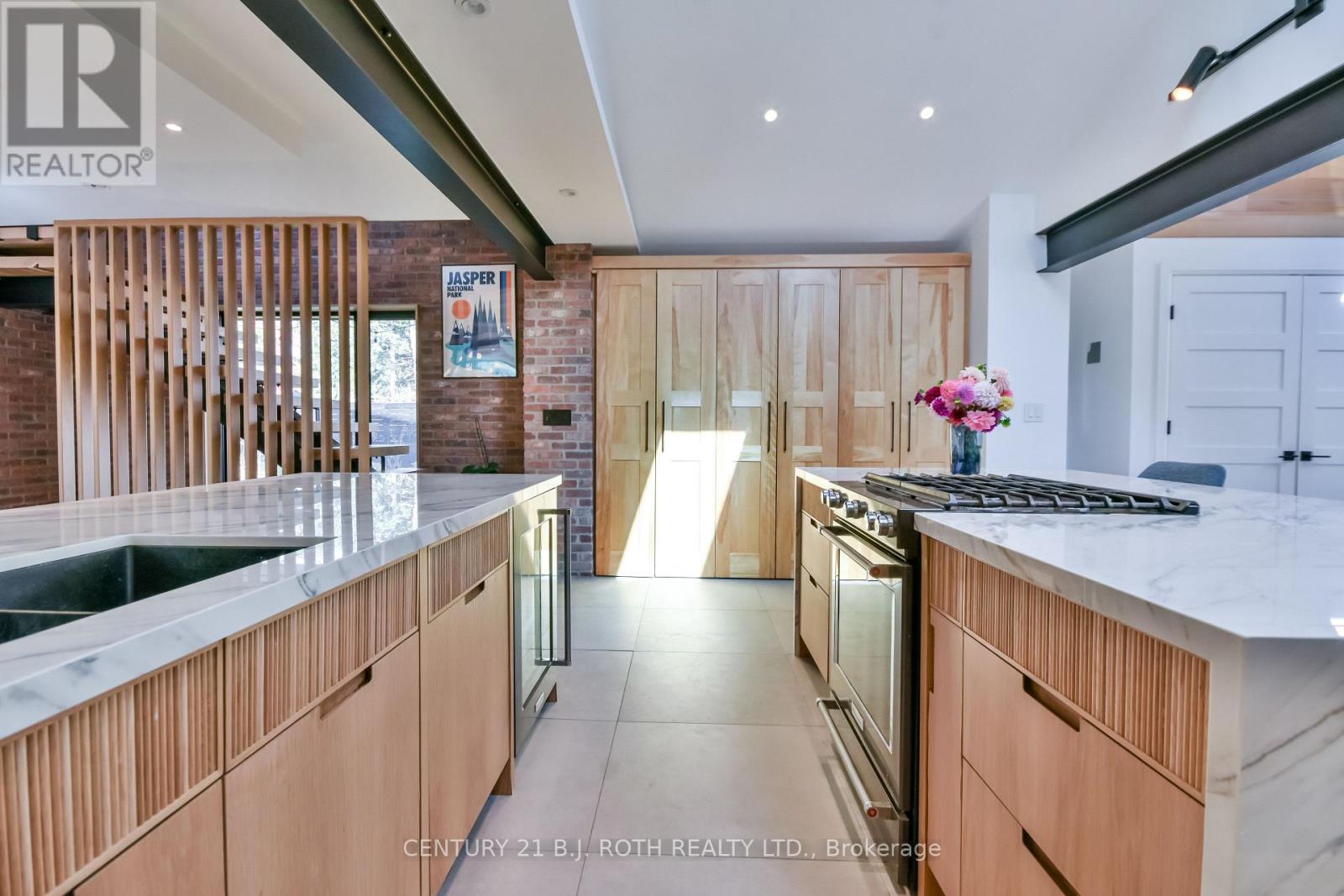 Stunning Mid-Century Modern Masterpiece, Fully Renovated in Prestigious East End. Prepare to be impressed by the flawless execution of high end building. This home has been reimagined with a dramatic 3-storey addition creating a one-of-kind living experience that blends sophisticated, midcentury modern flair with state-of-the art comfort. From the soaring ceilings to the spa-inspired ensuite, every detail has been meticulously curated. Discover unique touches like statement brick wall and sophisticated covered low-slope front entry that enhances the homes curb appeal.Featuring Dramatic, Sun-drenched, open concept, great room with awe inspired aircraft cables and vaulted ceiling gives a sense of volume. The cupola and skylight bathe the area in natural light, highlighting the custom fluted cabinetry of the new designer kitchen and stylish slat wall feature. A true centerpiece, with gorgeous waterfall countertops and ample storage perfect for daily life and grand-scale entertaining. Ascend to your private oasis the master suite features a custom-built king size bed frame and is flooded with light from oversized windows. The lower level spa-like bathroom is a revelation, complete with luxurious stone finishes, soaker tub, custom vanity, steam shower and heated flooring. Enjoy beautiful warm days and cozy evenings on the heated, covered porch, overlooking a spacious backyard adorned with mature trees- a perfect setting for entertaining. Rest easy with a complete suite of new mechanicals, incl: new furnace, a/c, a ducted mini split for optimal climate control. The envelope is fortified with rigid interior insulation, delta wrap water proofing, insulated foundation, new sump pump, and new municipal sewer line, ensuring efficiency and peace of mind for years to come. A rare opportunity to own a bespoke architectural gem. Book your private viewing today. Owner is licensed realtor. (id:64974)