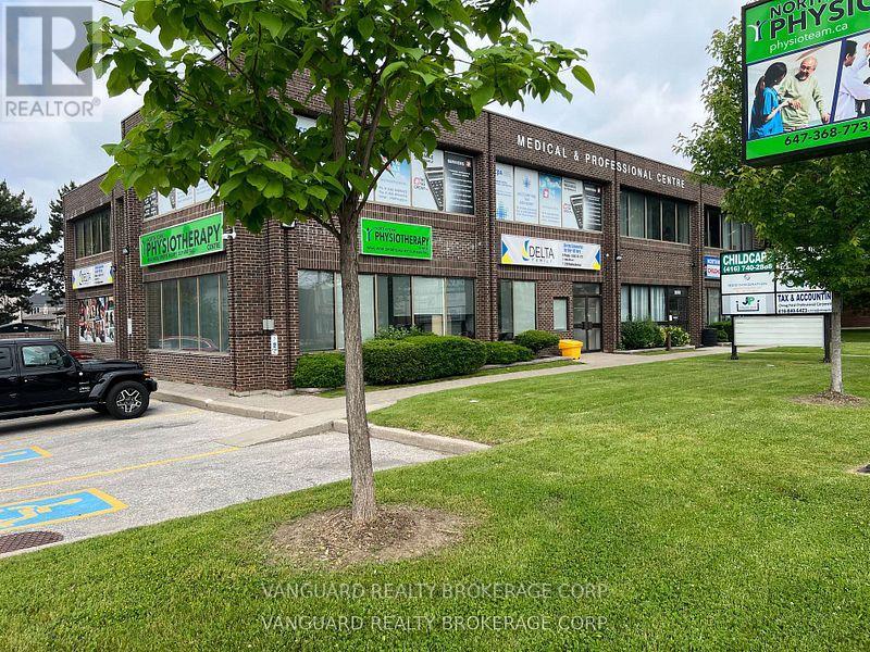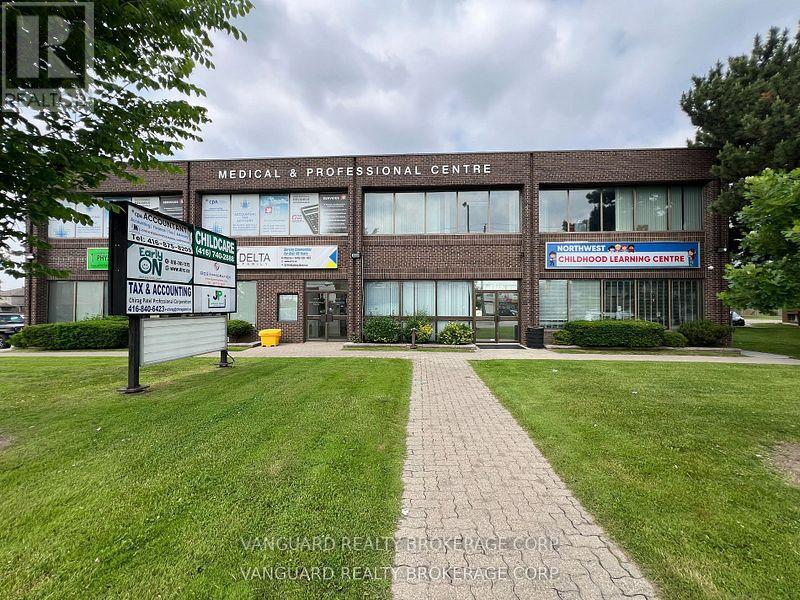Bright second-floor office space in a desirable, high-visibility location. Set within a clean, professionally maintained building, this open-concept space offers flexibility for a variety of business, medical, and professional uses, with the potential to partition as required. The building currently features a strong mix of tenants including general business, accounting, medical, legal professional, and daycare services-providing a professional, established setting and potential referral traffic. All-inclusive TMI of $13.05 includes property taxes, insurance, hydro, gas, water, maintenance, and all other common building expenses. Steps to TTC bus stops, great connectivity to Highways 400, 401, 407, and 427, along with ample free surface parking, makes it convenient for staff and clients. (id:64974)