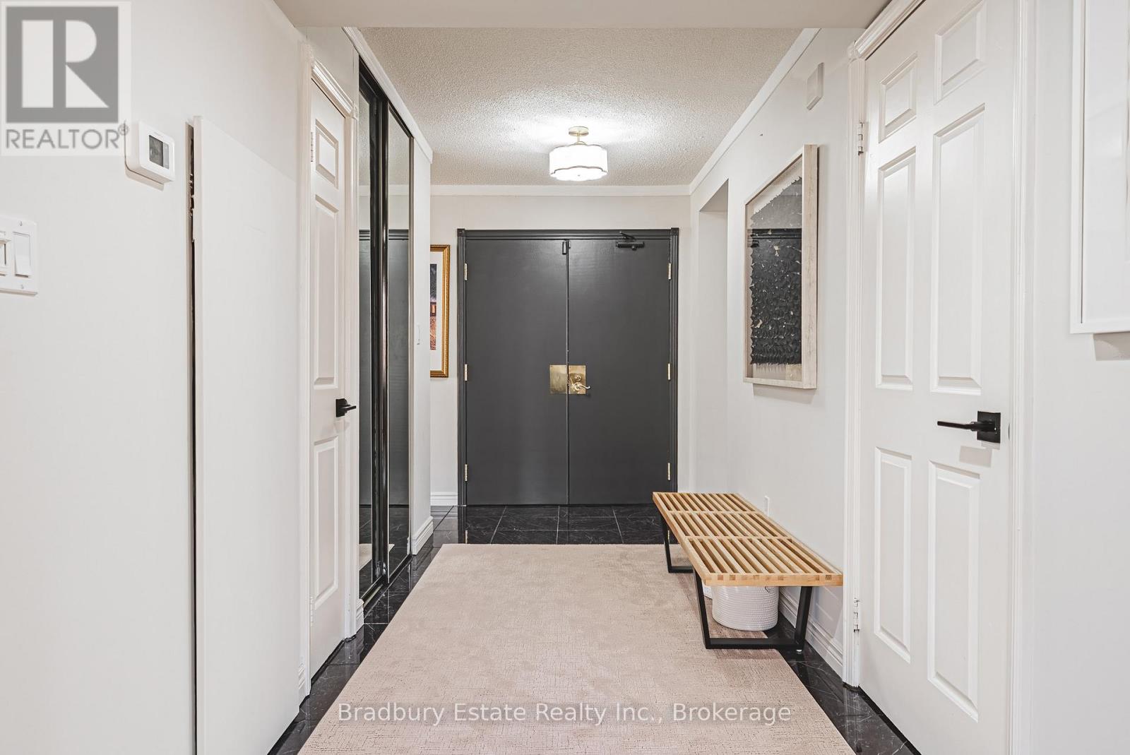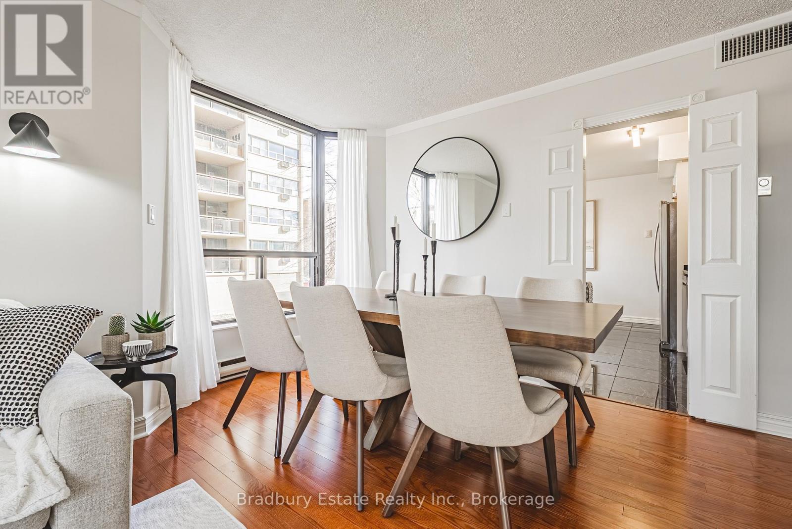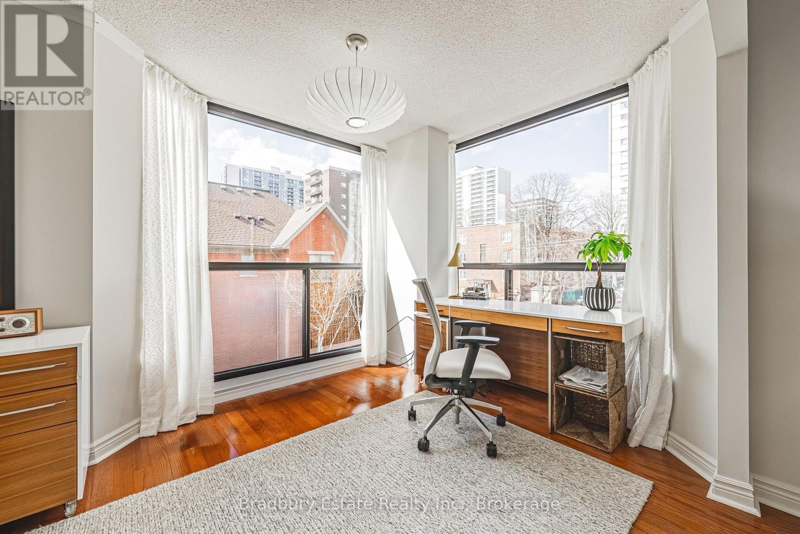 Nearly 1,900 sq. ft. of house-sized living with only two suites per floor - a rare boutique condo opportunity in the heart of downtown Hamilton. Welcome to The Garrison, an exclusive residence offering exceptional privacy and space rarely found in condominium living. This beautifully proportioned corner suite opens through double doors into a gracious centre-hall layout, with expansive principal rooms designed for both comfortable everyday living and effortless entertaining. Bay windows and wall-to-wall glass capture east, west and north exposures, flooding the home with natural light. The grand living and dining areas comfortably host everything from intimate dinners to large holiday gatherings, offering the scale and flexibility often missing from condo living. The well-appointed kitchen features granite countertops, newer appliances (2021-2023), and an instant hot water tap. The private bedroom wing includes a spacious primary suite with a corridor of closets and ensuite bath, while the generous second bedroom, full guest bath, and separate den/office provide flexibility for guests or working from home. Rich hardwood floors and thoughtful updates reflect meticulous care throughout. Ideally located steps to St. Joseph's Hospital and within walking distance to Locke Street boutiques, Augusta cafés and wine bars, and Hess Village nightlife, this home offers a vibrant urban lifestyle. Parking is a rare luxury downtown. The suite includes one owned underground space and currently rents two additional spaces for just $50/month each. A rare opportunity for house-sized living without the maintenance in one of Hamilton's most exclusive boutique buildings. (id:64974)