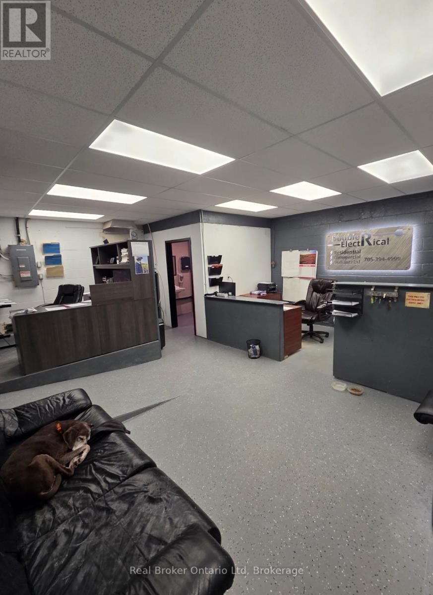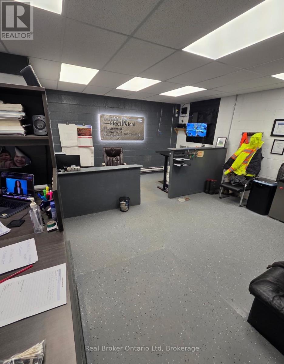This is the kind of space that grows with you. Offering 1,400 sq ft of total space, this versatile commercial unit is ideal for both new and expanding businesses looking for functionality without compromise. The 456 sq ft office area is thoughtfully designed with a drop ceiling, updated LED lighting, and a 2-piece bathroom complete with a hand dryer - creating a clean, professional environment for day-to-day operations. The open garage space features high ceilings, durable cement flooring, and a large overhead door, comfortably fitting a full-size 4-door Dodge Ram 2500 pickup. Equipped with 200 Amp (3-208-120V) electrical service, electric baseboard heating in the office and bath, plus natural gas forced-air heating in the garage, this space is built to perform. With average hydro around $250/month, it offers both efficiency and practicality - a rare opportunity for a business ready to level up. (id:64974)