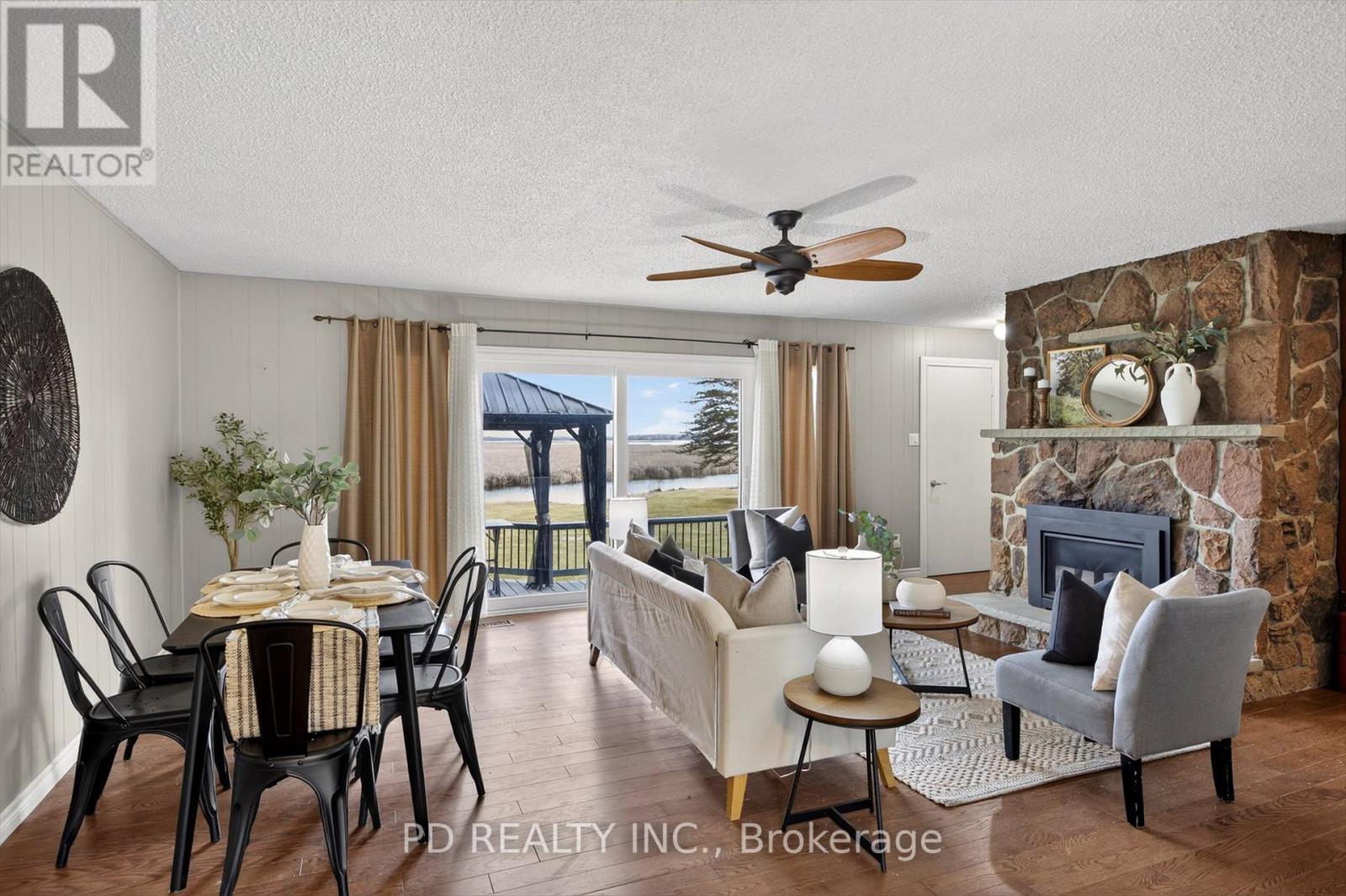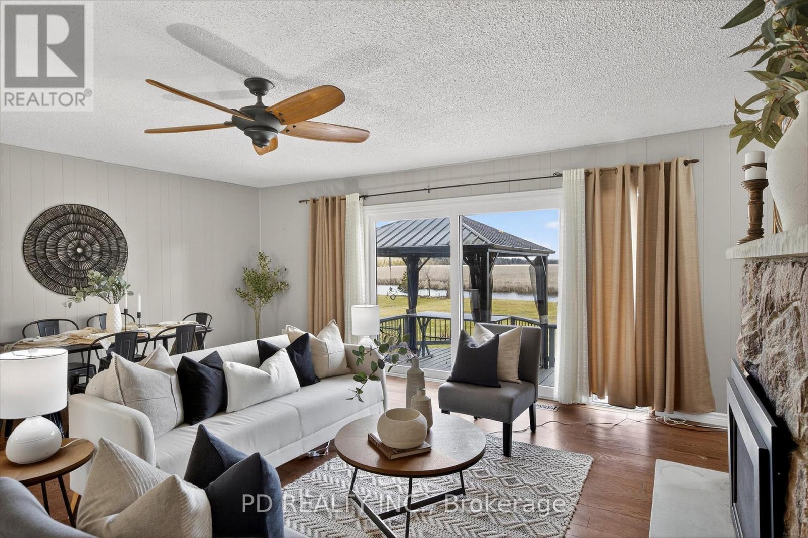 Well maintained level-entry bungalow set on a private 0.8 acre lot with over 100 feet of waterfront on Pigeon Lake along the Trent-Severn Waterway. Enjoy direct waterfront access and a short boat ride to the popular sandbar, known for its shallow, clear swimming. The main floor offers 2 bedrooms, a 4 piece bathroom, and an updated kitchen with built-in appliances. Bright, open living room with hardwood floors, natural gas fireplace, and walkout to a lakeside deck overlooking the level yard and shoreline. Fully finished lower level provides excellent flexibility for extended family or guests, featuring a second kitchen, 4 piece bathroom, second living room with gas fireplace, office, rec room, large laundry area, and ample storage. Additional highlights include natural gas forced air heating, central air conditioning, attached 2 car garage, metal roof, and double wide paved driveway with ample parking. Located in a welcoming community just minutes to Peterborough, Lindsay, Bridgenorth, and Ennismore. Move-in ready and ideal for year-round living, offering a great combination of waterfront lifestyle, comfort, and convenience on sought-after Pigeon Lake. (id:64974)