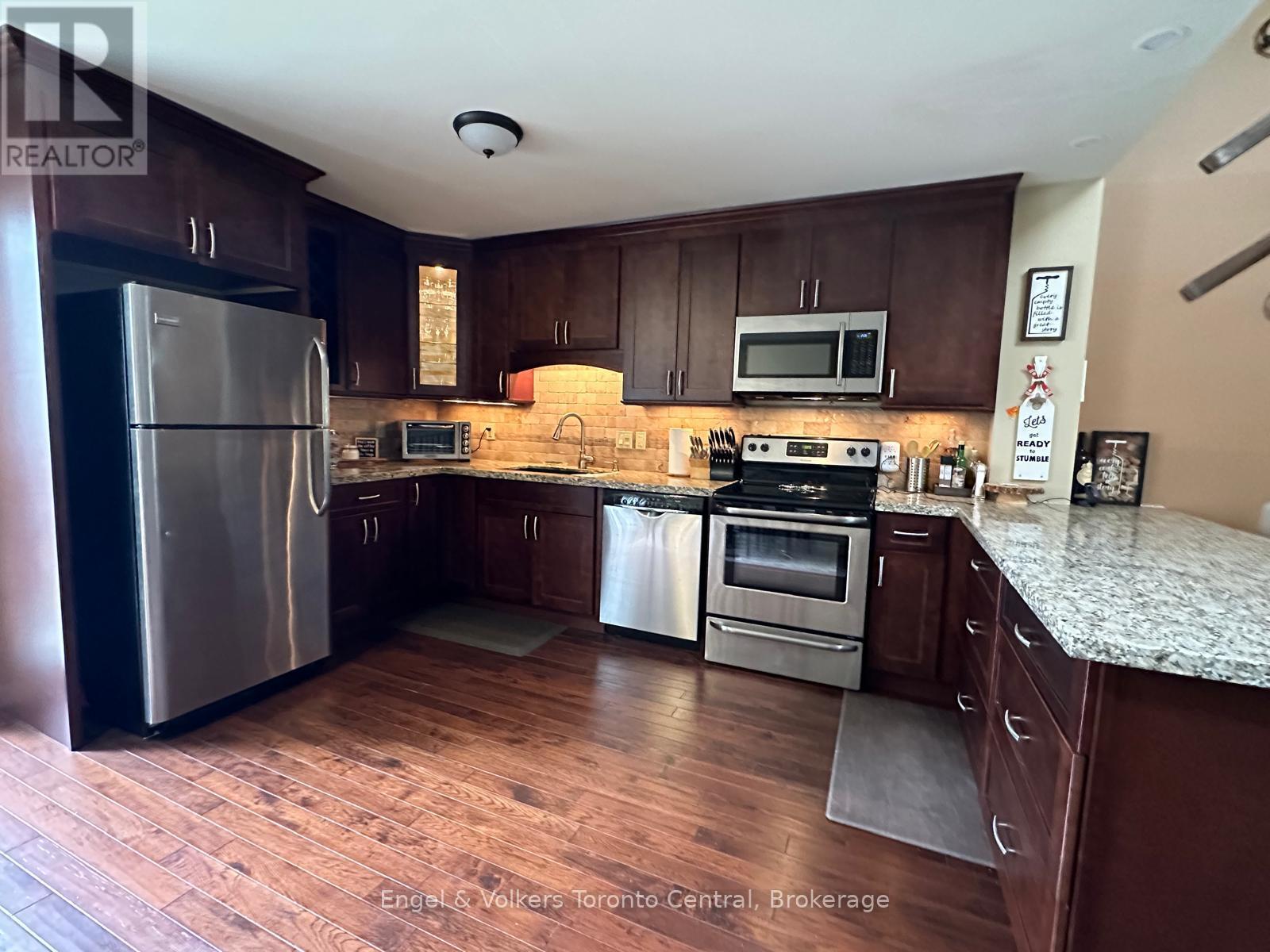 Seasonal summer rental or longer term available. Includes internet and cable. This cozy and updated 3-bedroom, 2-bathroom, fully equipped townhome condo is located at Living Stone Resort (formerly Cranberry Resort). It features a spacious, beautifully updated kitchen and an open-concept living area with vaulted ceilings, a wood-burning fireplace, and a walkout to a balcony. The loft-style primary bedroom includes a 3-piece ensuite, while the entry level offers two additional bedrooms, a full washroom, and stacked laundry. Conveniently situated in the mature Cranberry Village, it's just a short drive to the ski hills, the Village at Blue Mountain, and downtown Collingwood. (id:64974)