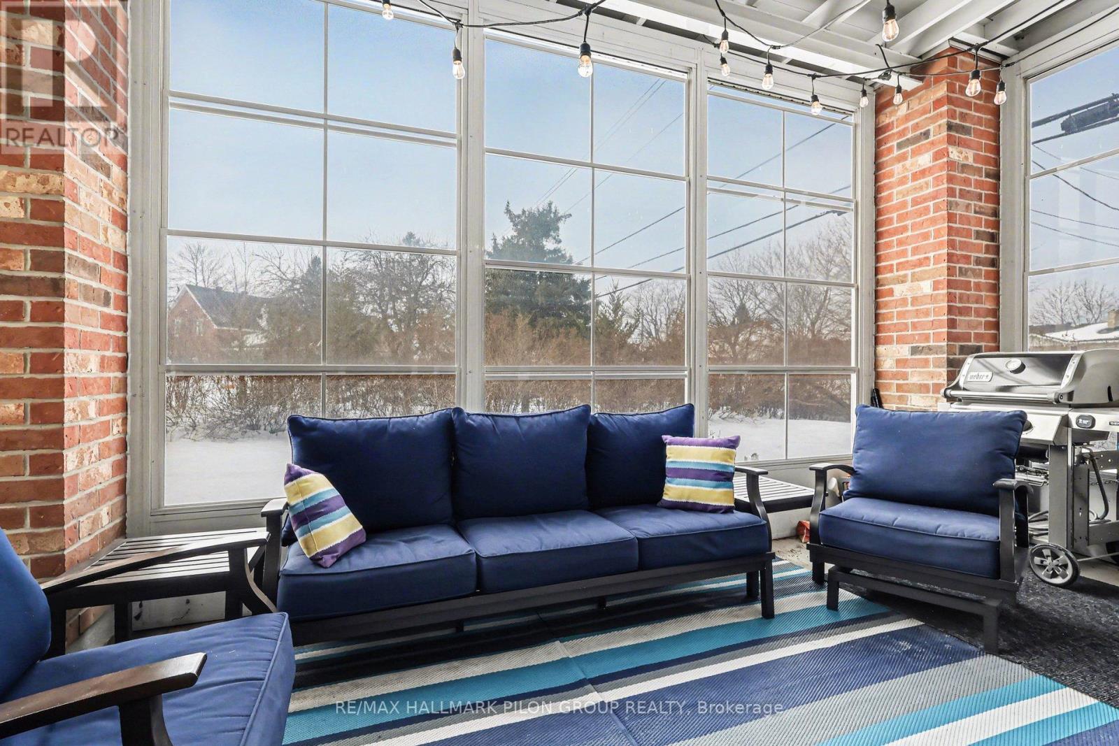Welcome to this immaculate end unit bungalow condo in the highly desirable Crème community in Chapel Hill South, offering rare main level living in one of Orléans' most sought after communities. Originally the builder's model home, this residence was thoughtfully designed and showcases premium finishes & upgrades throughout. Offering 2,523 square feet of beautifully finished living space, this rare 2+1 bed, 3 full bath bungalow townhome features a true main level entry with no stairs, providing easy & comfortable everyday living. The bright open concept main floor features 9ft ceilings, rich hardwood flooring, elegant lighting, and oversized windows that fill the space with natural light. The kitchen offers granite countertops and backsplash, breakfast bar seating, soft close cabinetry, under cabinet lighting, & a side pantry. The spacious living and dining areas feature a beautiful electric fireplace and provide direct access to the outdoor living space. Step outside to your private patio with gas BBQ hookup, mini garden, & a unique three season solarium with adjustable window panels that allow you to capture the warmth of the sun while enjoying fresh air. The main level includes a primary suite with walk in and 5 piece ensuite featuring double sinks & a glass shower w/built in bench. A 2nd bedroom and full bath complete the main floor. The fully finished lower level offers a large family room, 3rd bed w/professionally installed Murphy bed, full bath, extended laundry room, & ample storage. Additional highlights include 2 parking spaces directly in front of the home, a pet friendly condominium community, a 2025 furnace, tankless water heater, alarm system, & negotiable items including the pool table. Ideally located close to transit, the Chapel Hill South Park and Ride, with nearby walking paths, parks, shopping along Innes Road, & easy access to all amenities. An exceptional opportunity for down-sizers seeking comfort, convenience, & low maintenance living. (id:64974)
