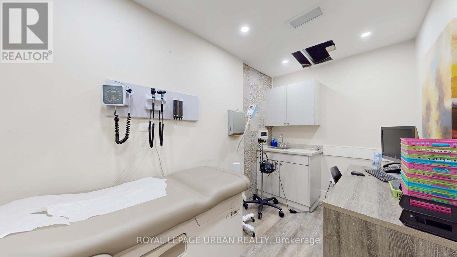 Rare opportunity at the highly coveted Queen & Spadina intersection in the heart of downtown Toronto's Kensington-Chinatown / Fashion District - a location that needs no introduction. This prominent two-storey commercial building offers approximately 7,600 SF of leasable space (measured to 2020 BOMA standards) and was formerly occupied by a medical clinic and pharmacy.The property features sixteen offices/suites, two reception areas, two waiting areas, and four washrooms, including two accessible washrooms, along with a two-storey elevator servicing the main and second floors. An additional 1,500+ SF basement provides flexibility for storage or potential additional income. The building offers separate entrances to the main floor, second floor, and basement. The space is substantially built-out, with approximately $100,000 remaining to complete final finishes, allowing an owner or user to customize to their needs. Ideal for medical, professional, or institutional users seeking a high-profile downtown location with strong long-term potential. Marketing package available upon request. **New roof to be installed** **Main floor clear height 13 ft** (id:64974)